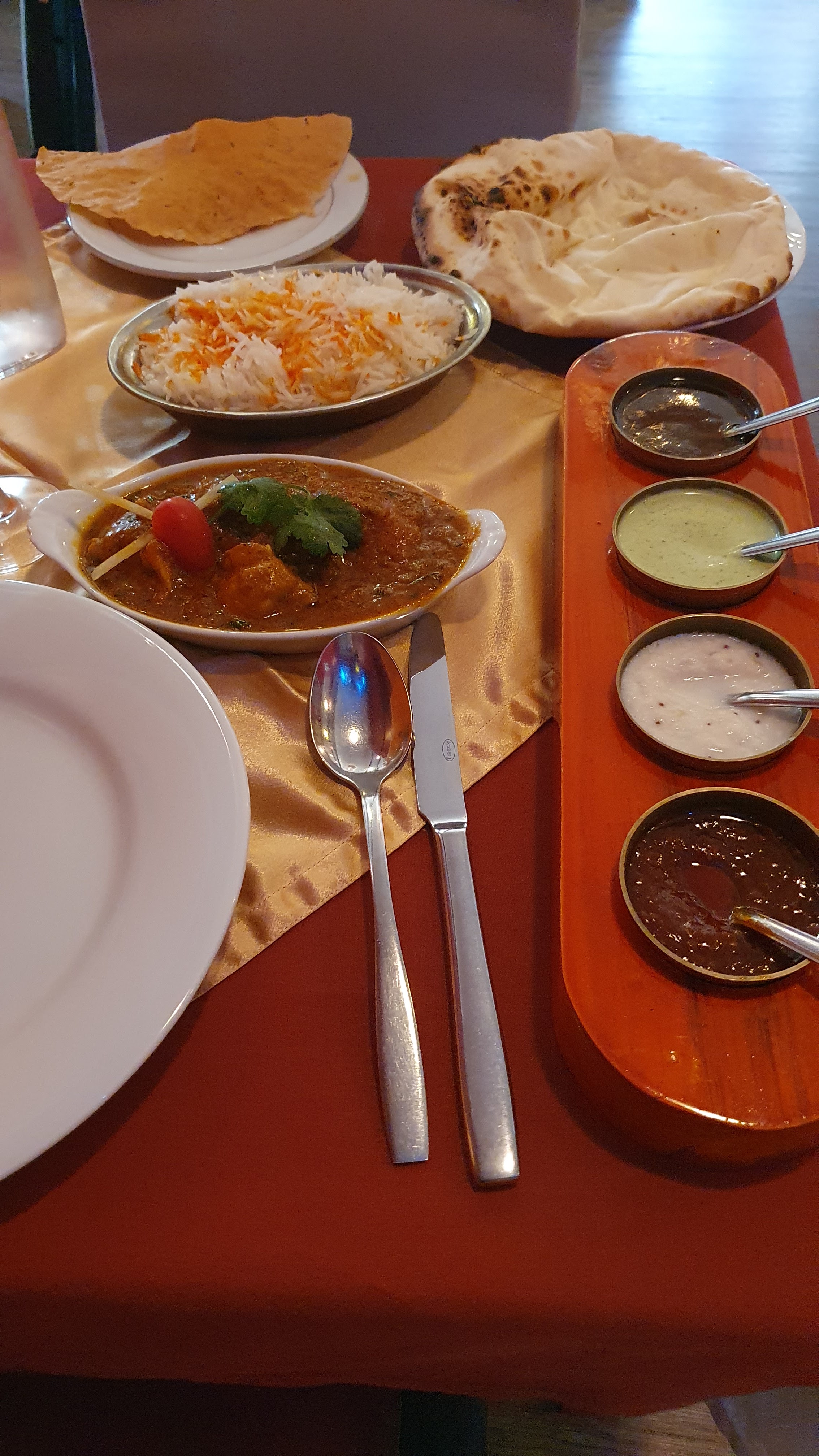 Excellent restaurant! La cuisine est délicieuse et le personnel extrêmement aimable. La viande fond dans la bouche, les naans sont moelleux, les papadums craquants, non vraiment une réussite sur tous les plans. Probablement le meilleur restaurant indien dans les 50km à la ronde.