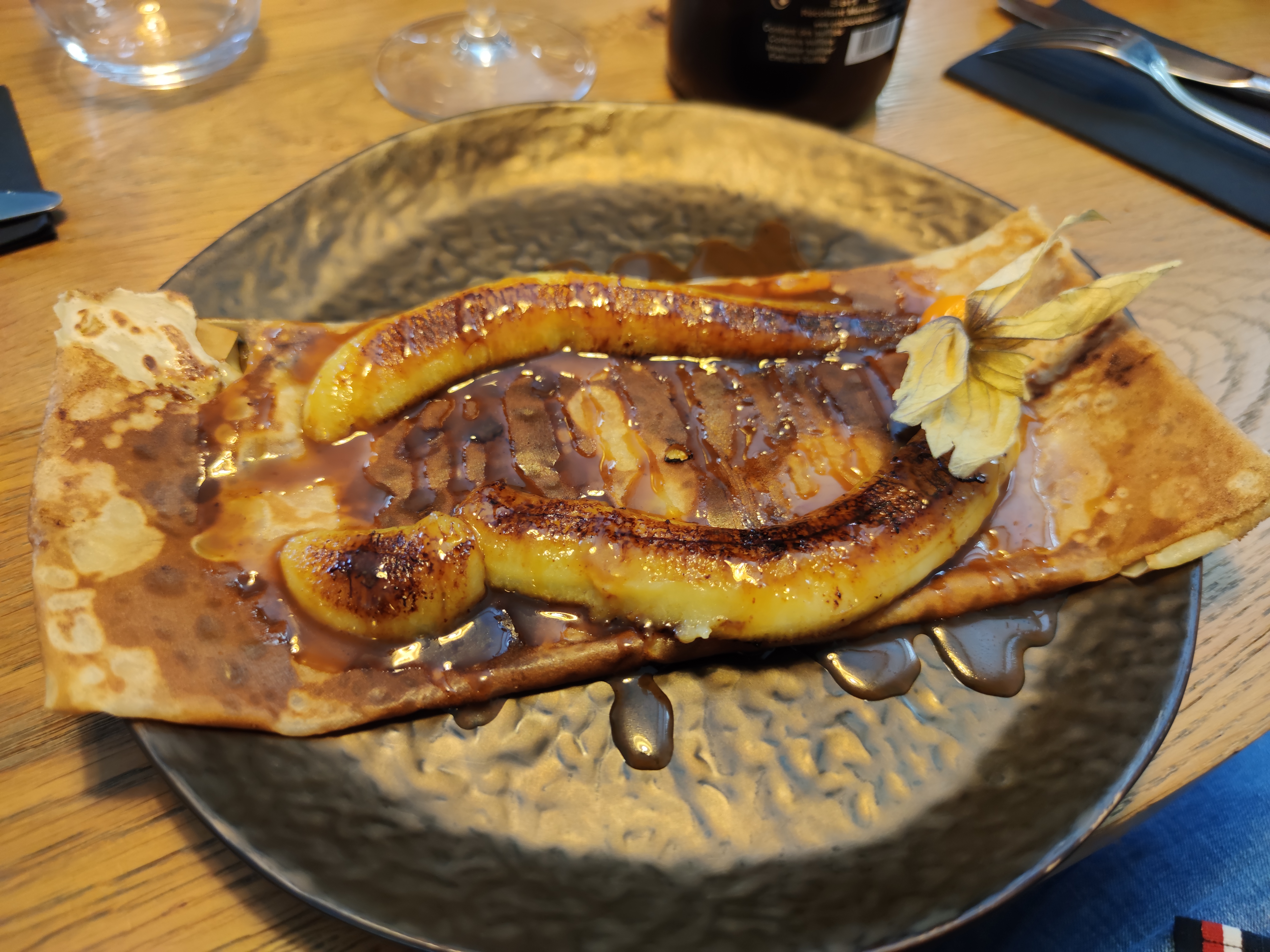 Bonjour à toutes et à tous. Rien de plus banal qu’une crêperie, vous allez me dire. Sauf que la nous sommes en présence d’une crêperie qu’on pourrait qualifier de «haut de gamme». Tant par l’accueil, l’ambiance, le personnel, les mets proposés, tout reflète la marche supérieure, et sans jamais tomber dans l’ostentatoire. On s’y sent bien, choyés, chouchoutés, avec des serveuses et serveurs souriants ouverts, amènes, omniprésents sans être pesants. Les crêpes et galettes sont un délice, et les tarifs savent rester plus qu’abordables. Les animaux sont acceptés et on droit eux aussi à une crêpe. (Avec l’accord dès maître bien sûr) Trop mignon. Chapeau. Allez y les yeux fermés.