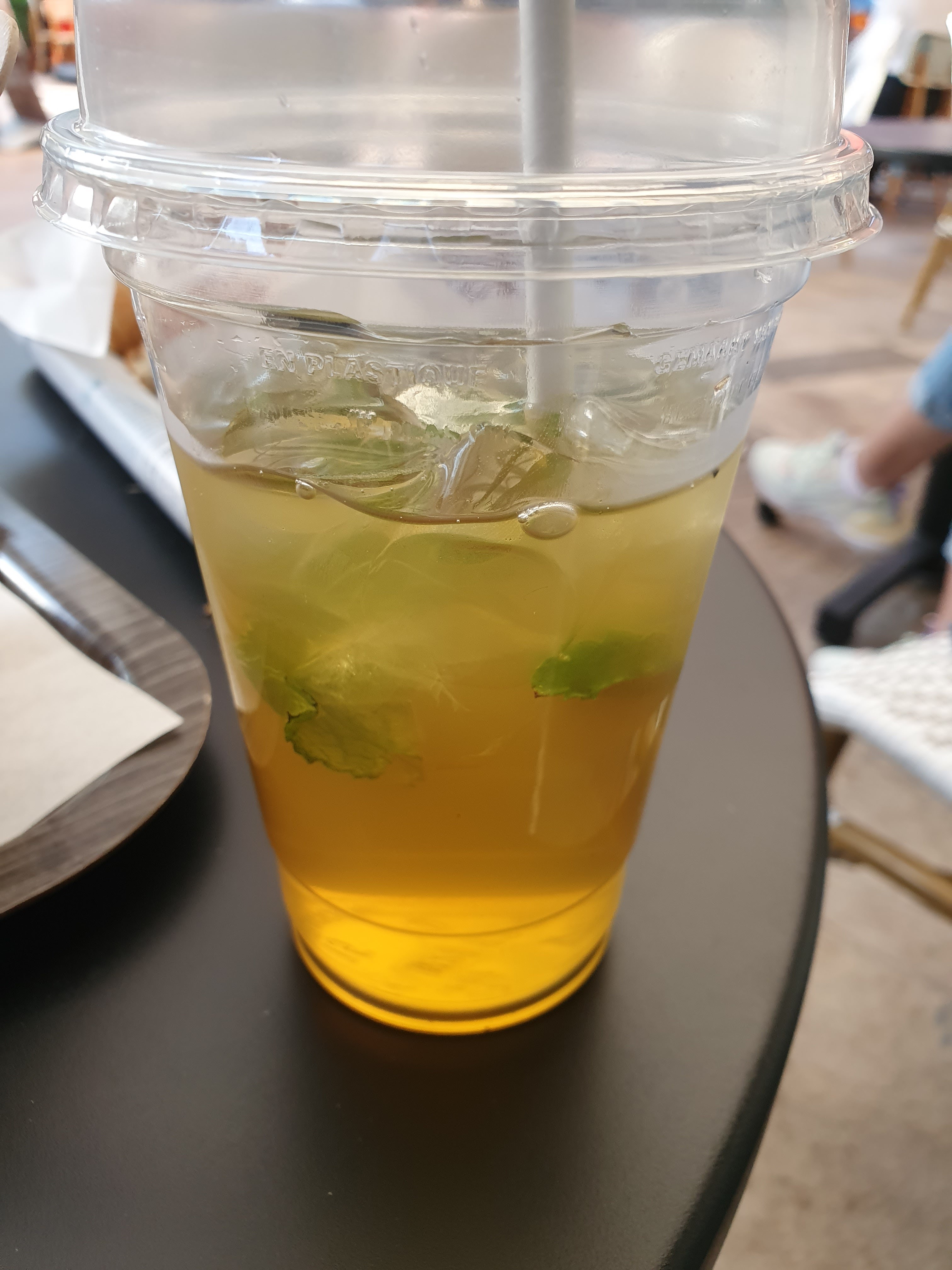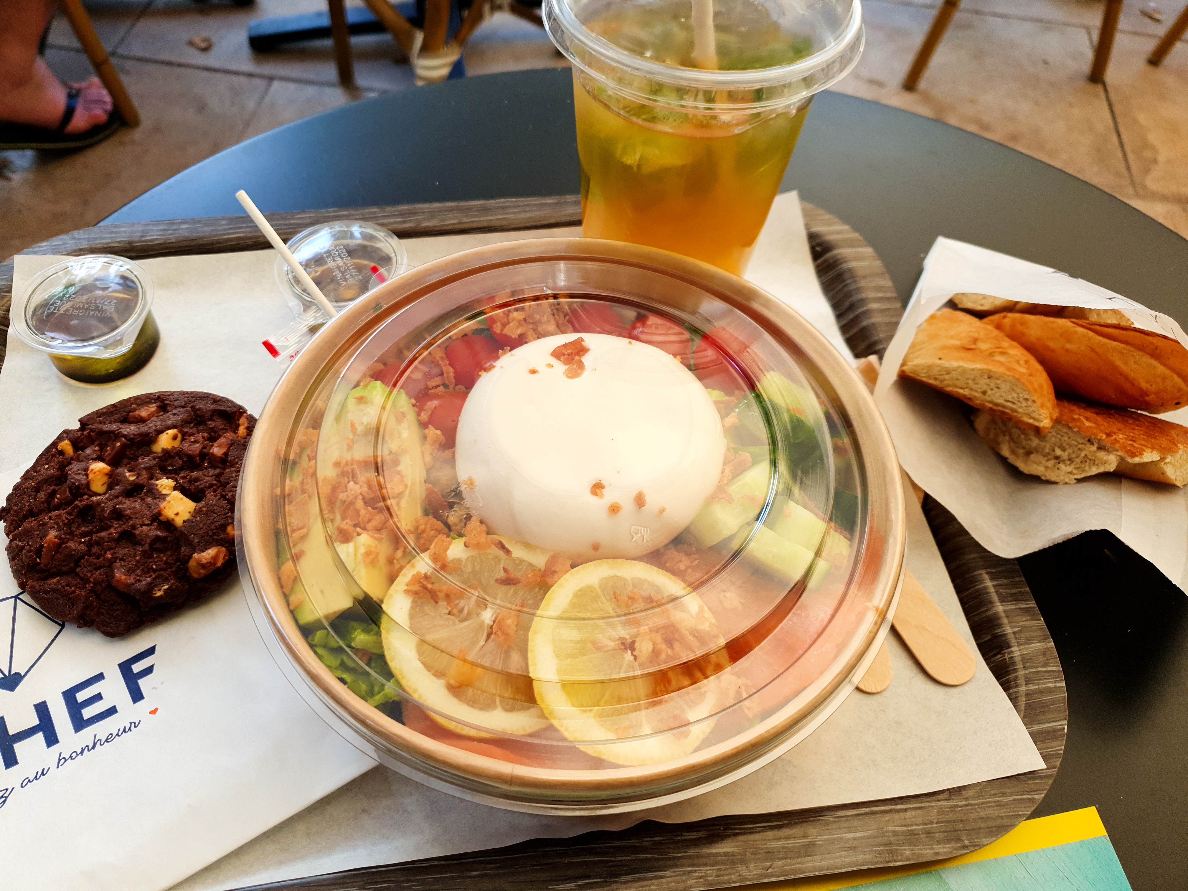 Un service agréable, la salade est très bonne, personnalisable si certaines saveur ne conviennent pas, servie avec du pain chaud croustillant, un thé glacé maison excellent (menthe citron pour ma part) et un très bon cookie chocolat ! Le tout servi sur la petite terrasse extérieure en retrait de la route, il y a tout pour passer un bon moment !