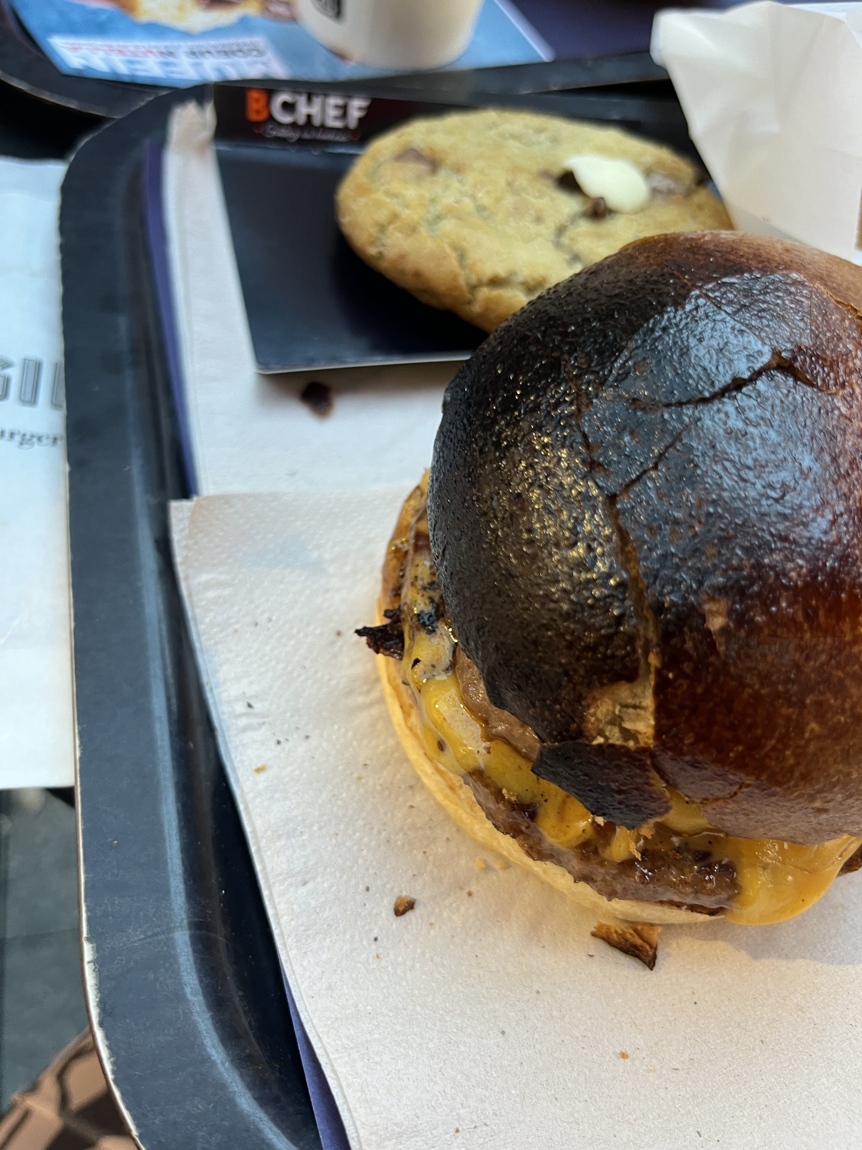 Cher pour ce que tu manges… 27€ les deux menus. Steak hâché sec, caoutchouteux comme ceux dans les burgers surgelés bas de gamme. Le burger sec car juste des aliments juxtaposés les uns sur les autres. Les frites froides/tièdes avec un cheddar FROID mis dans un petit pot. J’ai jamais vu ça… du coup la texture était gélatineuse, écoeurante. Ça fait longtemps que j’avais pas mangé quelque chose d’aussi mauvais et insipide. On dirait que tout est sous vide et réchauffé à la dernière minute…