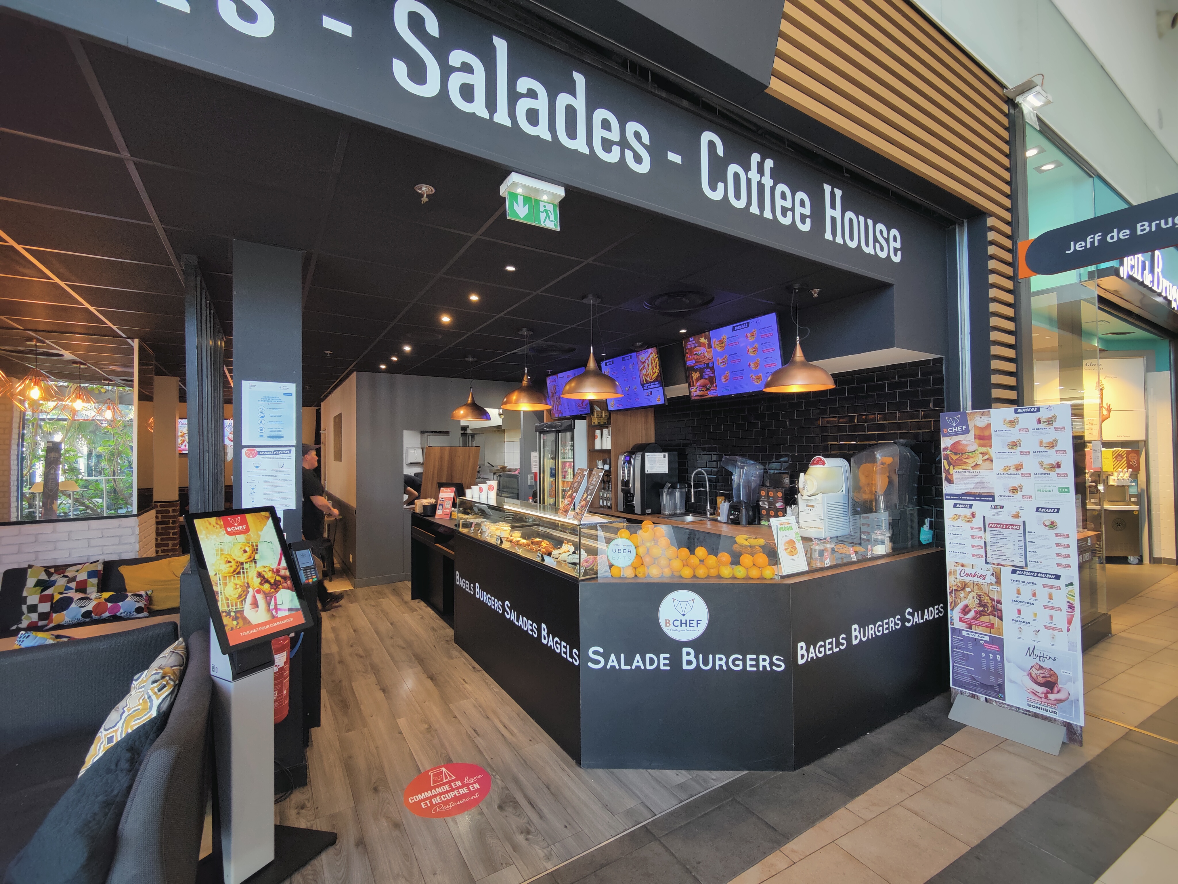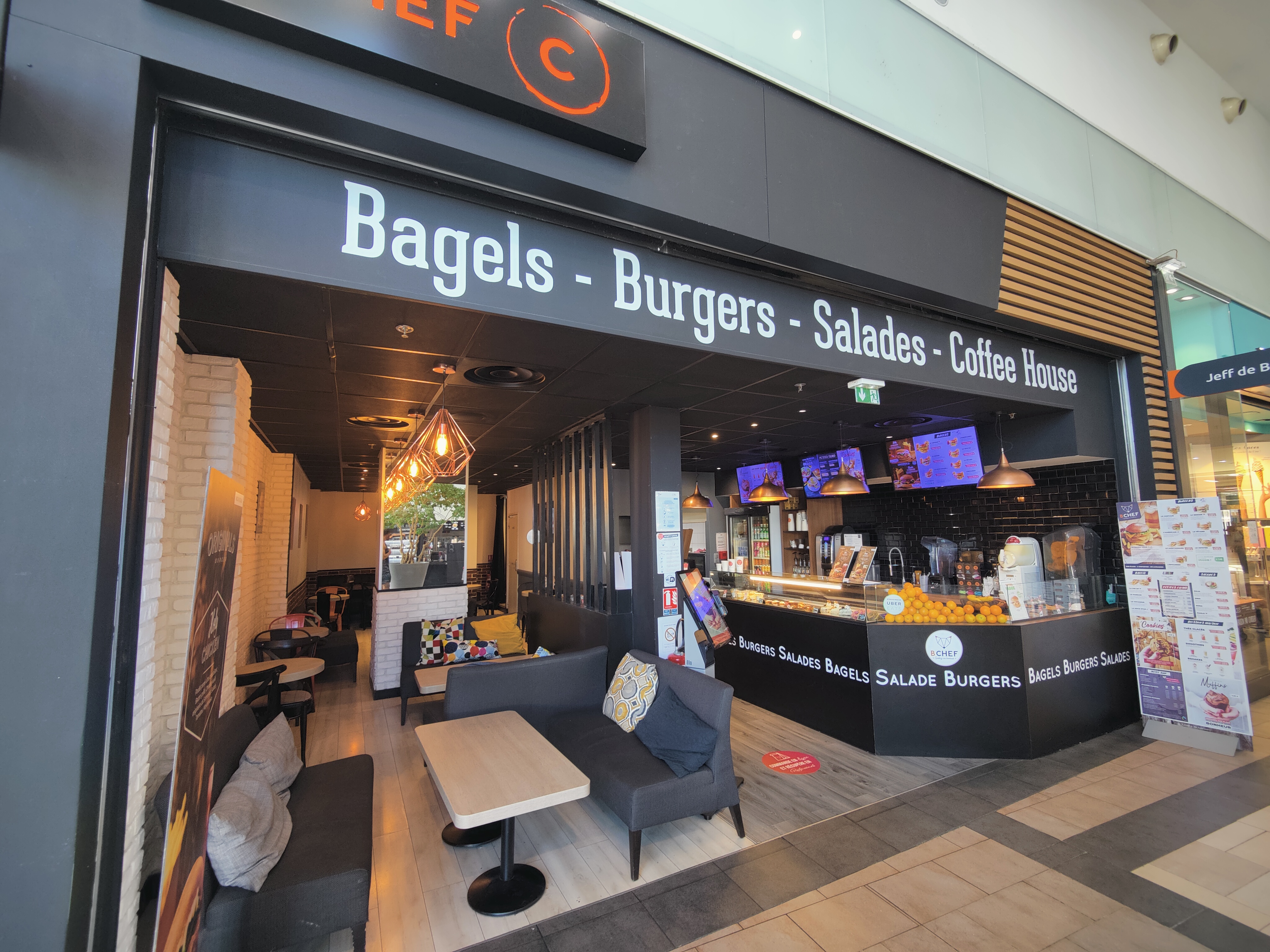 Nous nous arrêtons toujours chez Bchef quand nous sommes dans ce centre commerciale. Bon rapport qualité/ prix. Leurs recettes de burgers, bagels et frites sont originales et surtout bien exécutées. On en sort repus car de bonne qualité. Personnel satisfaisant. Attention il n'y a pas toujours de quoi s'installer (trop de succès).