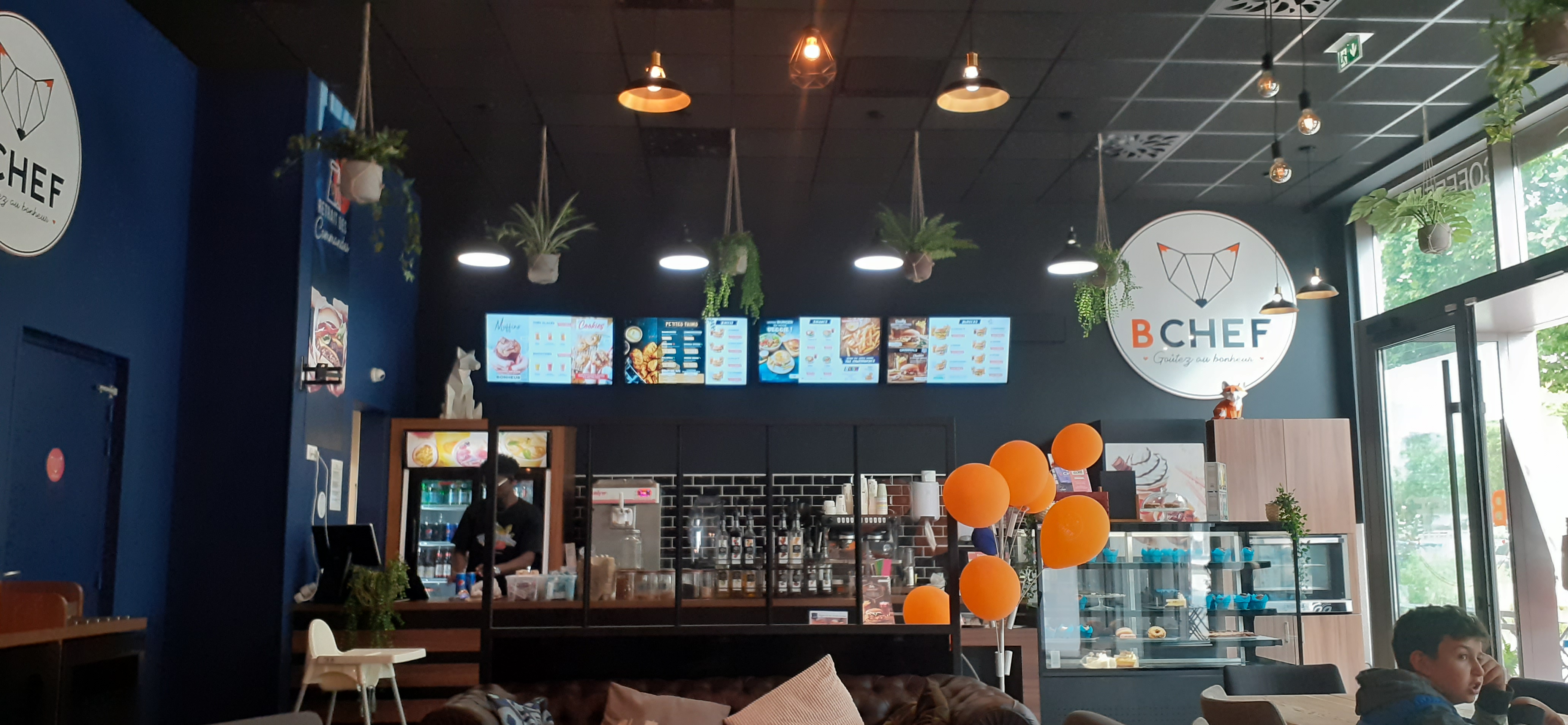 Que dire de Bchef, un acceuil incroyable, des burgers vous faisant salivé, une décoration vous apportant un confort indescriptible et la localisation ? Parlons en ! Parfaite pour un petit creux lors de son shopping ou d’une séance de cinéma. Et même si vous préférez votre petit cocon bien douillé, offrez vous un menu à la maison car Bchef viens jusqu’à chez vous !