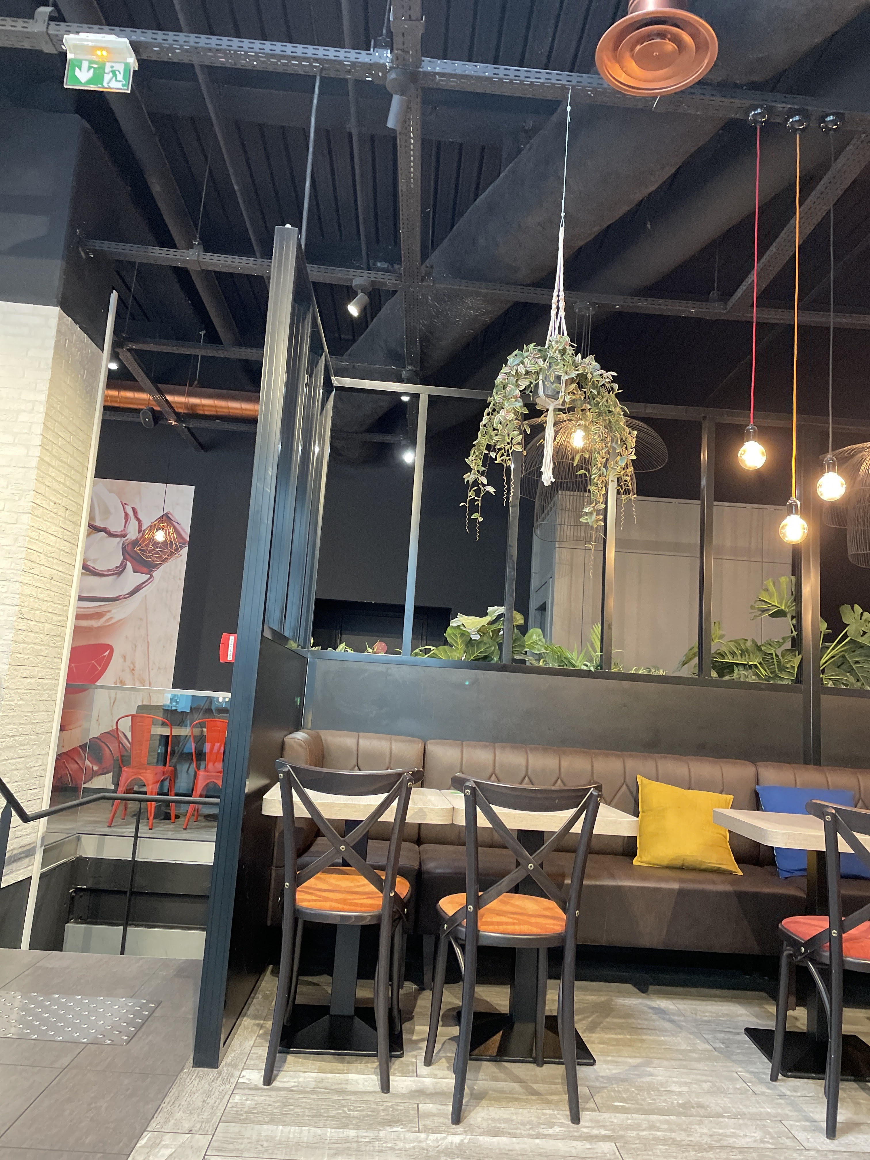 Super endroit espace sympa et confortable (canapé plante d'intérieur salle de jeu pour enfant et ampoule à la New Yorkaise) et bon rapport qualité prix avec un service plus ou moins rapide en fonction de l'heure ou on y va
