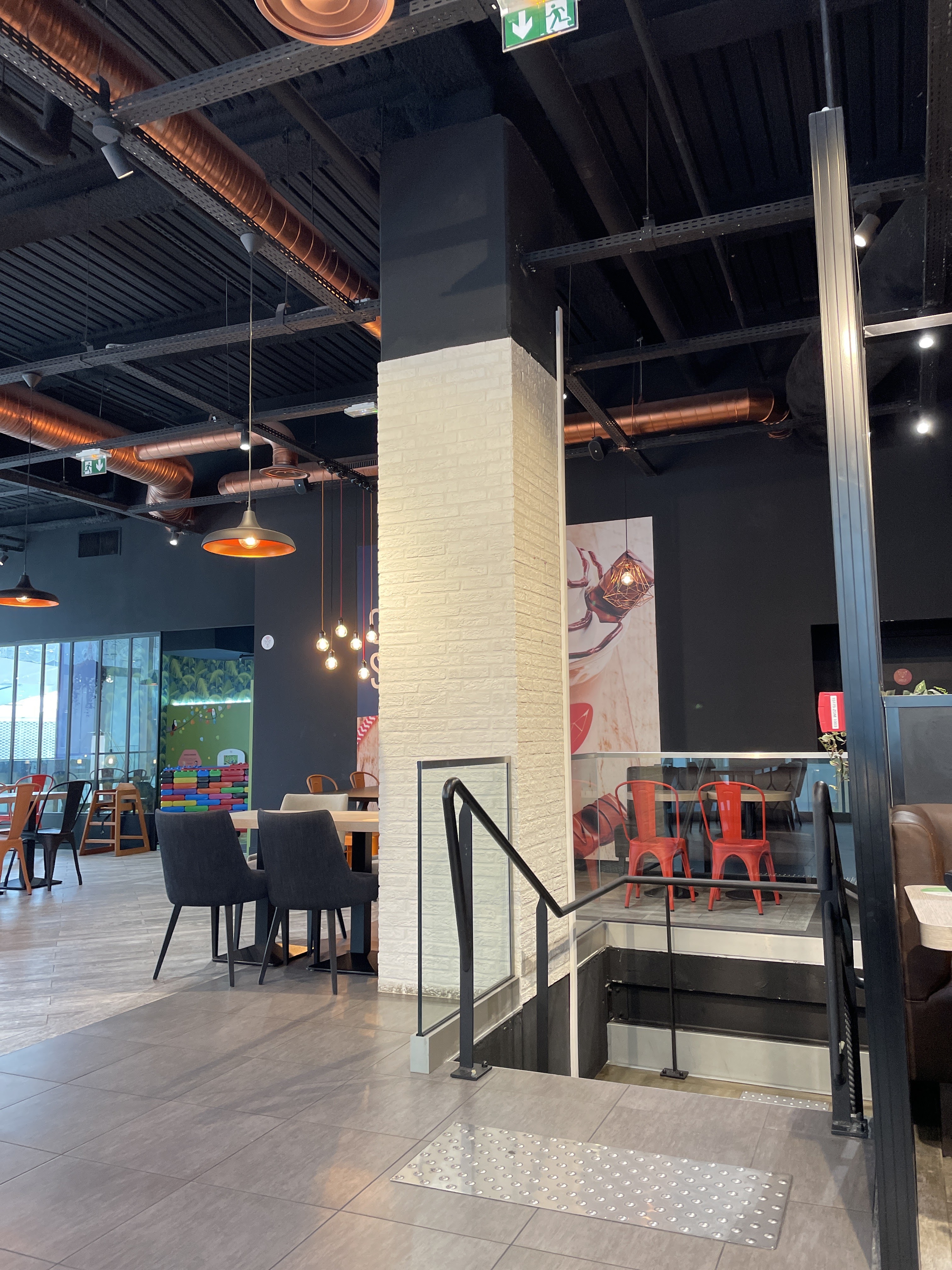 Superbe expérience et aire de jeu pour les enfants. Cependant, des accidents très graves peuvent avoir lieu avec les enfants, aucune clôture en hauteur au niveau de l’étage… il suffit qu’un enfant monte sur une chaise et se penche dans le vide pour tomber de plus de 10m… idem pour le grand canapé collé à l’aire de jeu, les enfants peuvent simplement se pencher et tomber… Je pense que des mesures doivent être prises en urgence à ce sujet même si ces derniers sont sous la surveillance des parents.