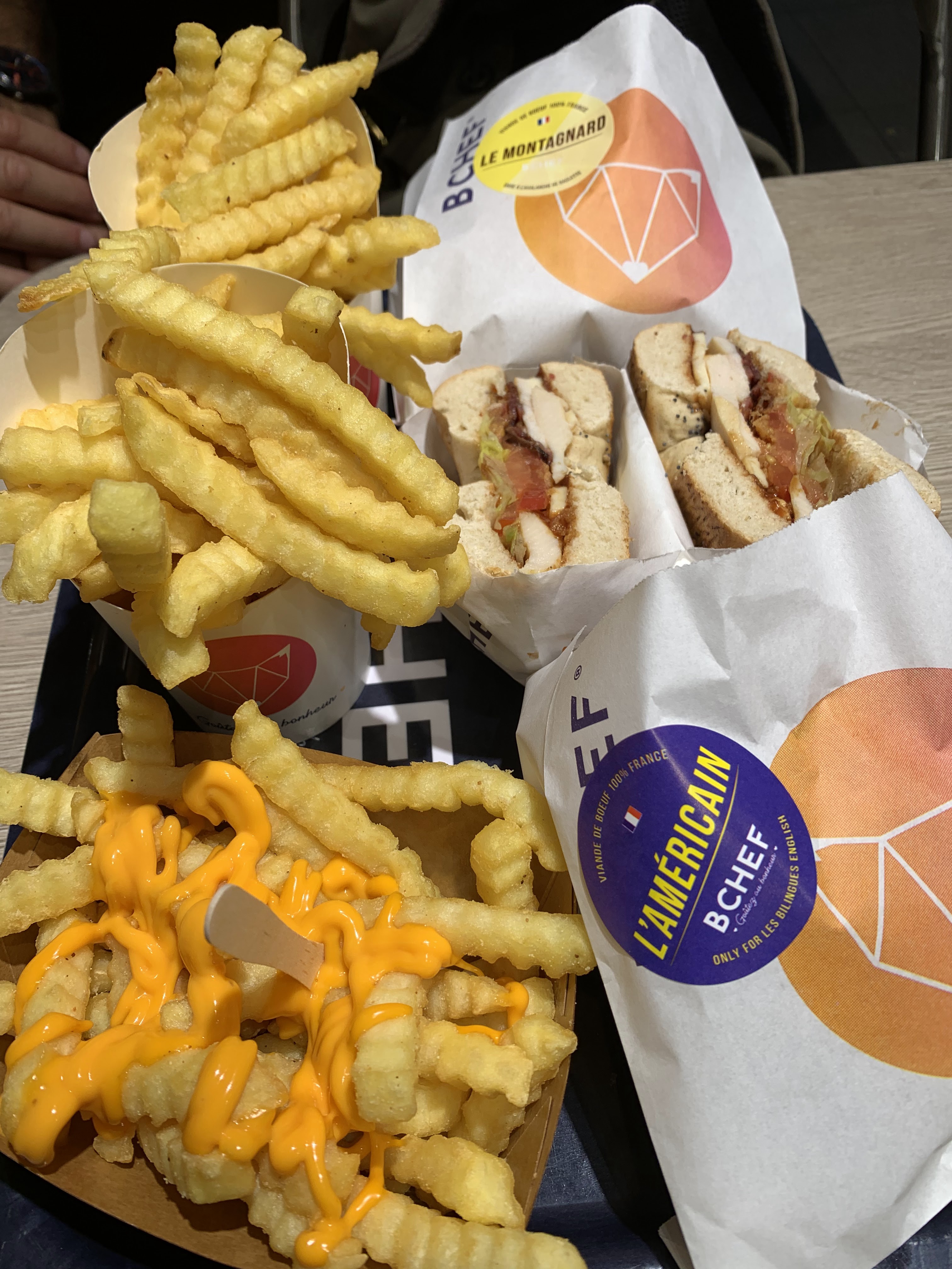 Le BChef est une réseau connue en France où vous pouvez manger des hamburgers, frites, milkshakes, etc. Malheureusement, le milkshake est pas bon, parce qu’il est trop liquide, quasiment que du lait bien froid. Et quand vous prenez à emporter, la crème fouettée et les toppings vont être collés sur la couvercle.