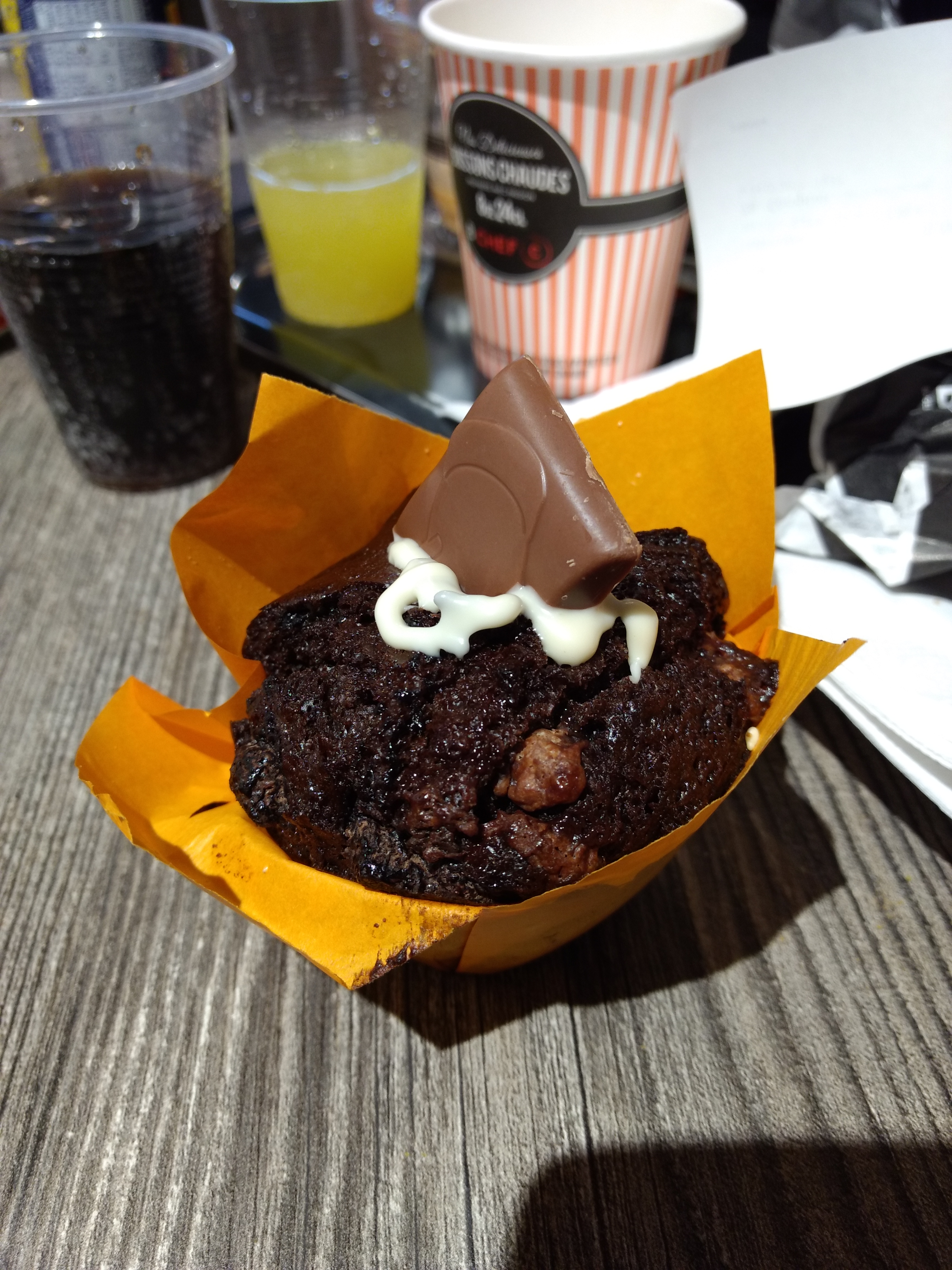 Muffins au kinder sans chocolat à l’intérieur et thé glacé imbuvable et chaud ! (Réponse: ont n’a demander si le muffin Kinder était fourré on nous a assurée que oui ! Alors que non. Et le thé glace était tellement amère et imbuvable ! Avec de l’eau du robinet et deux glaçon qui ce battais en duel.)