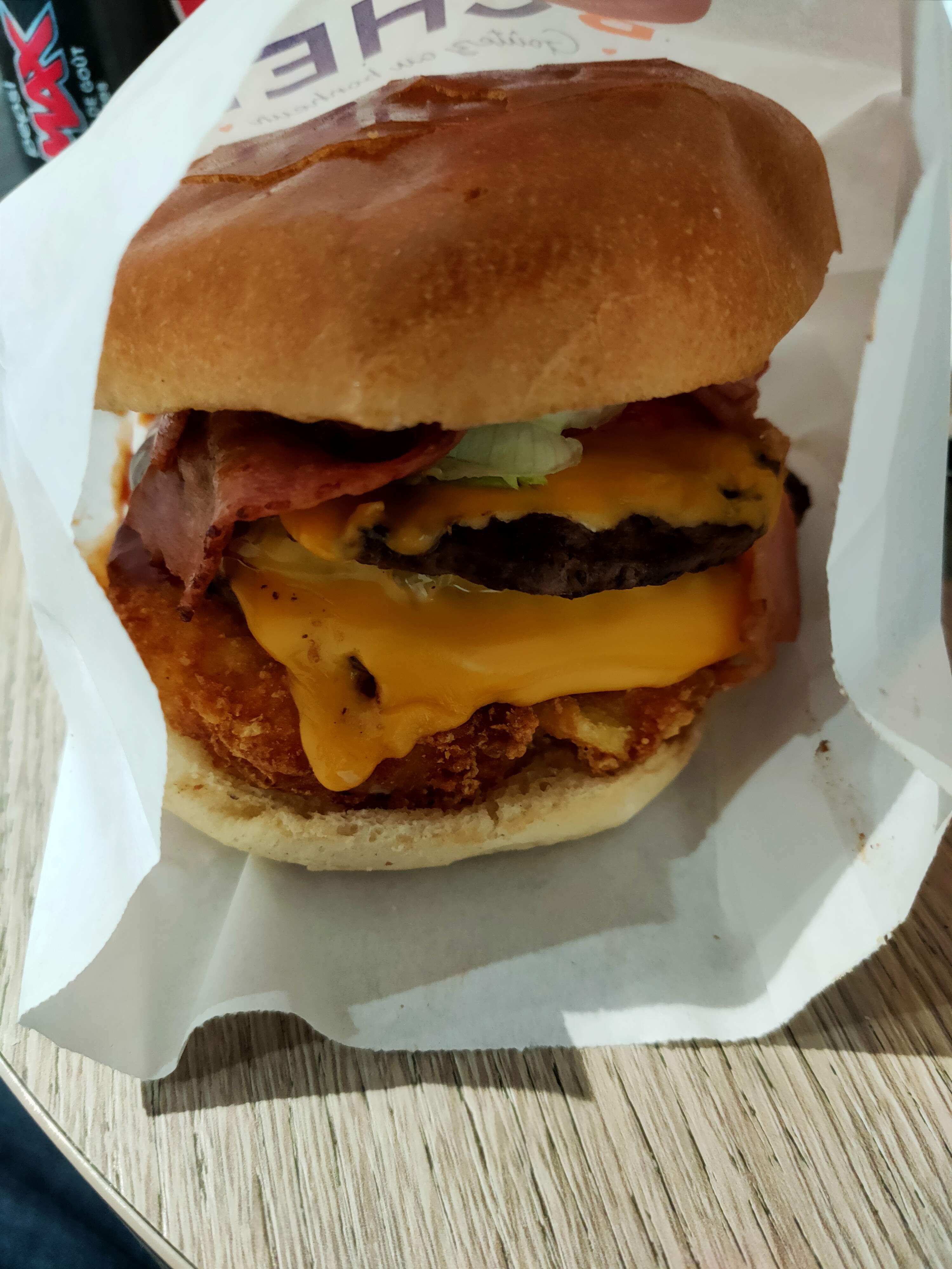 Accueil très agréable, peu d’attente ce jour (en semaine), ambiance sympa. Pour ce qui est de la nourriture, le burger poulet est très bon, filet de poulet pané, bacon, salade, tomates et mayonnaise. Le pain brioché est moelleux! Salade avec base salade ou pâtes (l’un ou les deux au choix), mais plus de sauce pesto aujourd’hui (cette salade est normalement avec la sauce pesto), dommage !