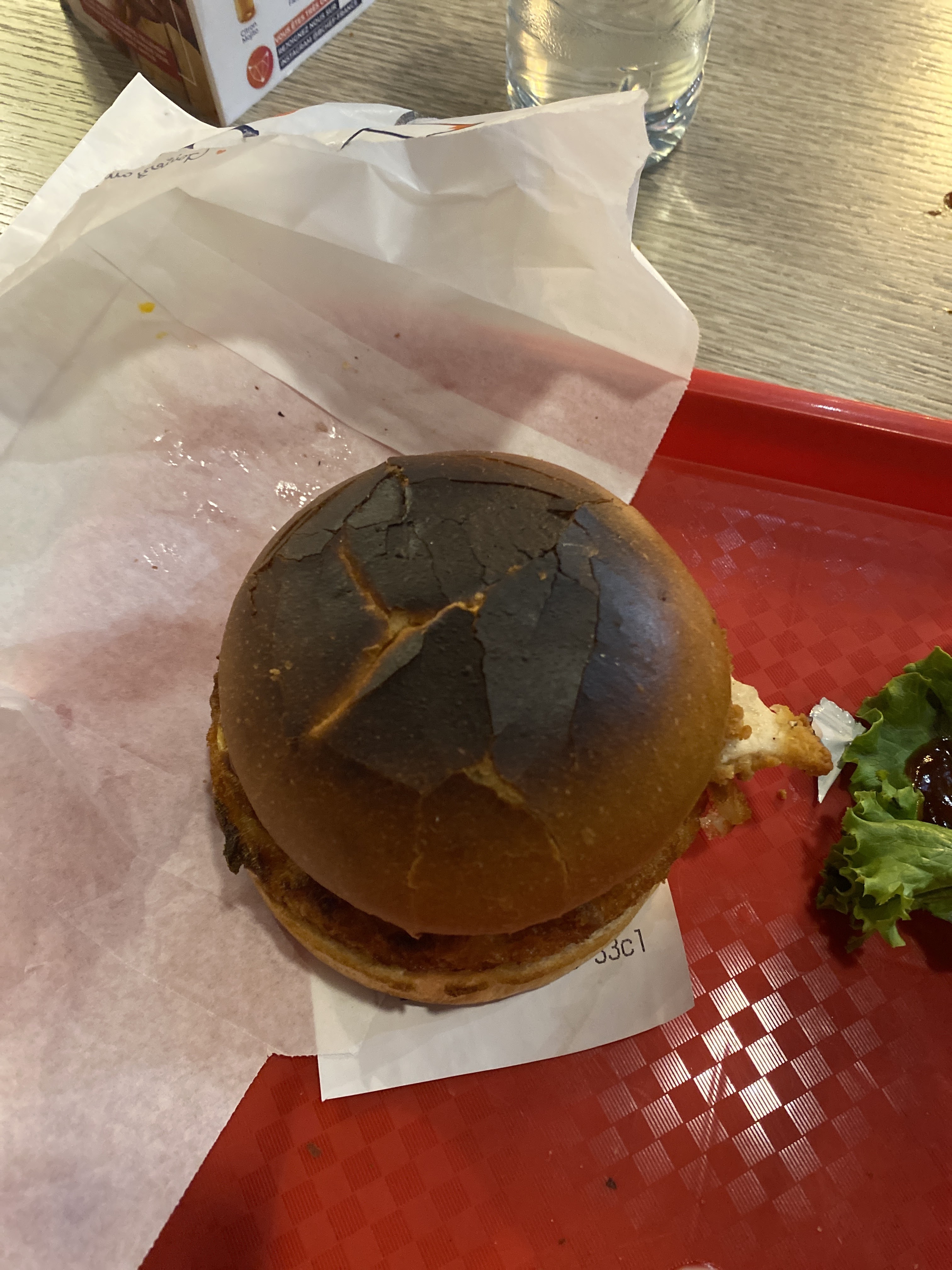 CATASTROPHIQUE!! Burger servir grillé, plus de sauce sur la salade que sur mon poulet! A éviter absolument! Sans parler de l’attente mais bon quand j’ai mes burgers j’ai comprit pour quoi ce fut aussi long! Il ont dû être oublier dans le grill, on dirait que les burgers sont déjà prêt et qu’il sont directement chauffer puis servir! Établissement à éviter! Surtout dans la zone avec tout les restaurant qui a. Oui restaurant car vue le prix autant aller au restaurant Les frites à peine cuite par contre on était ma bouée de sauvetage