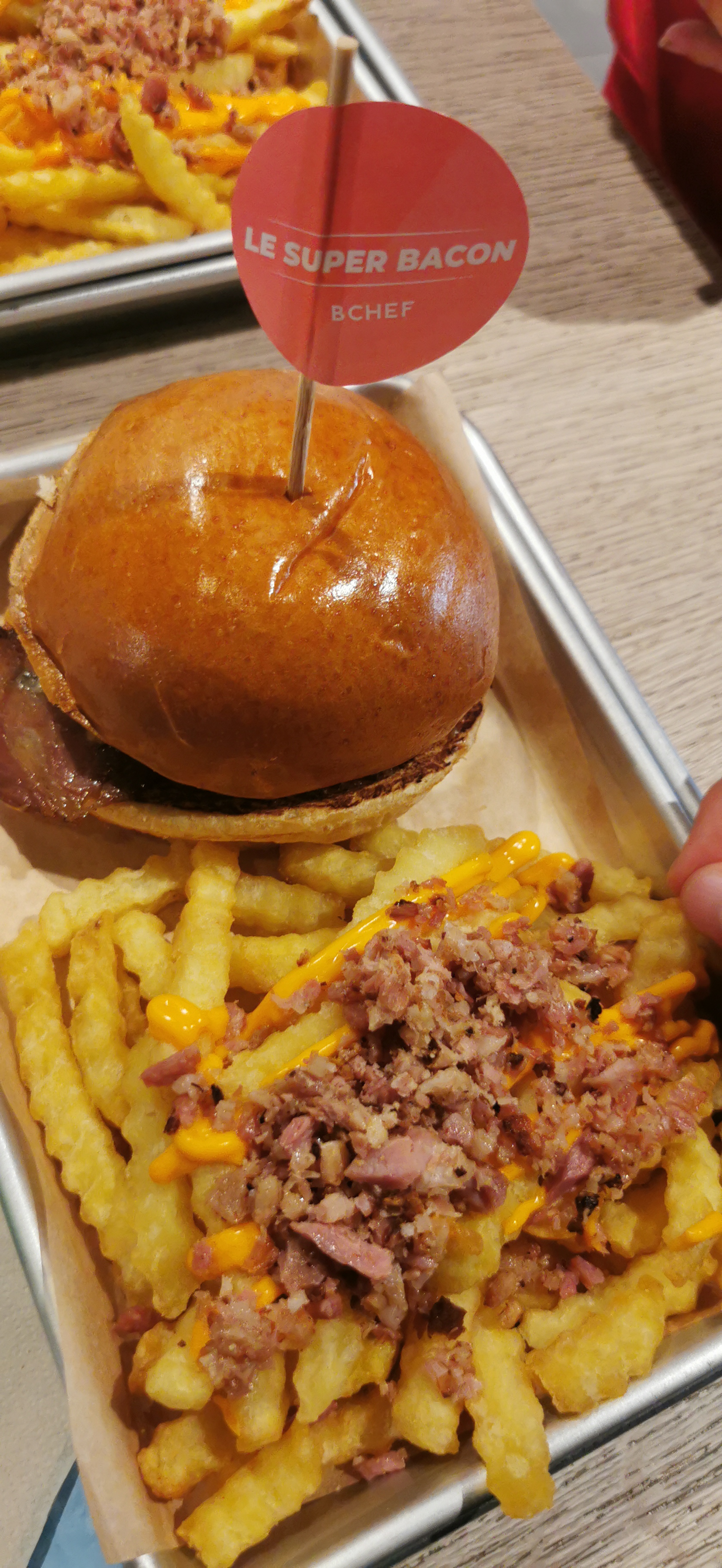 Frites bof bacon bof cheddar exactement le même que chez Quick vu le prix assez déçu et la douche froide le burger vraiment à la limite du mangeable le seul point positif c'est copieux et c'est tout vous en aurez pas pour votre argent