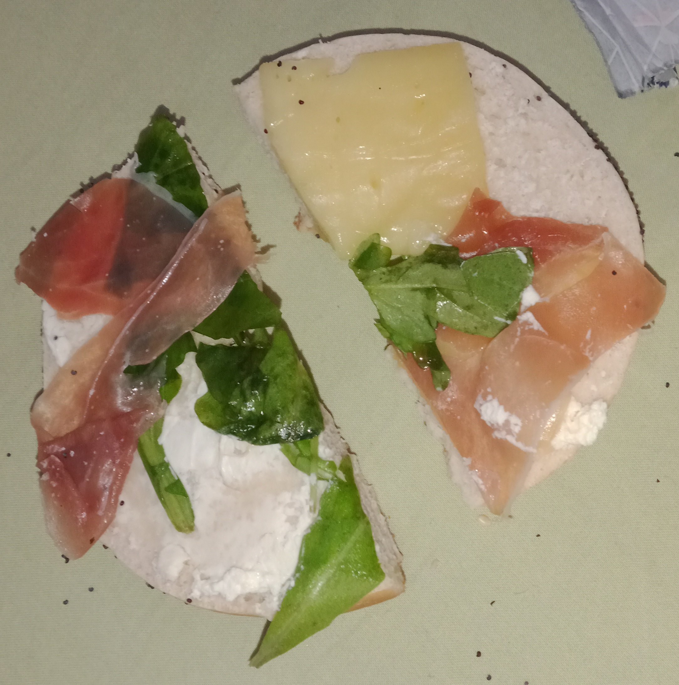Bagel en livraison quasiment vide. Deux petits morceaux de jambon cru (ça ne fait même pas une tranche entière), un morceau de fromage dans un coin, même pas coupé, et trois petits bouts de salade qui se battent en duel. Déception énorme au vu du prix, je ne recommanderai pas.