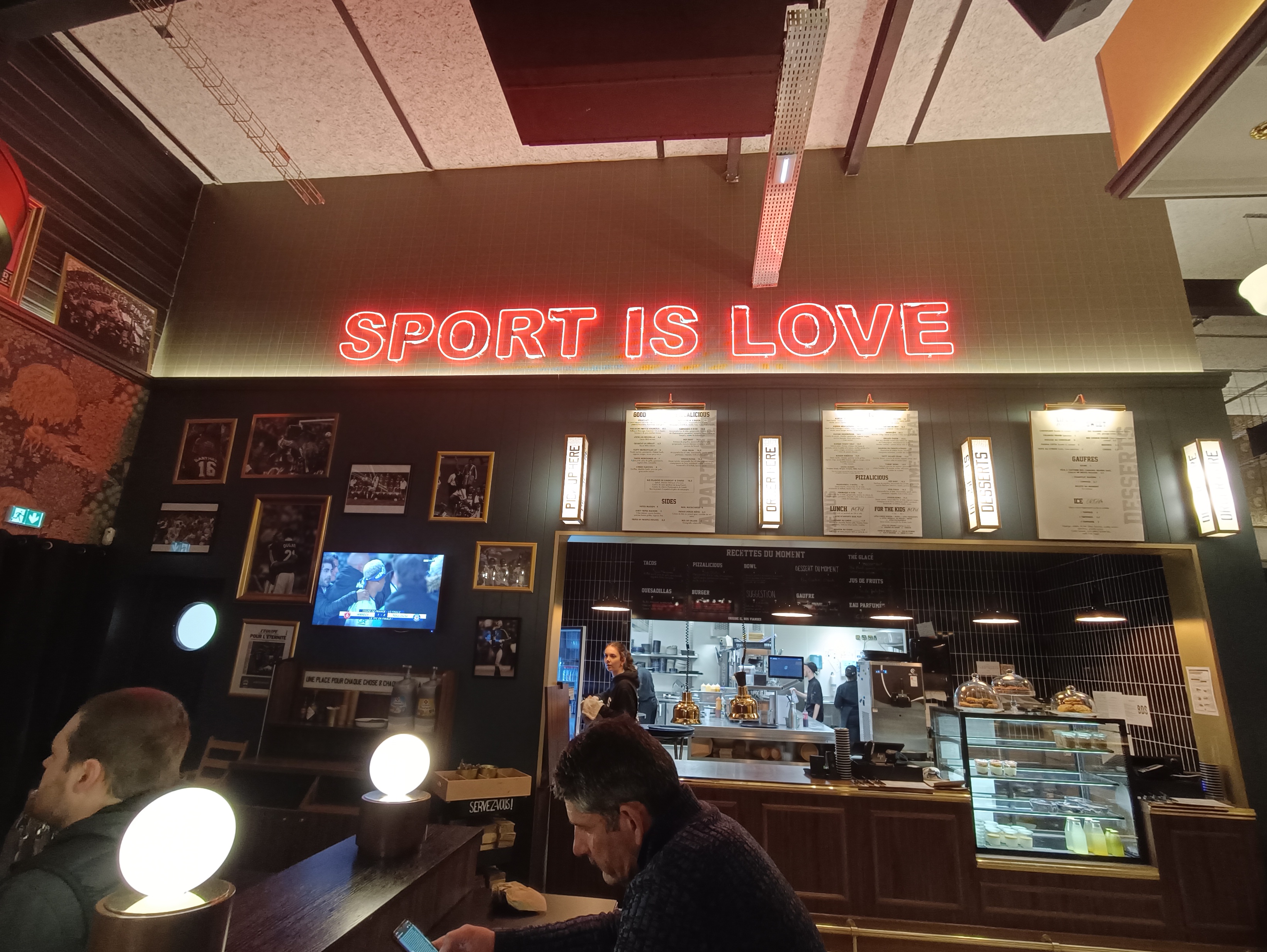 Le lieu et sympathique mais les matchs de football en boucle avec le son à fond ça n'est vraiment pas de goût... Et le pire c'est la nourriture, c'est au niveau de McDonald's. De la bonne vieille malbouffe de plus l'équipe qui sert n'est franchement pas très cool