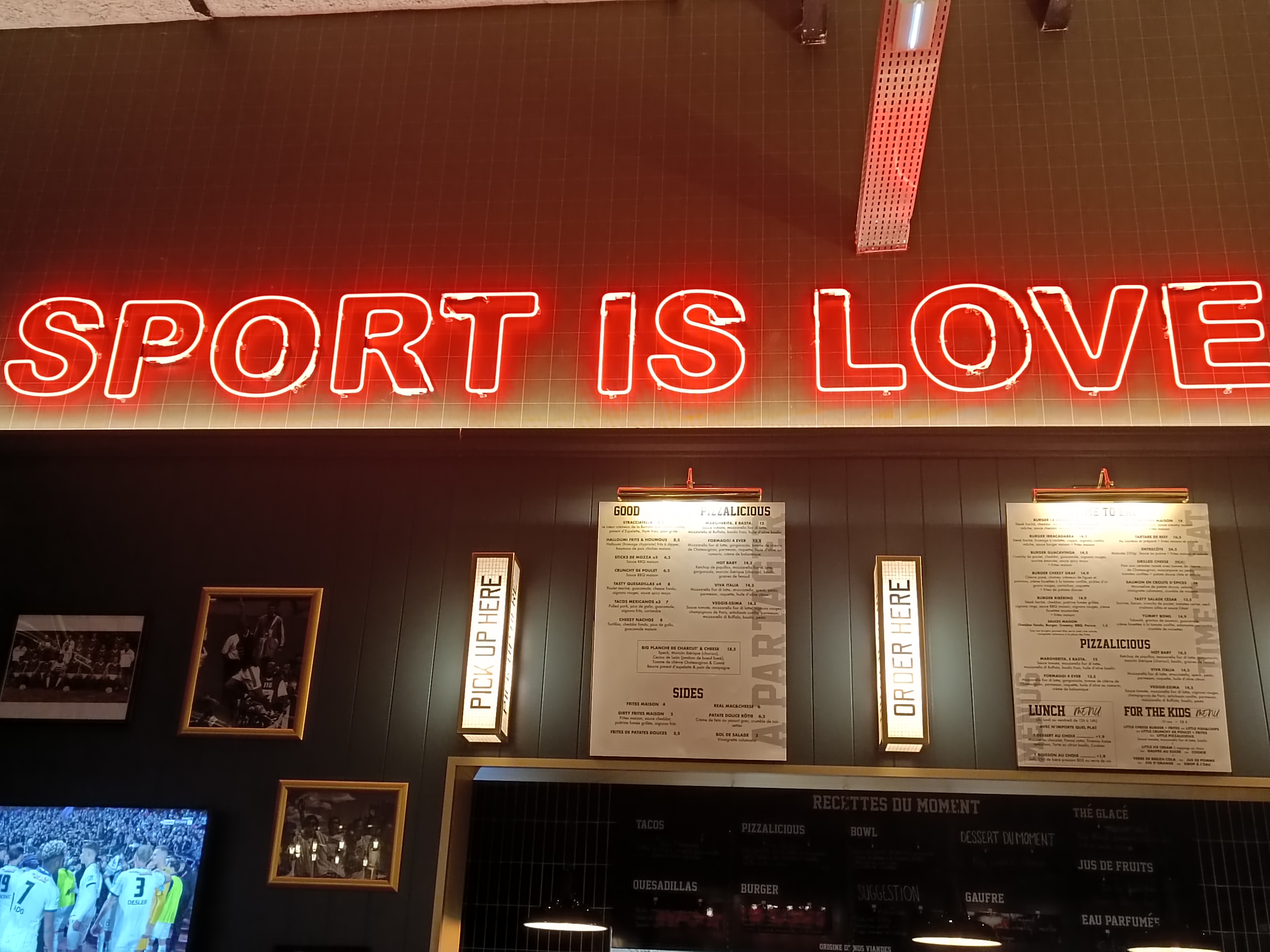 Soirée mitigée avec mes amis, nous sommes venus voir la finale de l'euro de Basket qui était prévue dans ce bar, mais vu qu'il y avait apparemment plus de clients pour un match de ligue 1, ils ont décidés de diffuser seulement la moitié du match de basket... Très déçu de ce changement de programme... À croire qu'il faudrait peut être écrire Business is Love plutôt que Sport is Love sur les murs de ce bar. Cependant les serveurs et les plats sont convenables.