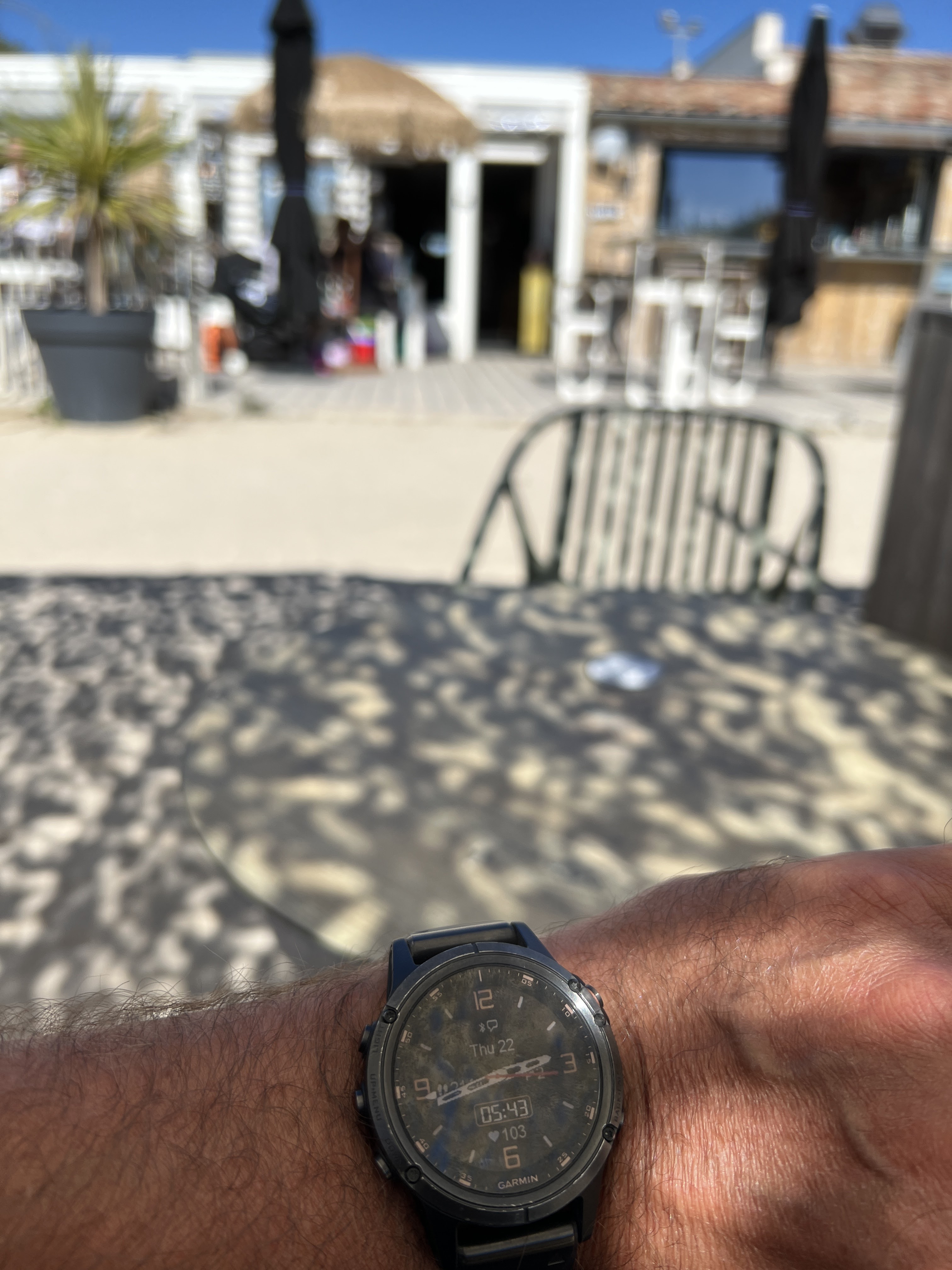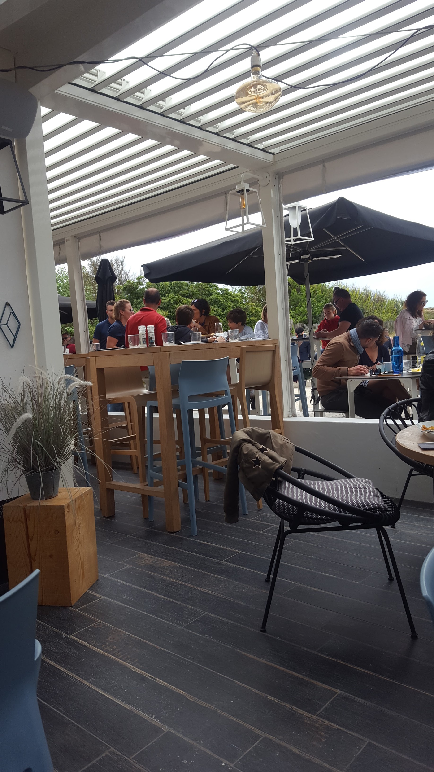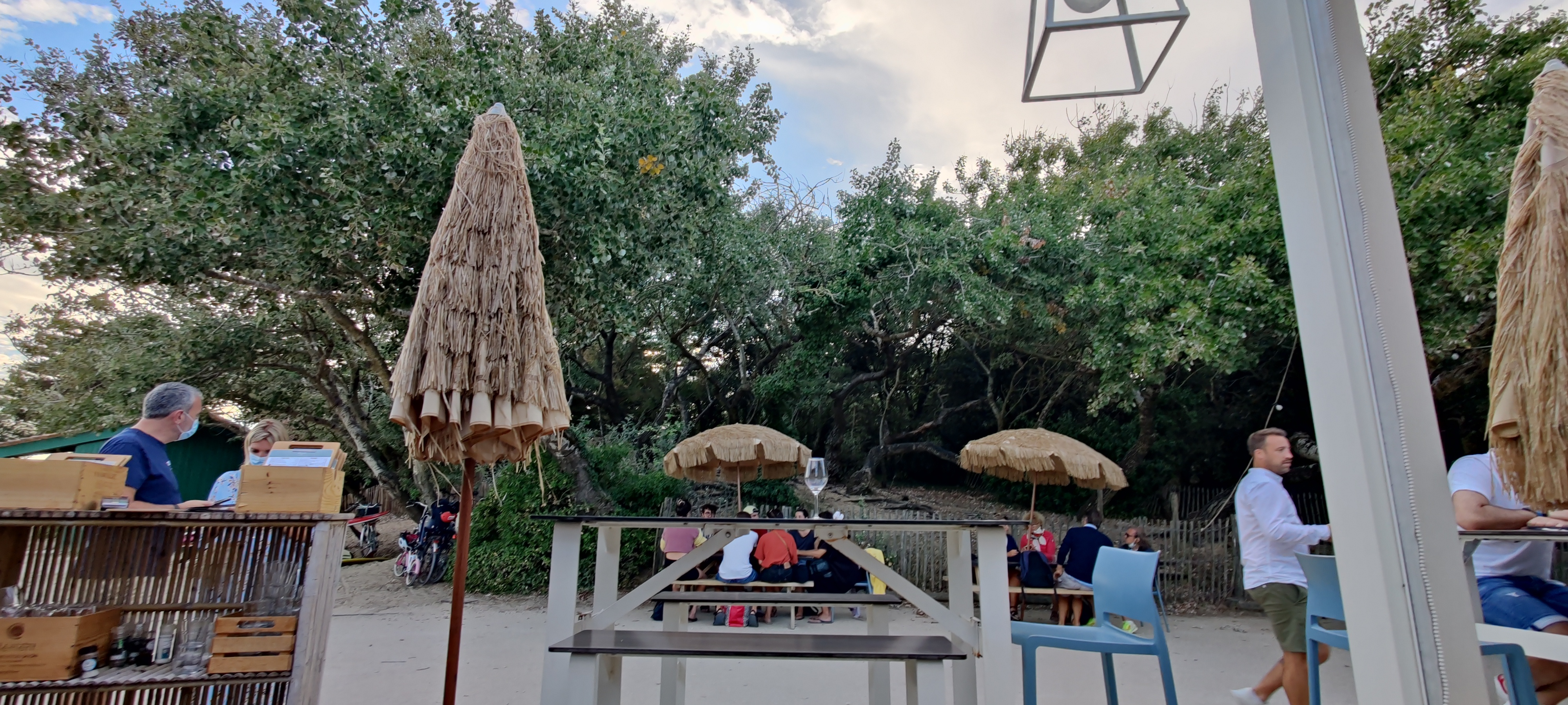 C'est bon, en terrasse avec le sable et les pins, même si on ne voit pas la mer, l'expérience est très sympa. Expérience un peu ternie par la facture aussi salée que l'océan. On paye cher l'emplacement quand même. 175€ à 6, dont 2 enfants, un apéro et une bouteille. On le fait une fois...