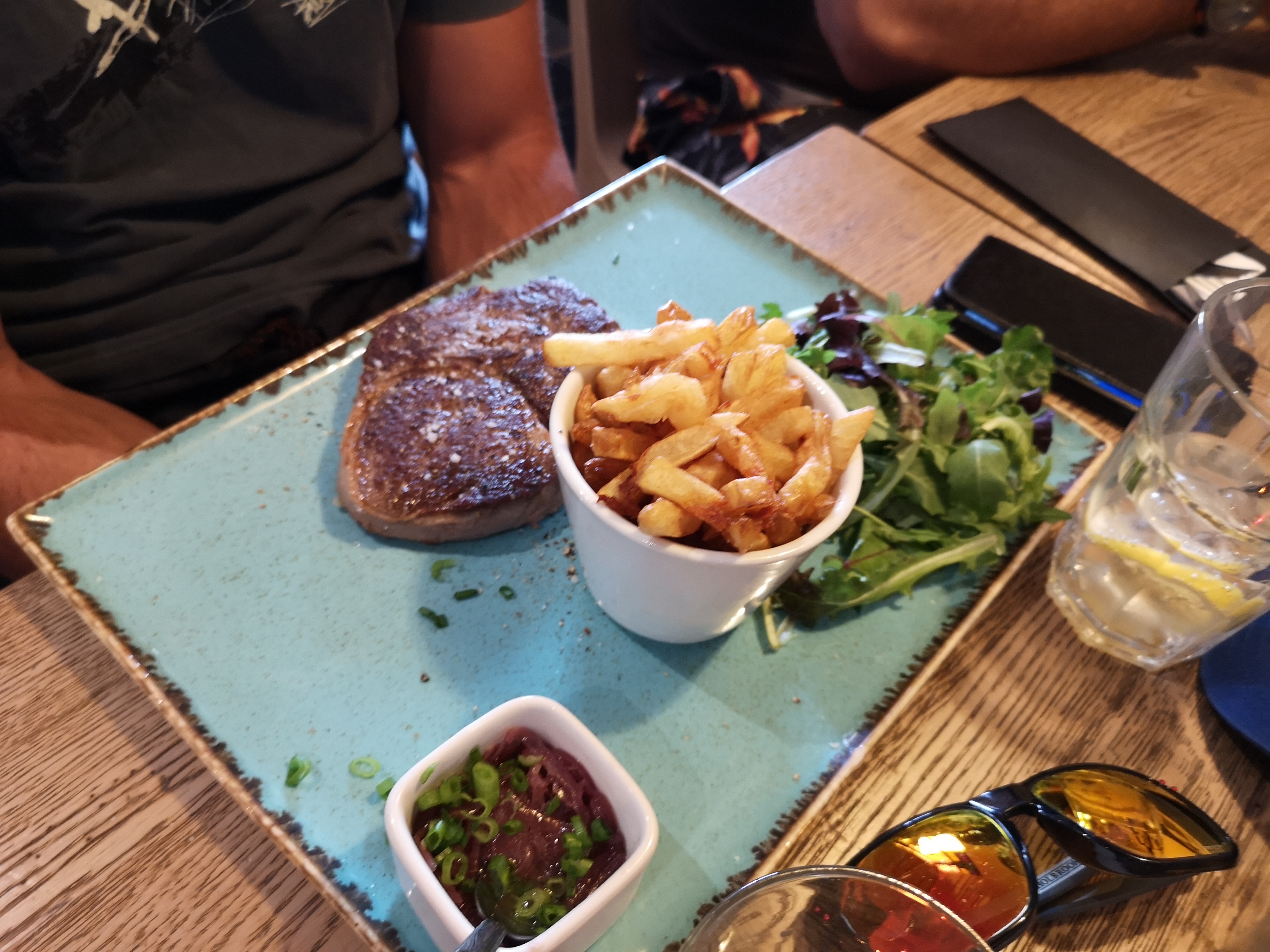 Super petite brasserie en bord de plage. Entrée de calamars, raie et steak, tous excellents. Bon service et cadre agréable. Nous y avons déjeuné quelques jours plus tard - excellents fish n chips