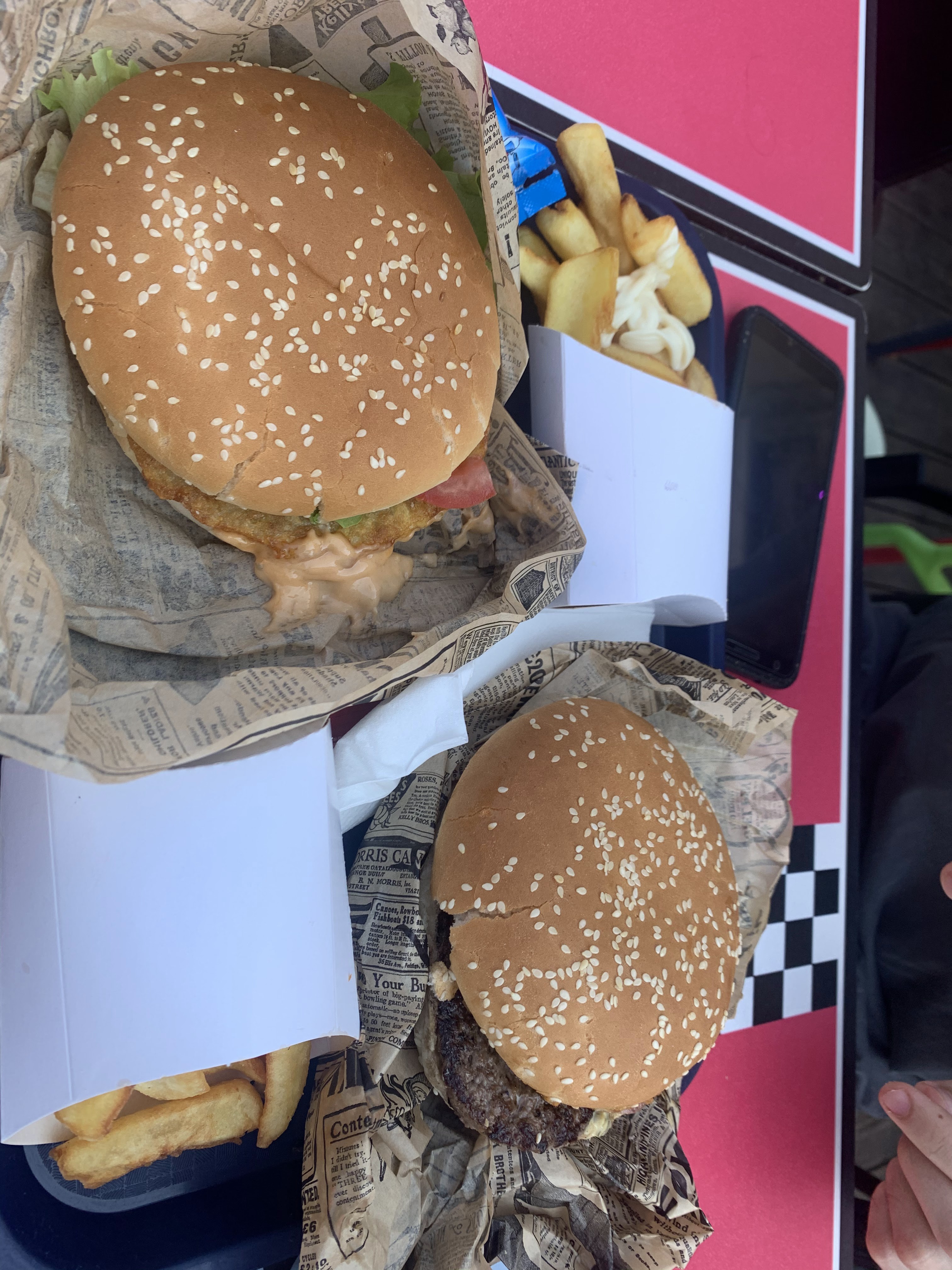 Très bon, dommage pour les sacs et les barquettes de frites en plastique.