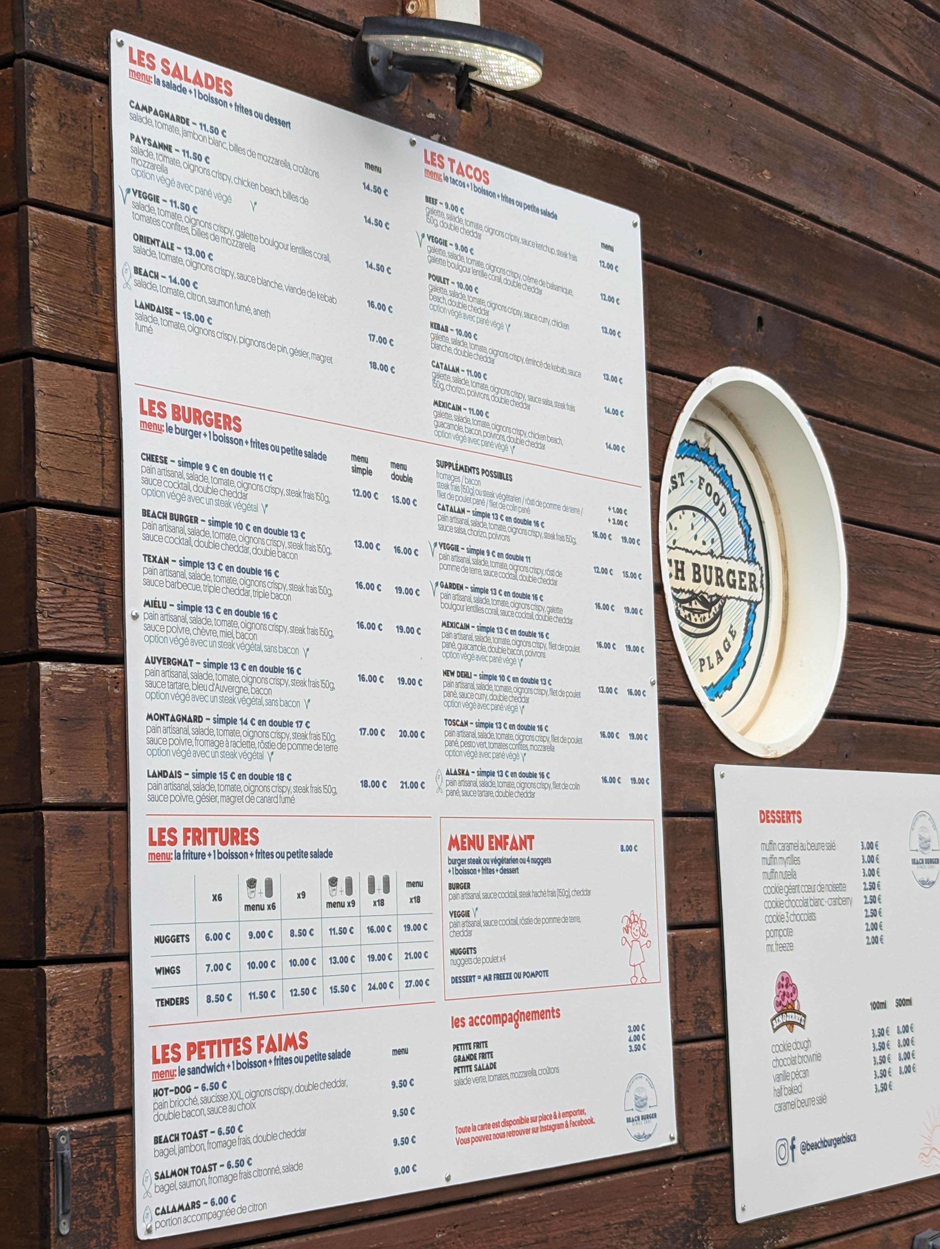 Nous avons été très bien reçu par l’équipe de Beach Burger et leur joie de vivre ! Le burger Auvergnat m’a beaucoup plu, le pain du burger est juste excellent, on croirait avoir une brioche en bouche. La cuisson du steak est parfaite, le fromage répond à ma gourmandise. Tout est très bon je me suis ré-ga-lé. L’ambiance est chill, bord de plage comme on l’aime. C’est super sympa de manger sur place et on y est très bien assis. Bref je recommande d’aller tester par vous même. Je reviendrai !