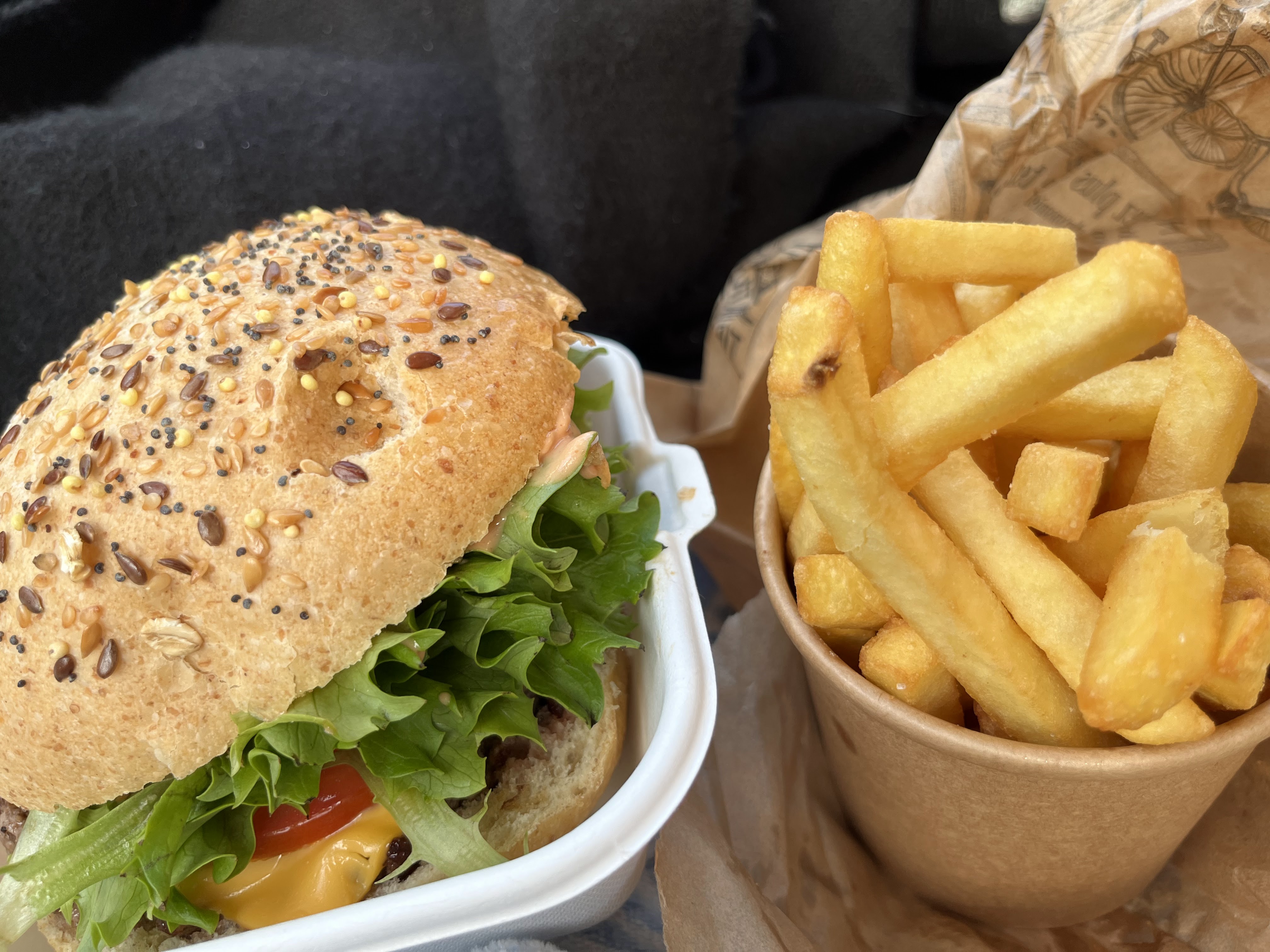 Repas pris à emporter ! Super bien accueilli !! Burger super bon, frites excellentes, franchement rien à dire !! J’avais oublié de signaler que je n’aimais pas les tomates et les oignons finalement j’ai tout mangé, grande première ! Bravo au cuisinier !! Je recommande, ça vaux le détour !