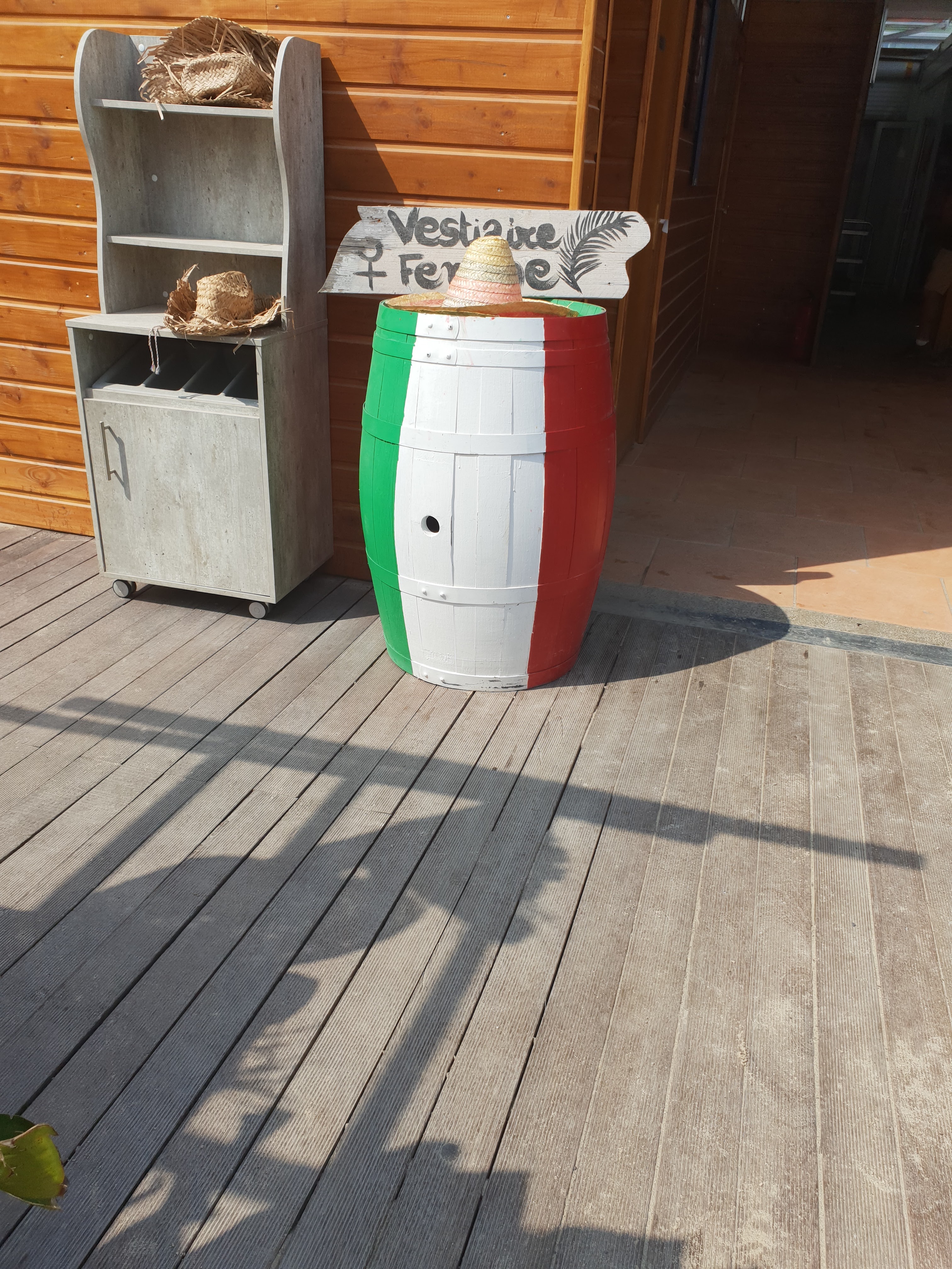 Très sympa côté apéro. C'est très chouette les pieds dans le sable pour certaines tables. Panier suspendus, tables basses, tables hautes...