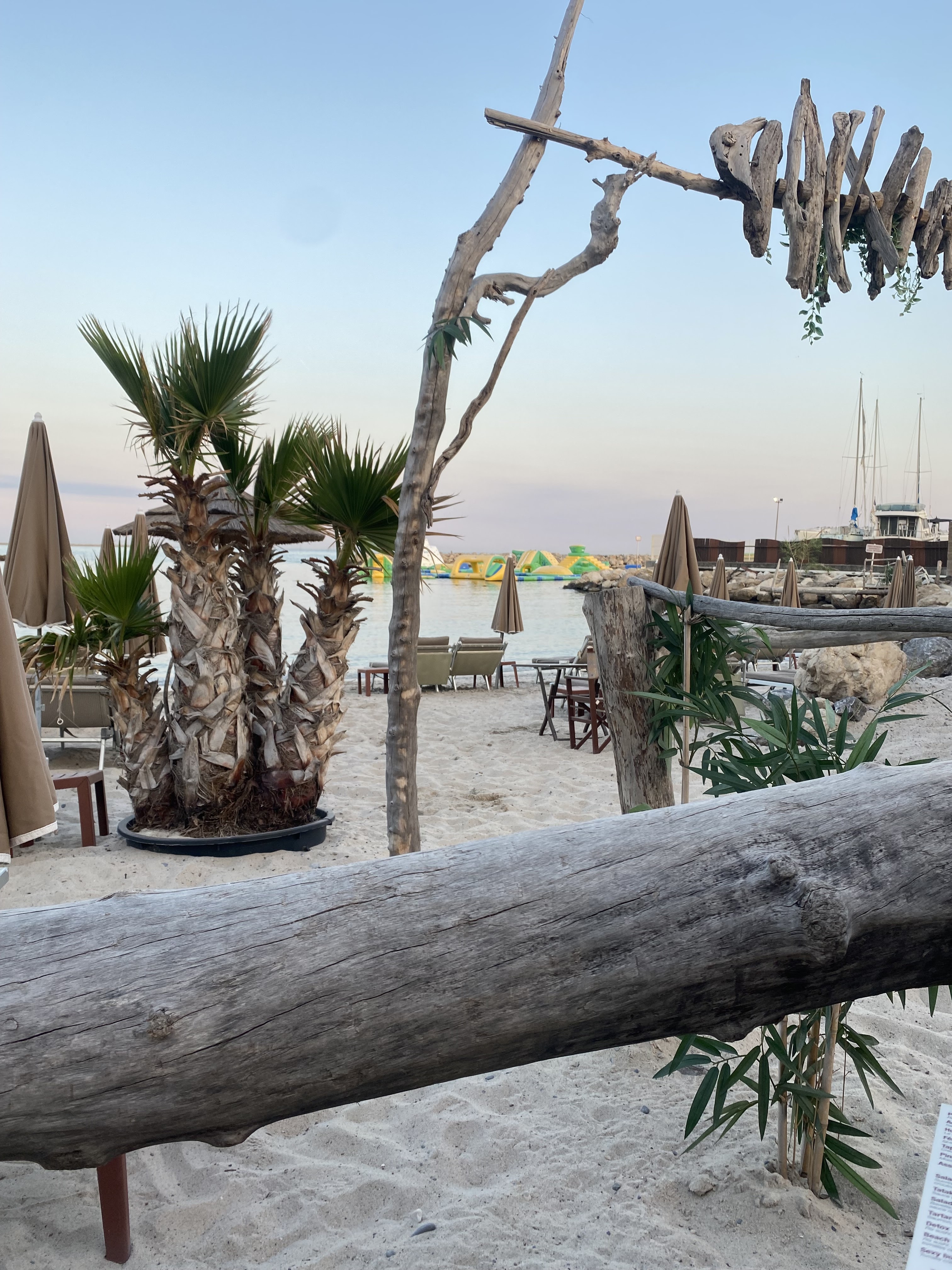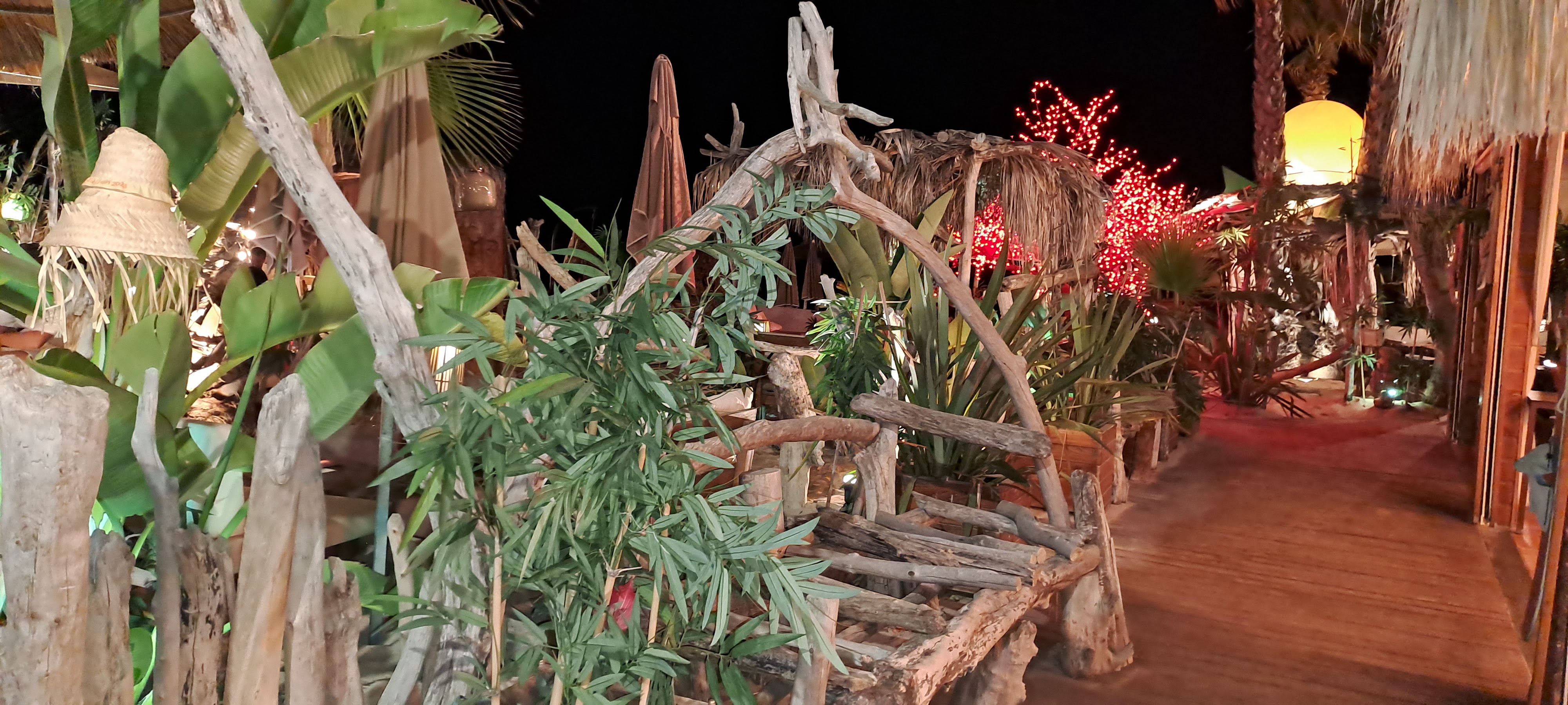 Magnifique endroit pour boire et manger... sur la plage . La déco en bois,cordes... Superbe