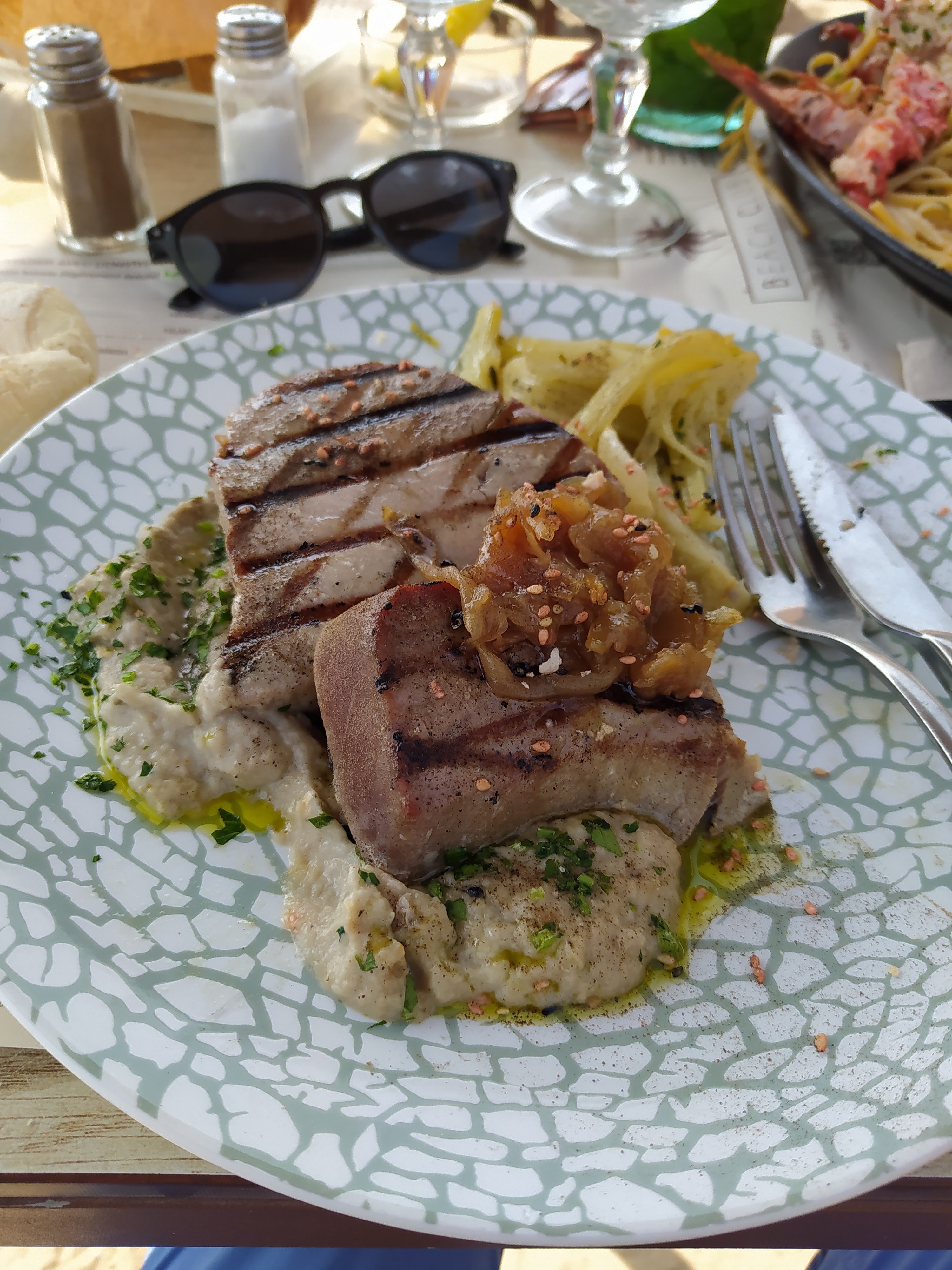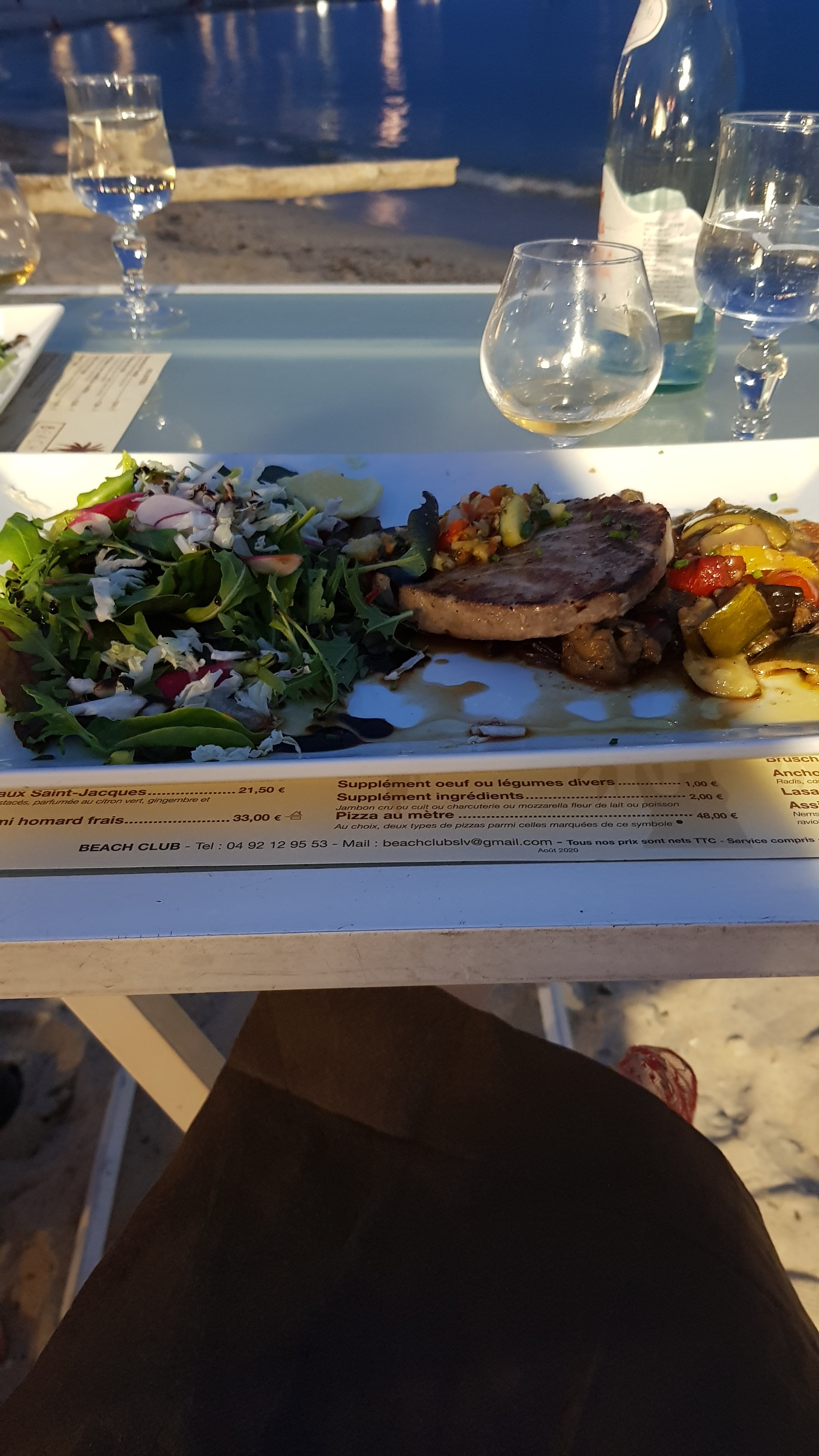 Cadre très agréable, les pieds dans le sable, sur la plage. Très bon mi cuit de thon. Il manque un accompagnement non prévu sauf supplément. Linguines au homard très bonnes mais presque froides. Service aimable et professionnel.