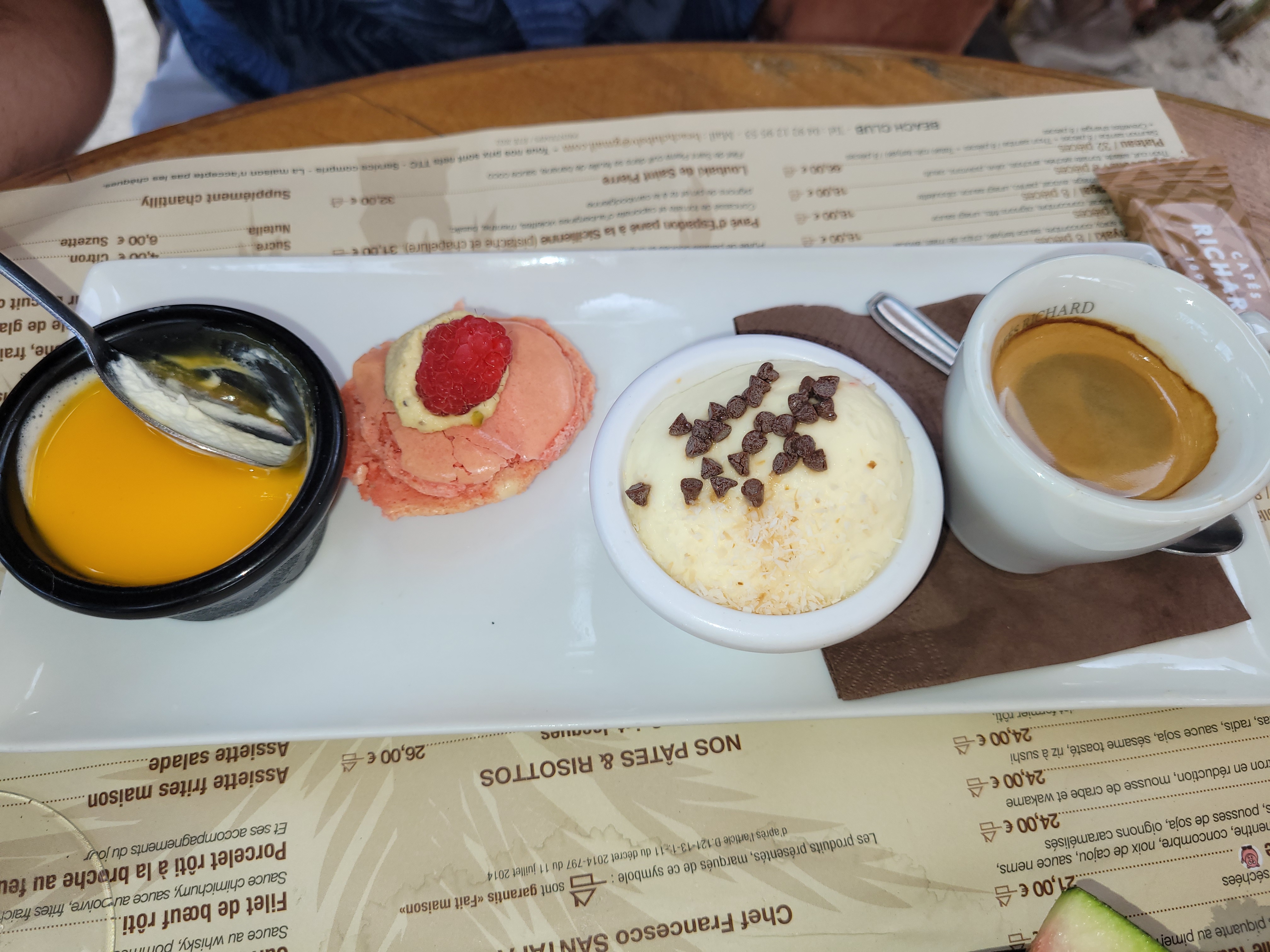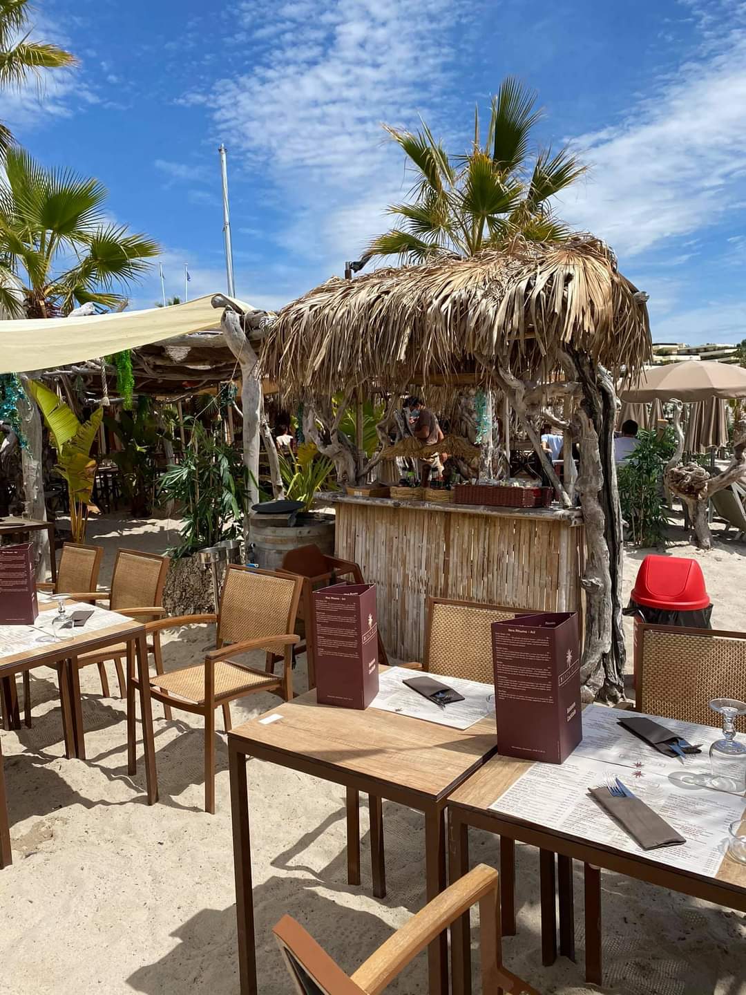 Cadre agréable, pieds dans le sable, mer en face, vols des avions, personnel sympathique. Aller pour boire 1 verre mais pas pour y manger, plats pas terrible... seulement le dessert était passable
