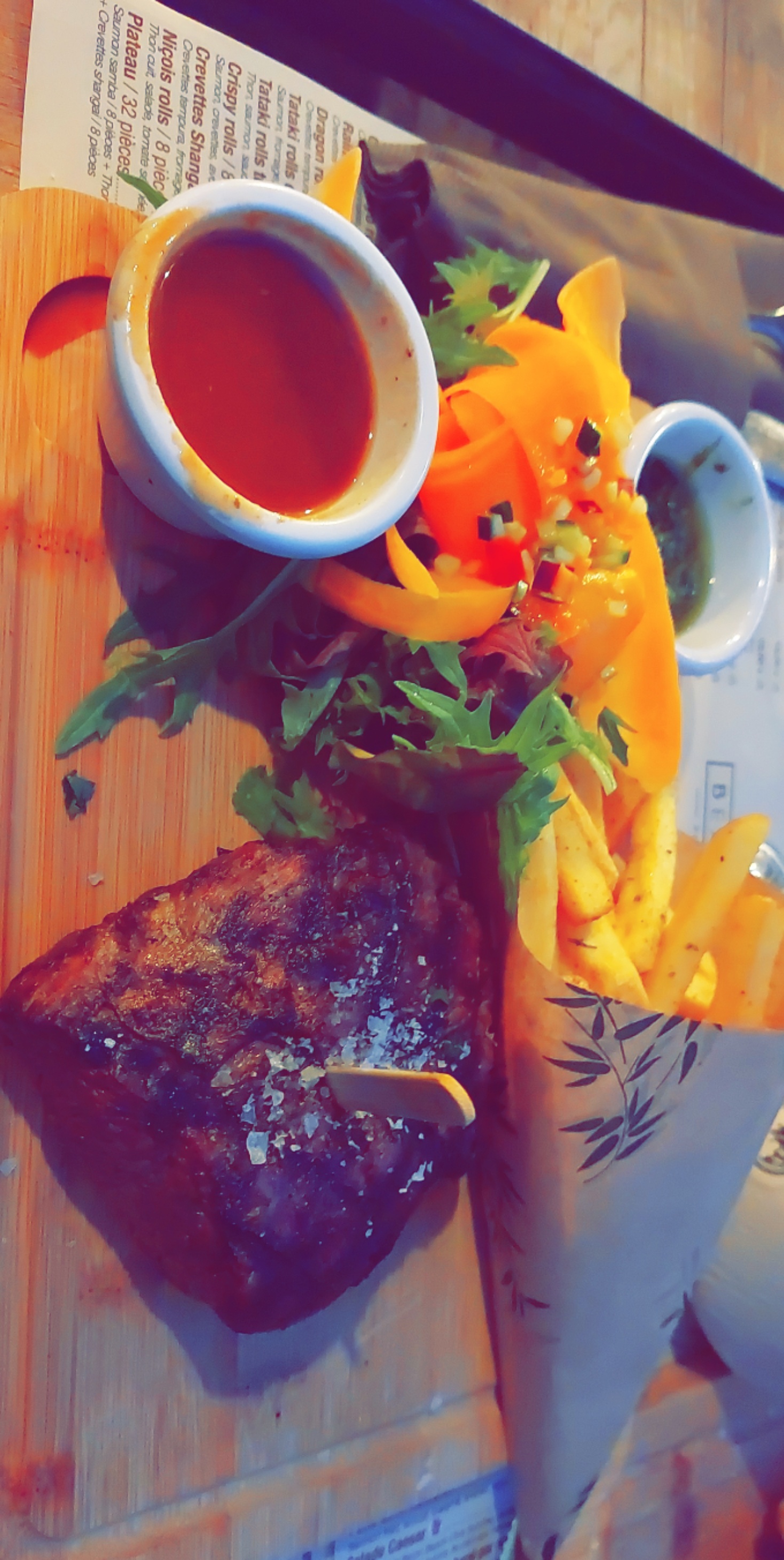 Trop déçu par mon plat Tataki de bœuf trop nerveux frites inmangeable Je l'ai dit au serveure qui a était le dire au patron. J'aurais aimé avoir un geste commerciale, et bien rien du tout. car ce plat était à 24 € je trouve ça très cher J'avais l habitude d'y allé Je ni retournerais pas malgré le cadre super