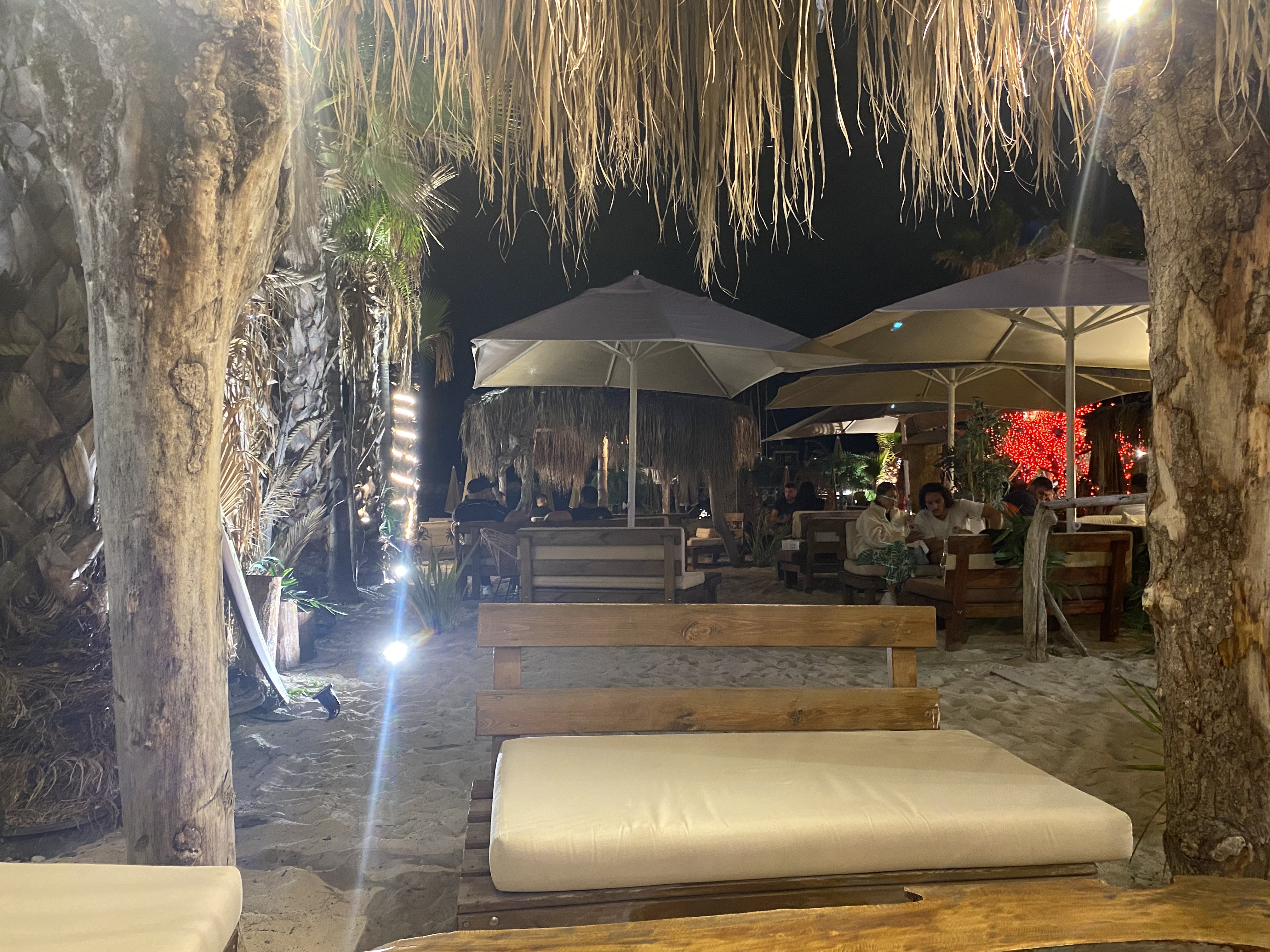 Super endroit pour prendre un verre le soir ou manger. En plein sur la plage. Une déco très exotique qui nous fait voyager. Des serveurs très aimables. Vous pouvez y aller avec des amis ou même avec des enfants sans problème.