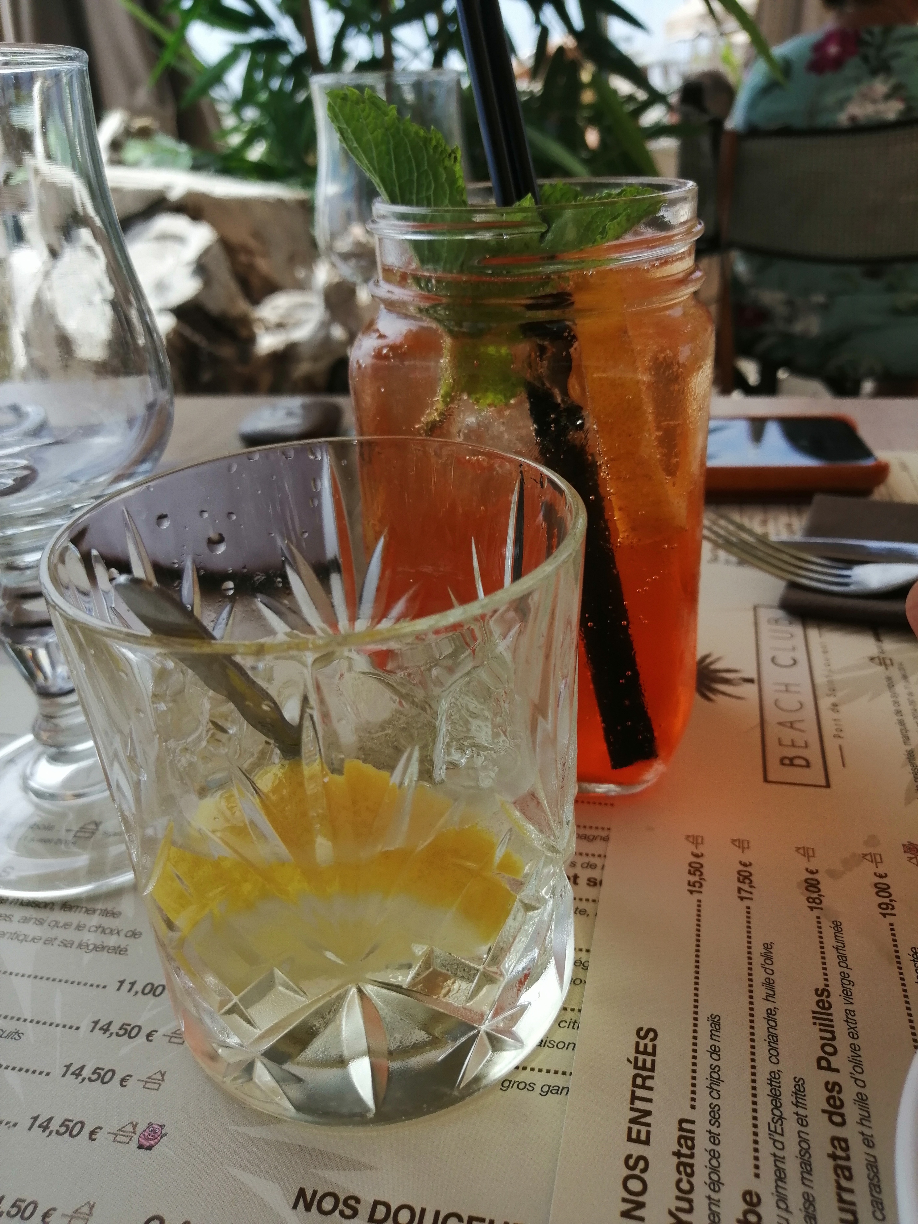 👎🏻a éviter ⛔️deux gin tonic sans gin😅 dans des verres à eau😬pour 26E‼️insipides mais… avec beaucoup de rondelles de citron 😵💫le tout face à des plateaux desservis pleins de verres et assiettes sales 😬et quand au décor … la table face à la mer c’est pour les VIP⛔️‼️👋🏻