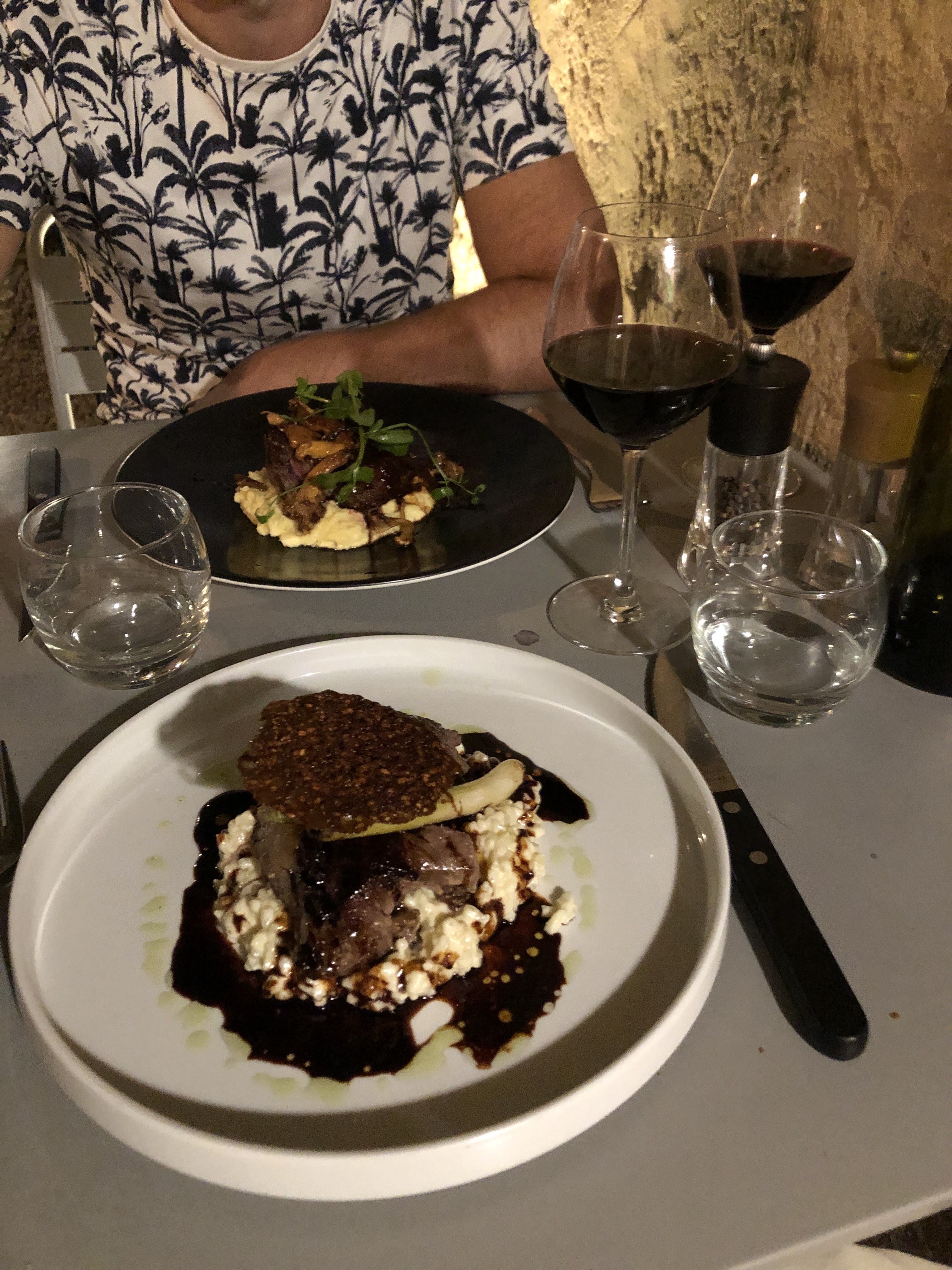 Tombés sur la devanture principale au hasard de notre balade dans les ruelles, la carte et la mention « service dans le jardin » nous interpelle… Quelle découverte ! Nous réservons pour le soir même, enchantés par le lieu ! La cuisine sera à la hauteur de l’ambiance chaleureuse du resto… bons produits avec du goût, cuisson respectée, une splendide carte de vin (logique vu le nom !) servi à température idéale… Même le pain était délicieux, rustique, craquant, une mie parfumée… Ça se fait pas trop mais tant pis on l’a dévoré !! Un charme absolu, un resto romantique comme on en voudrait de partout ! Merci pour cette soirée !