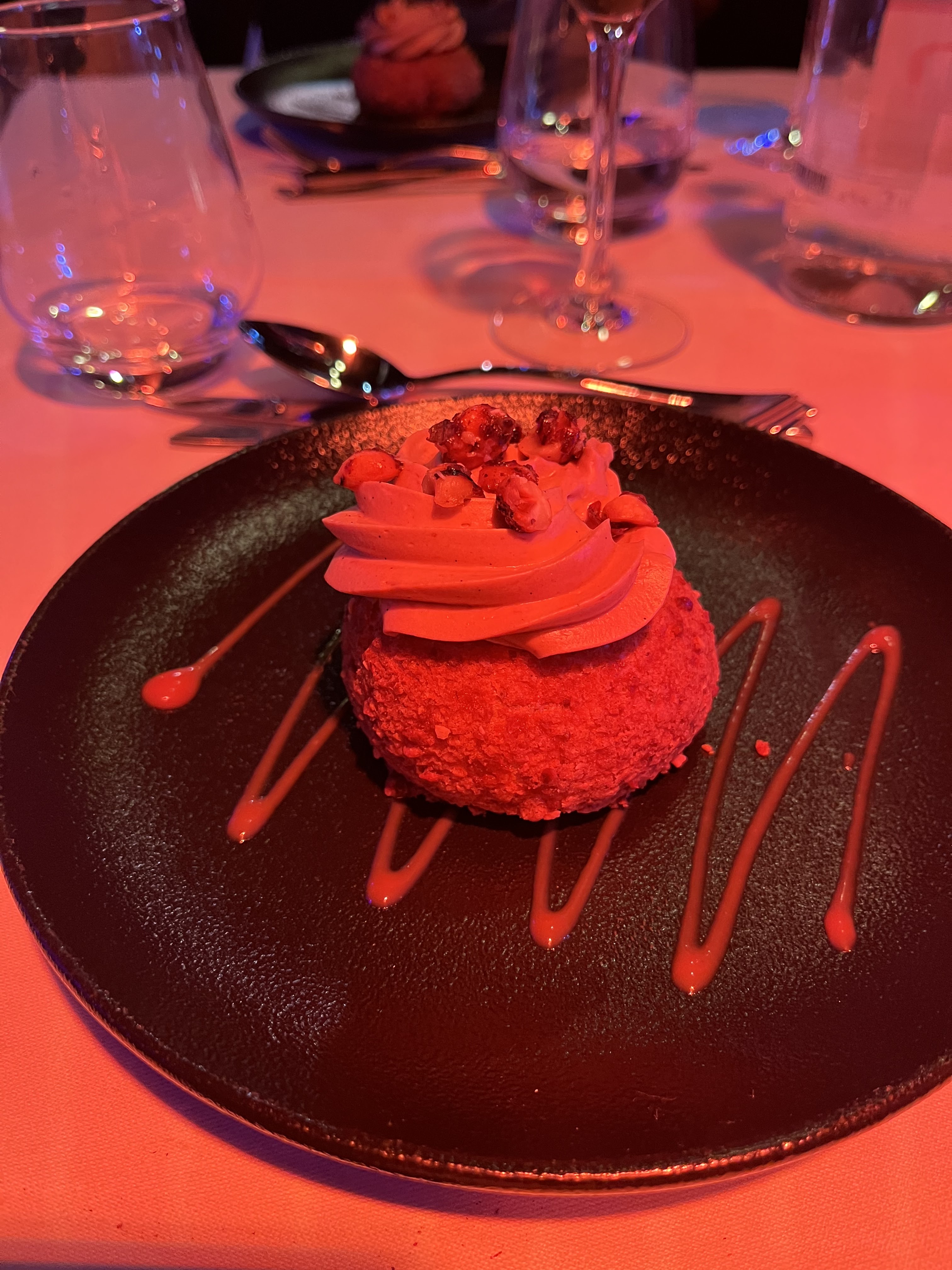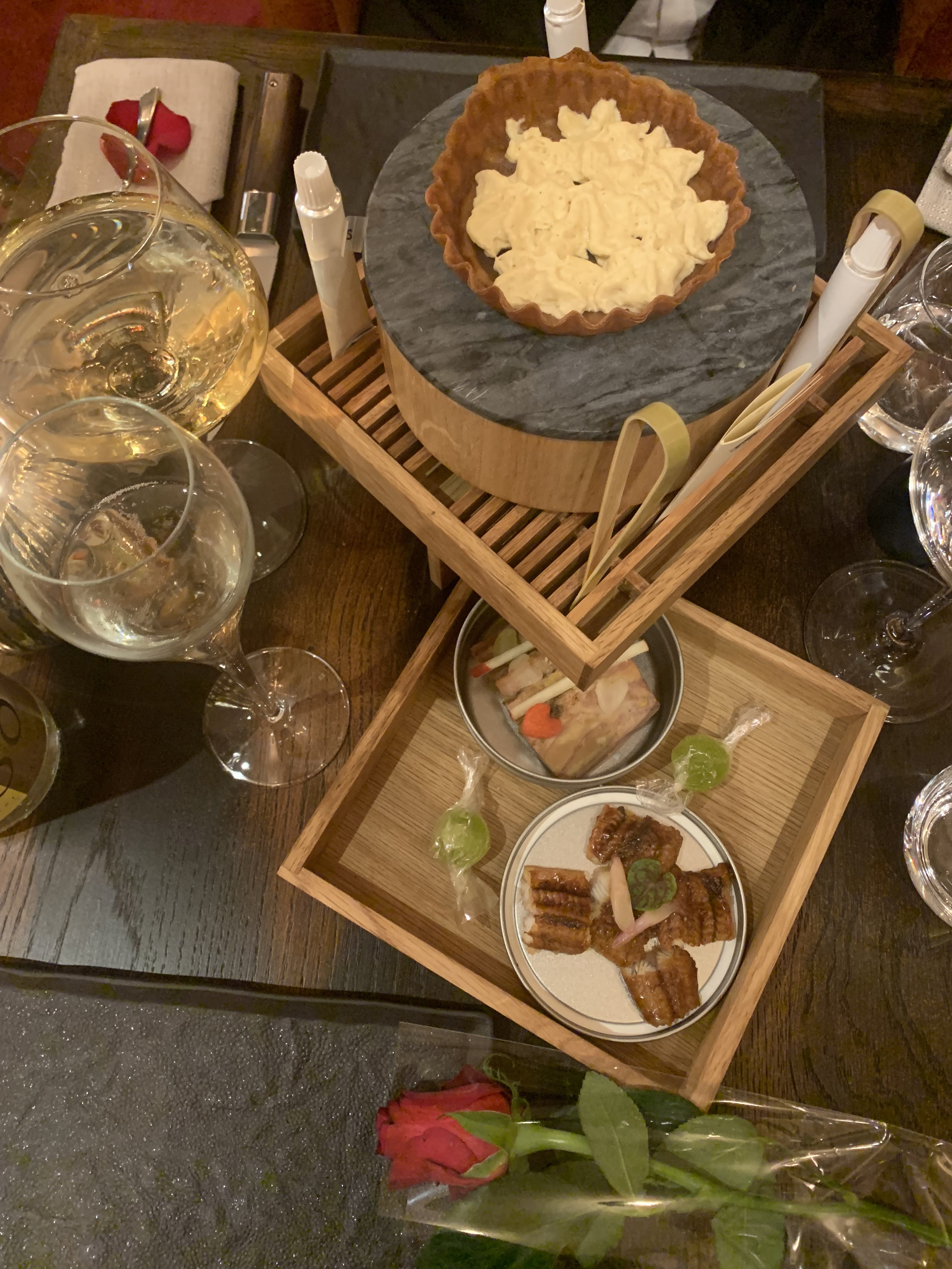 Dîner en tête à tête, dans un restaurant digne des plus grands. L ensemble des serveurs sont au petit soin , une très belle carte, et lorsqu’on a les moyens, on ressort repu pour 10 j