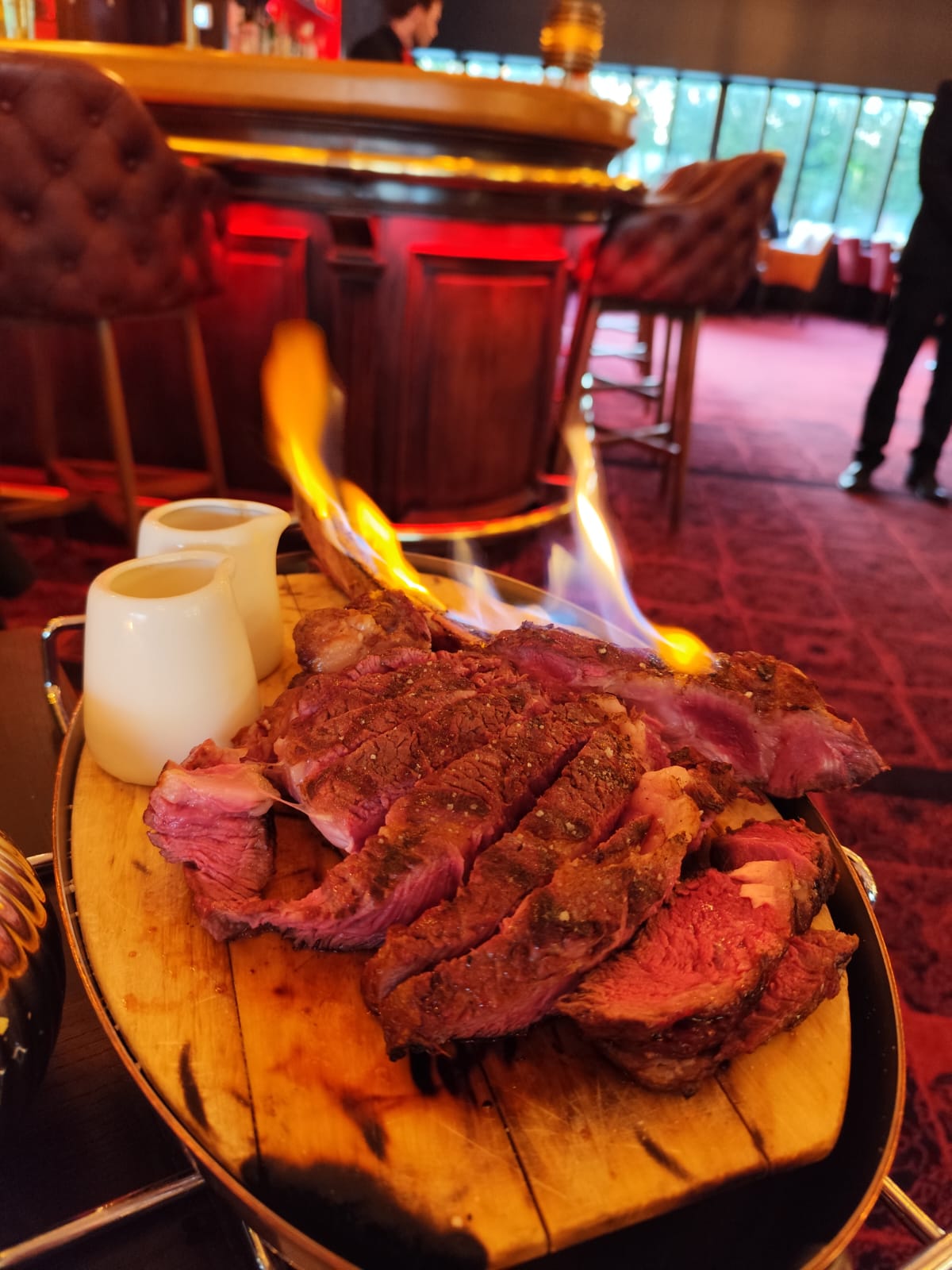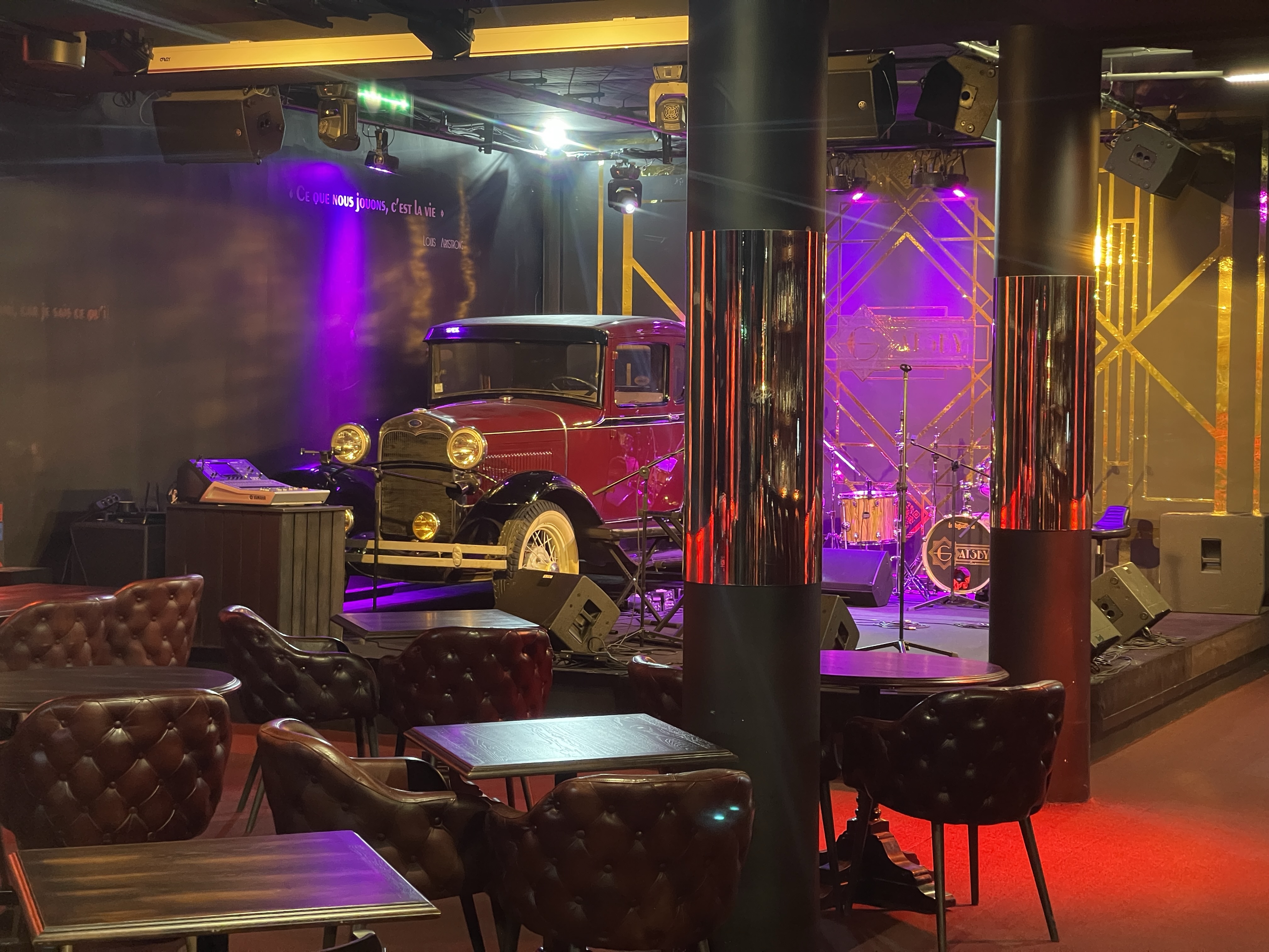 Je me suis rendu sur place avec un ami de longue date. Nous avons mangé une côte de bœuf « Wagyu » d’exception. Le service est très agréable et le cadre également. Le thème style « prohibition » nous plonge dans un film des années 1920 surtout avec la voiture de Capone exposée sur la scène du Gatsby. À refaire au plus vite.