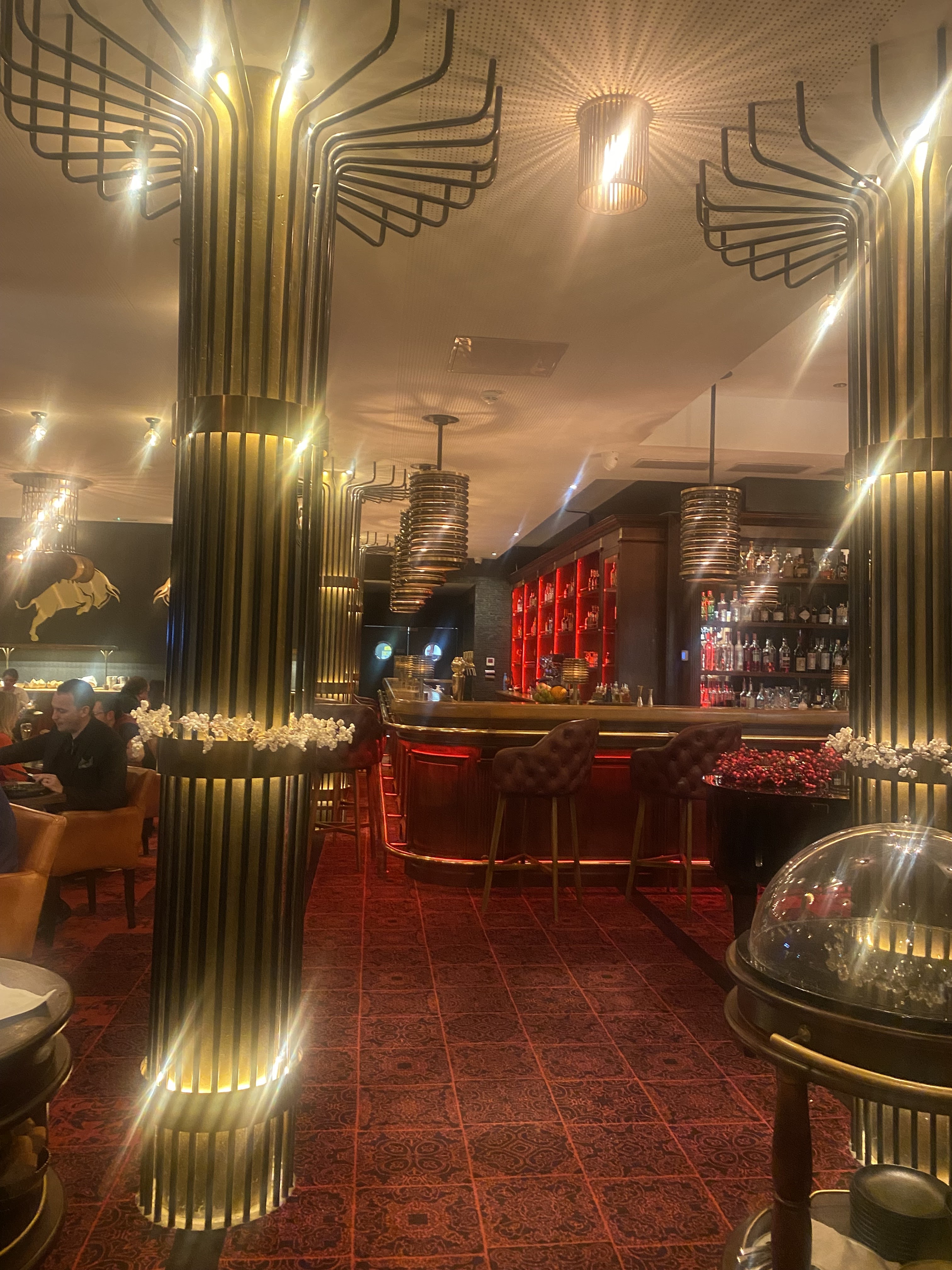 Bel endroit, pianiste au restaurant au top et excellent groupe au bar, qui sait mettre l’ambiance. Bravo. Équipes serviables mais j’ai trouvé un déséquilibre entre certains très souriants, avenant et aux petits soins vs quelques autres « pas tant que ça » ce qui marquait vraiment la différence. Mais rien de dramatique. En revanche, très déçue de la carte cocktails du restaurant. En effet, celle ci est encore la carte hiver 2022-2023. Nous sommes mi avril ! Résultat : nous avons pris 2 verres de vins car nous n’étions nullement tentés par la thématique winter/Christmas. Tout le reste était bien mais nous restons sur cette note, dommage.