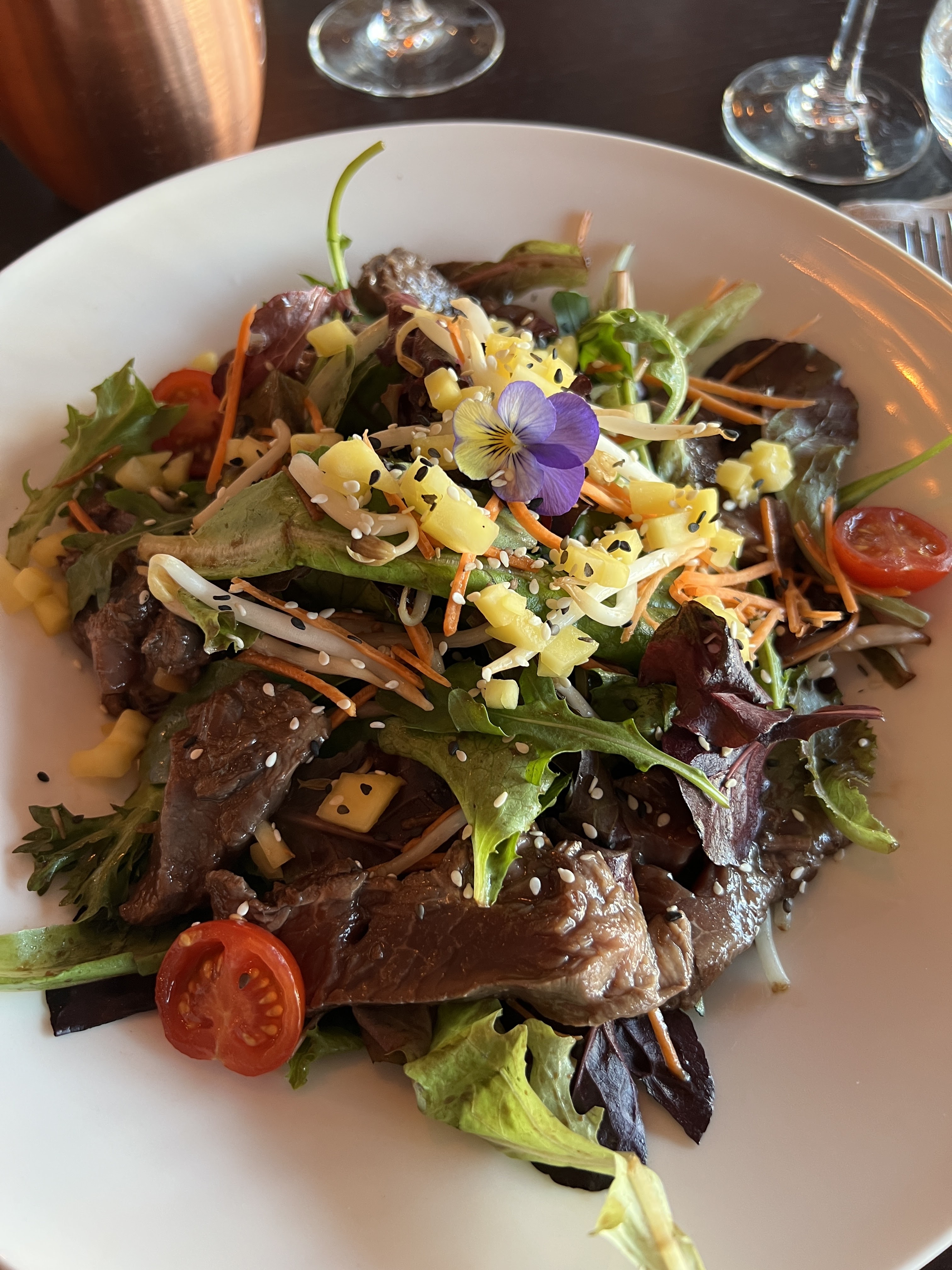 Vraiment topissime 🤩🤩🤩🤩 Nous avons passé un excellent moment dans un cadre magnifique. Des plats magnifiquement présentés et des viandes d'exception. Personnel aux petits soins et très agréables.