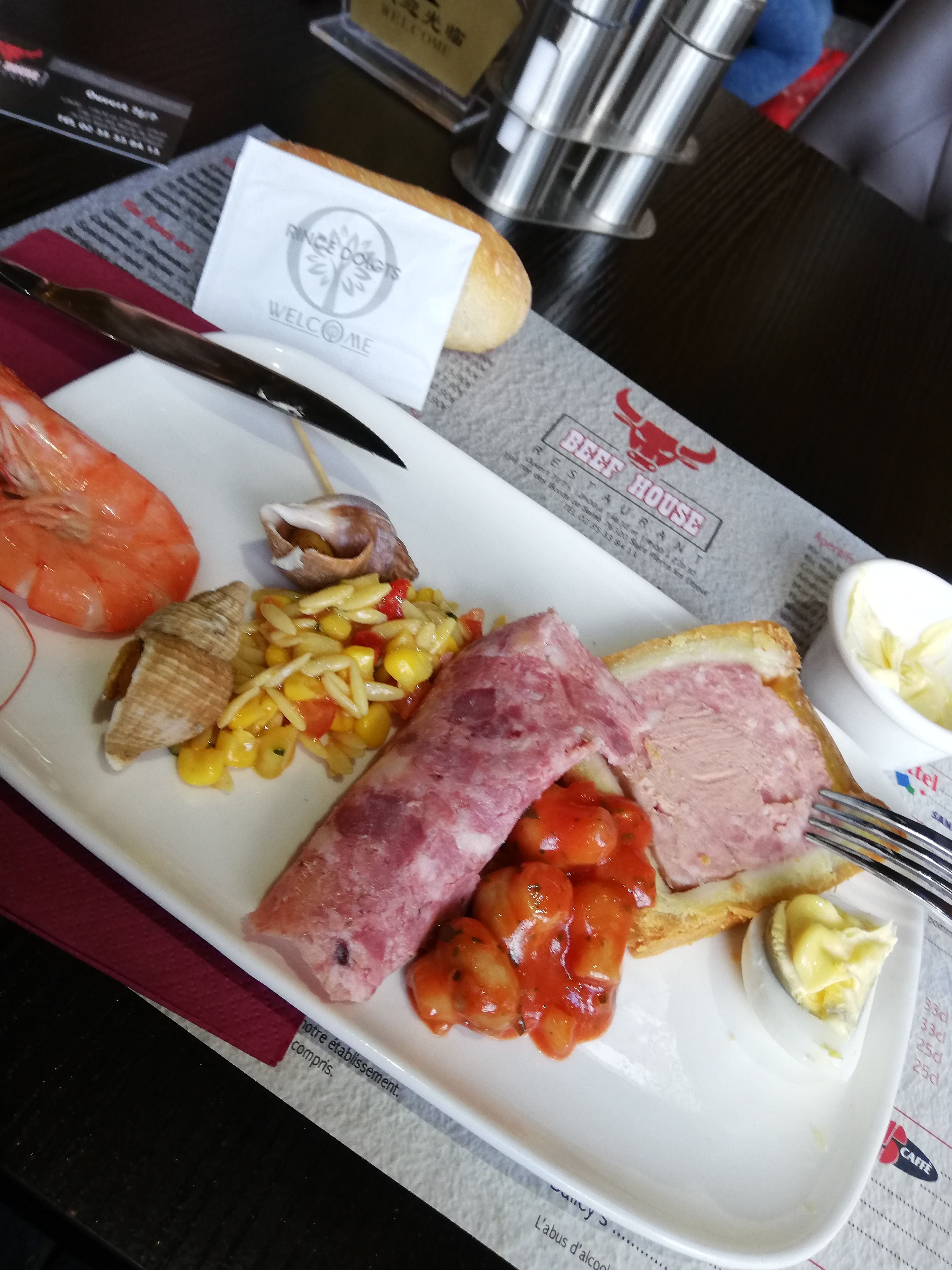 Beau grand restaurant qui préfère la quantité à la qualité. Beaux desserts mis en avant, petits très colorés mais industriels. Grill mal organisé, cuisson pas toujours respectée (demandé saignant, reçu bien cuit). De la cuisine variée (des escargots aux nems en passant par les frites) pour tous les goûts.