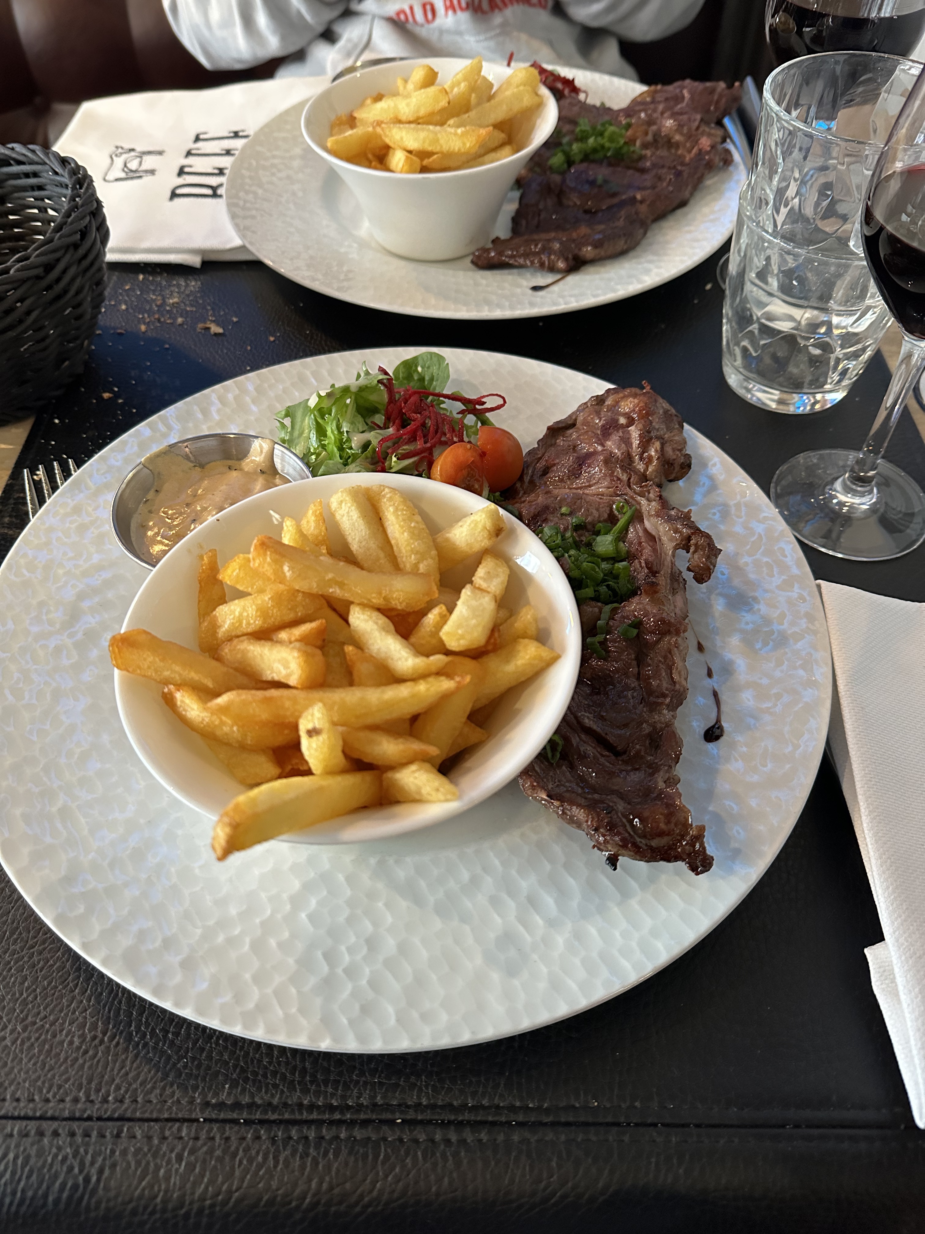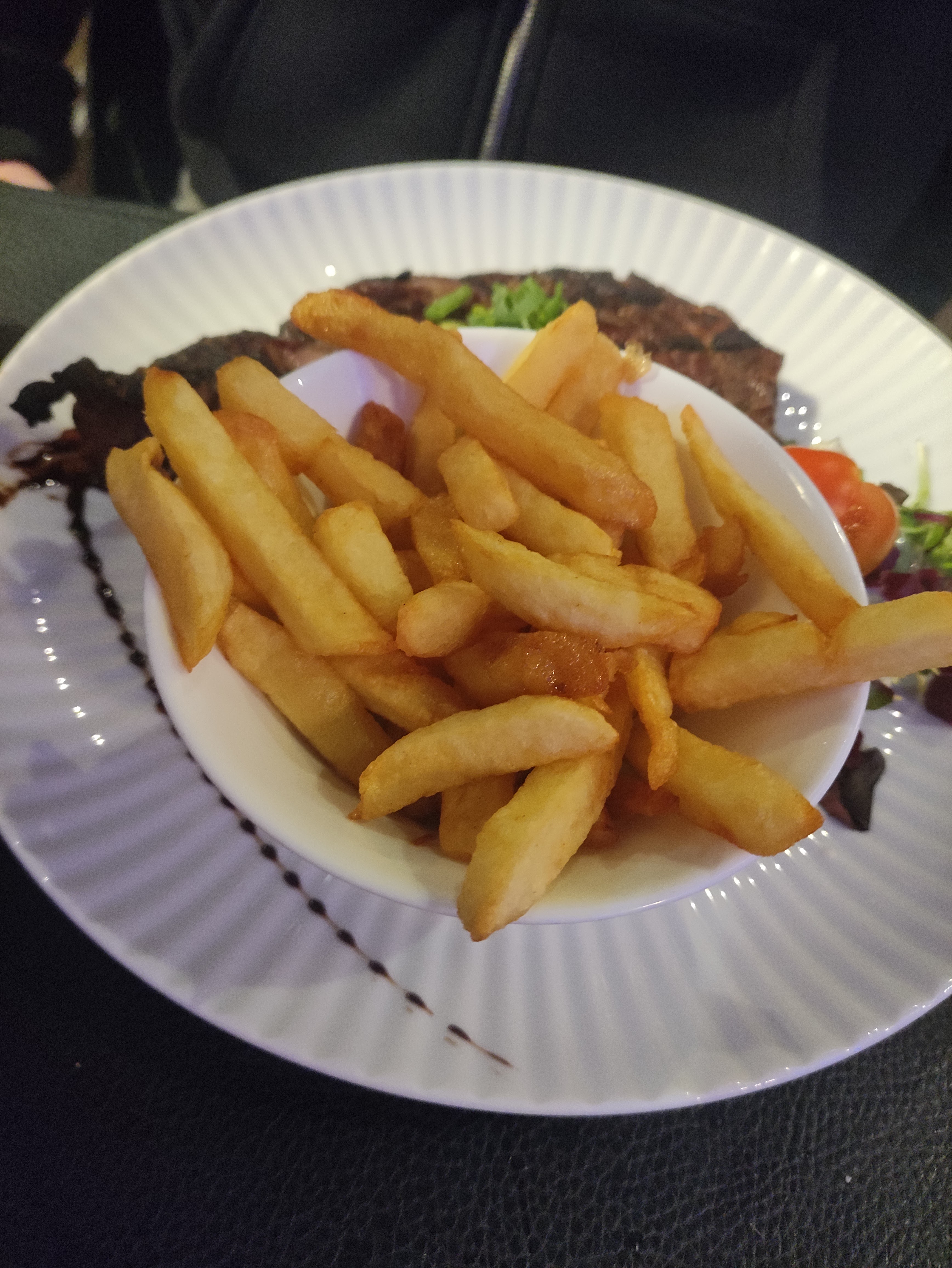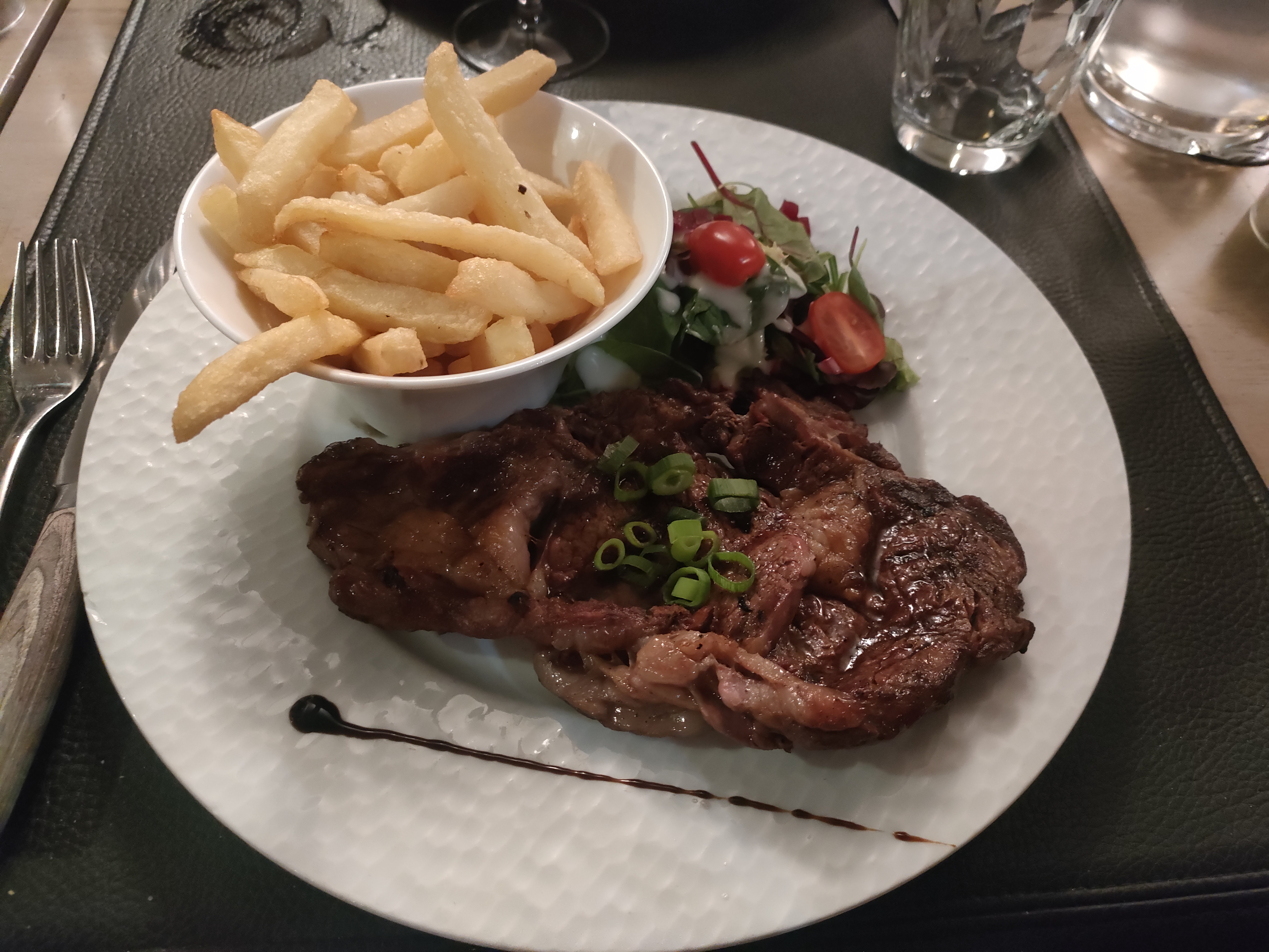 Très bonne cuisson de la côte de bœuf avec une sauce maroille très goûtu le seul petit point noir les frites à mon goût n'était pas assez doré