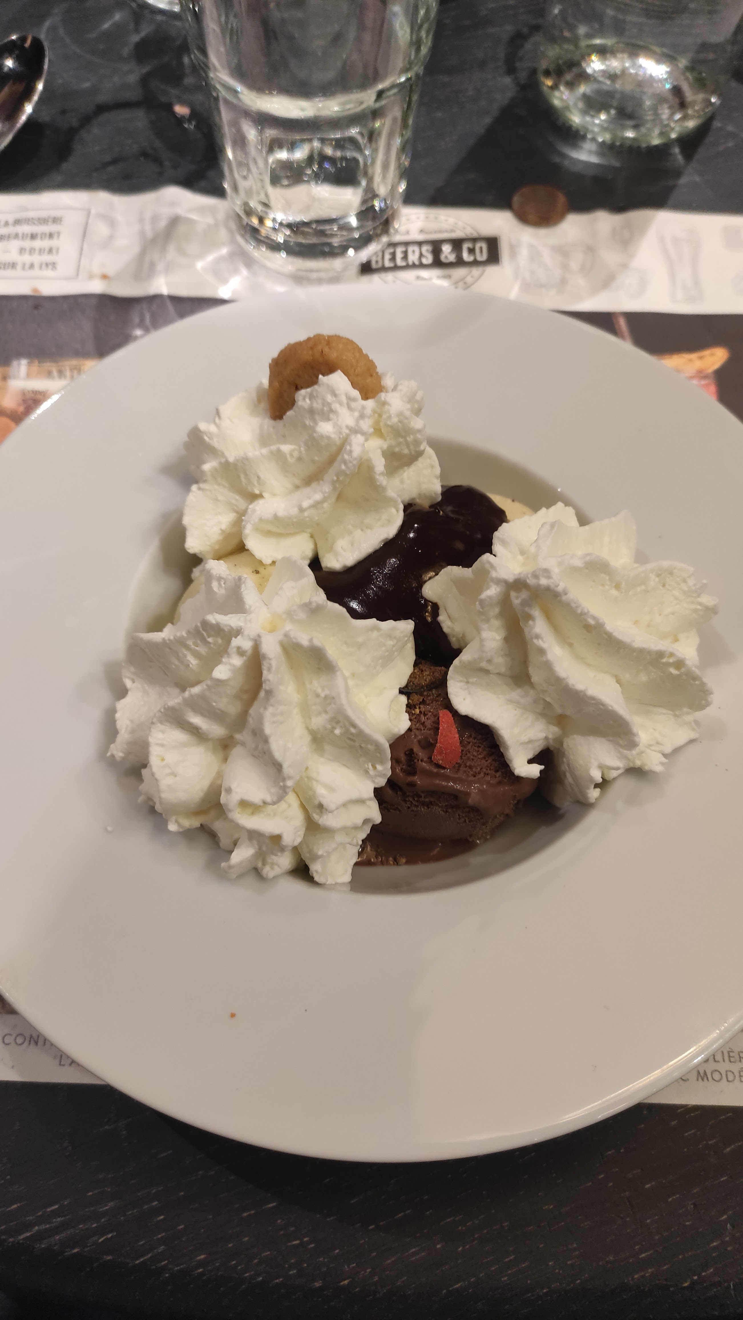 24 février 2024, première sortie à beers and co où nous pensions, mon mari et moi, passer une bonne soirée et nous régaler. 1er hic, beaucoup, beaucoup de monde. On nous place à l'étage, en fond de salle, à côté d'un autre couple et nous passons notre soirée à entendre leur conversation tellement les tables sont proches. Le serveur (Morgan) excellent et avenant. Prise de commande, sans souci. Respect de notre commande. Concernant le plat en lui même, welsh complet, hyper déçue. Mon mari et moi ayant pris la même chose, les 2 étaient brulés, collés au fond du poëlon et de ce fait dur à décoller et à manger. Le dessert: mousse au chocolat pour Mr, café gourmand pour moi, un peu light ( un carré de 1,5 cm sur 1,5 de gateau à la framboise, 1 boule de glace chocolat, 1 spéculoos emballé et un grand shooter de yaourt avec coulis de caramel. 1ère et dernière fois beers and co Aire. J'irai voir à Bruay ce qu'il propose. Si même chose, je bannirai beers and co de mes sorties. Marjorie Gautron.
