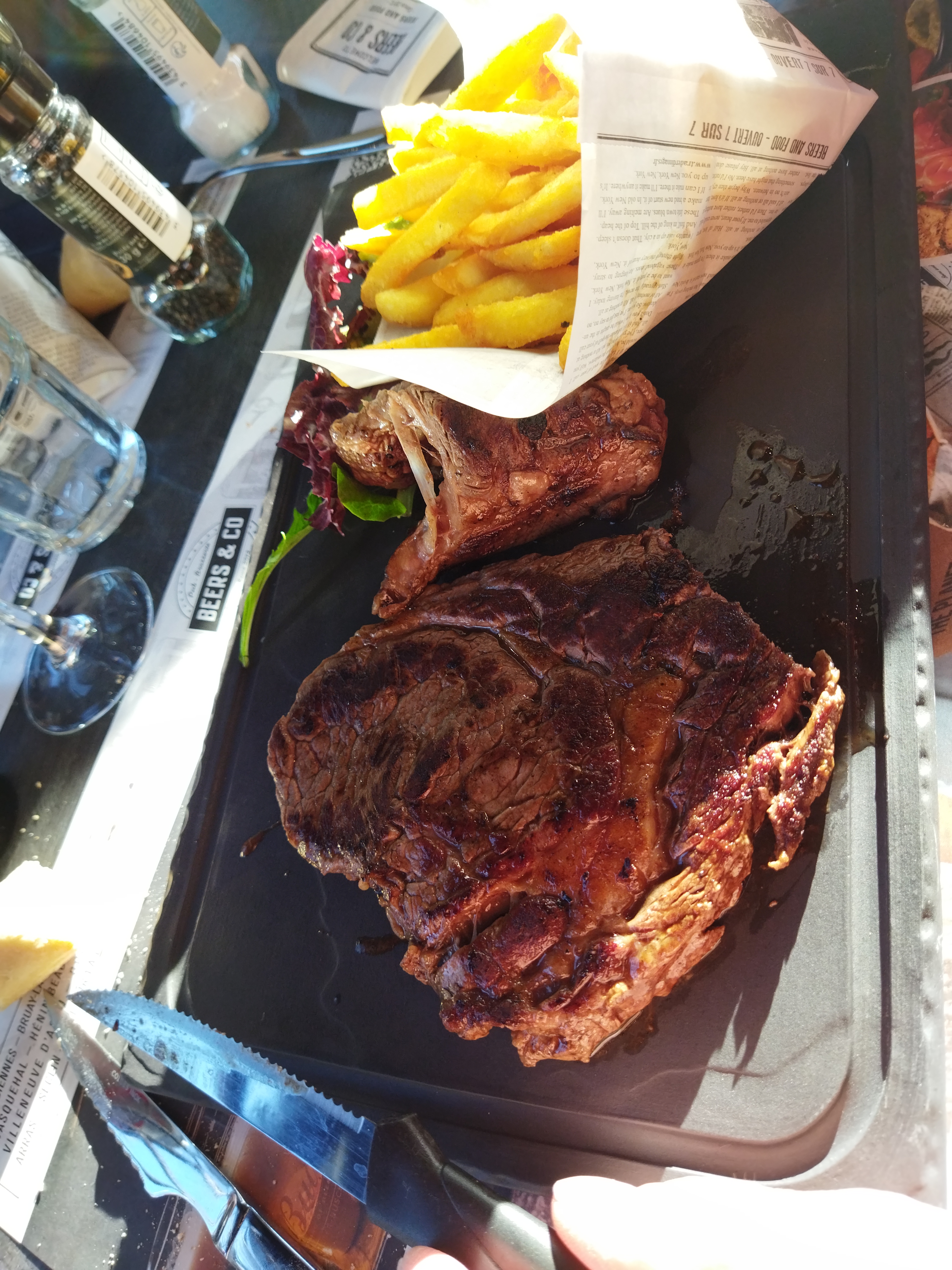 Suggestion du jour côte à l os indisponible alors que c'est écrit, steak haché de ma fille demandé saignant servi à point voir bien cuit déçu
