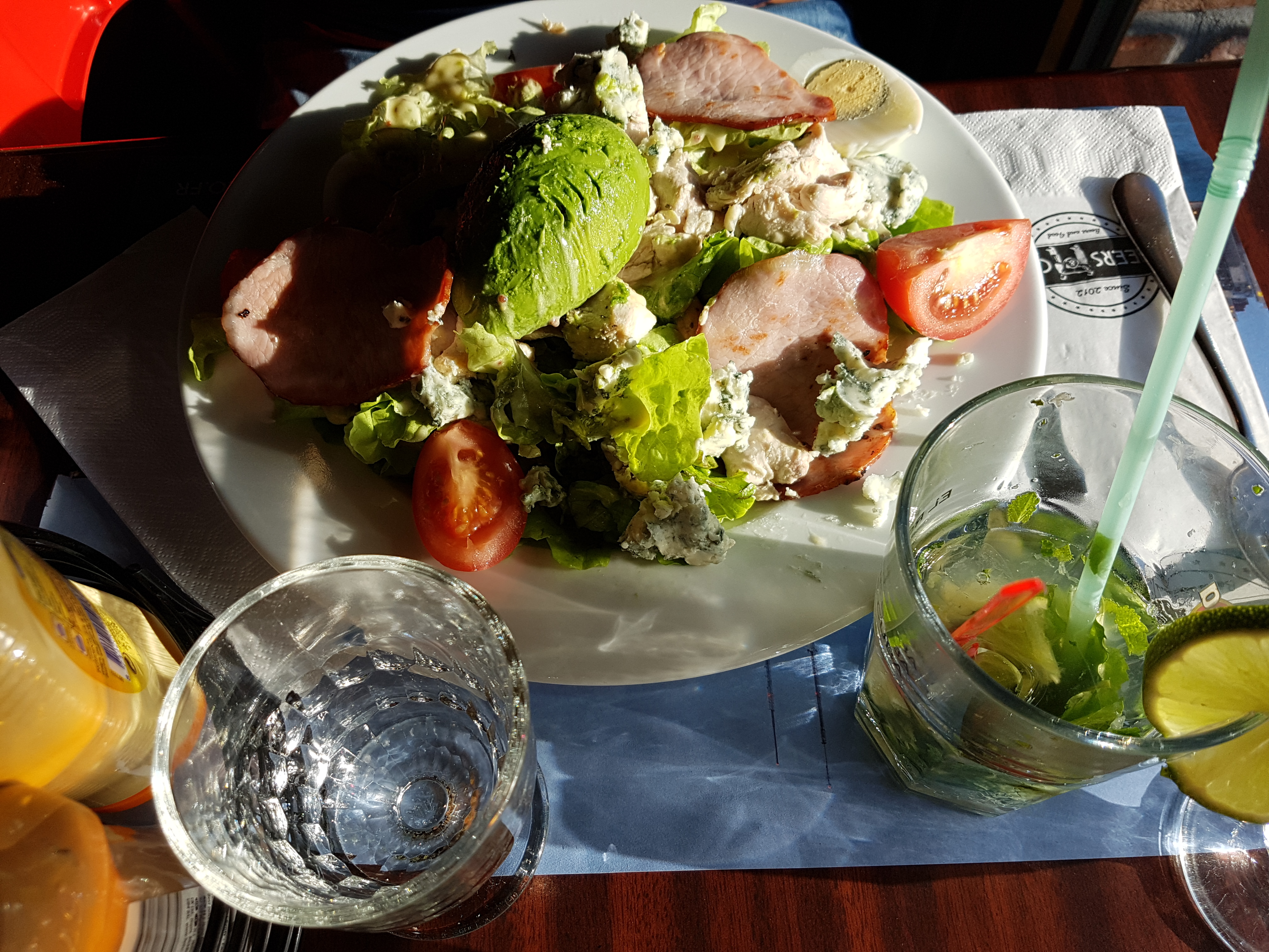 Repas très moyen Salade avec quelques feuilles pourries Dessert non conforme à la description