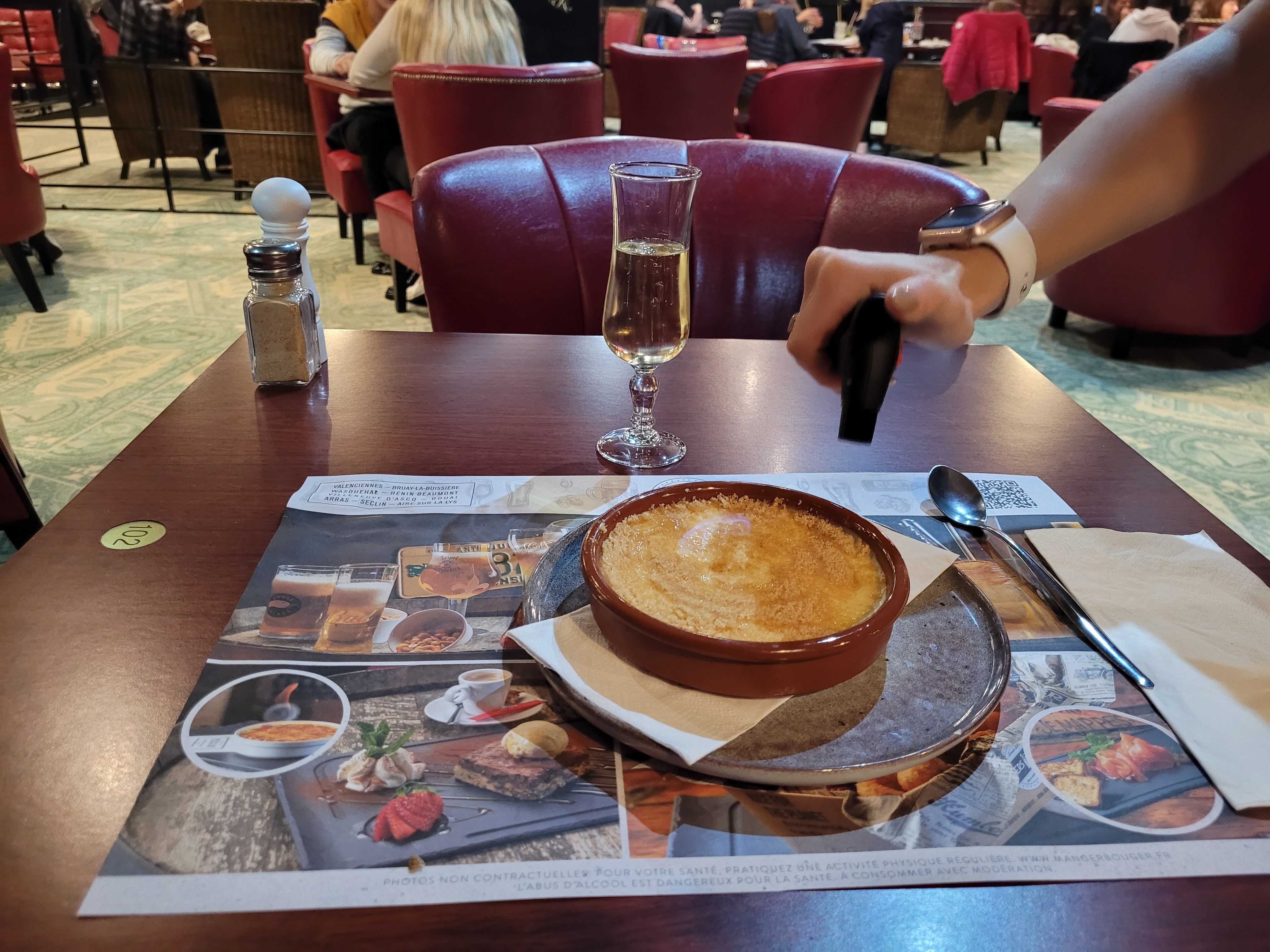 Pas terrible du tout, plats servis 2min après les apéritifs, plats servis 2 par 2 avec 3/4min d'attente entre eux, et la qualité de la nourriture n'est pas bonne du tout, carbonnade flamande fade, viande pas tendre, aucun goût de pain d'épice, pareil pour le poulet aux maroilles.. On cherche encore le goût du fromage