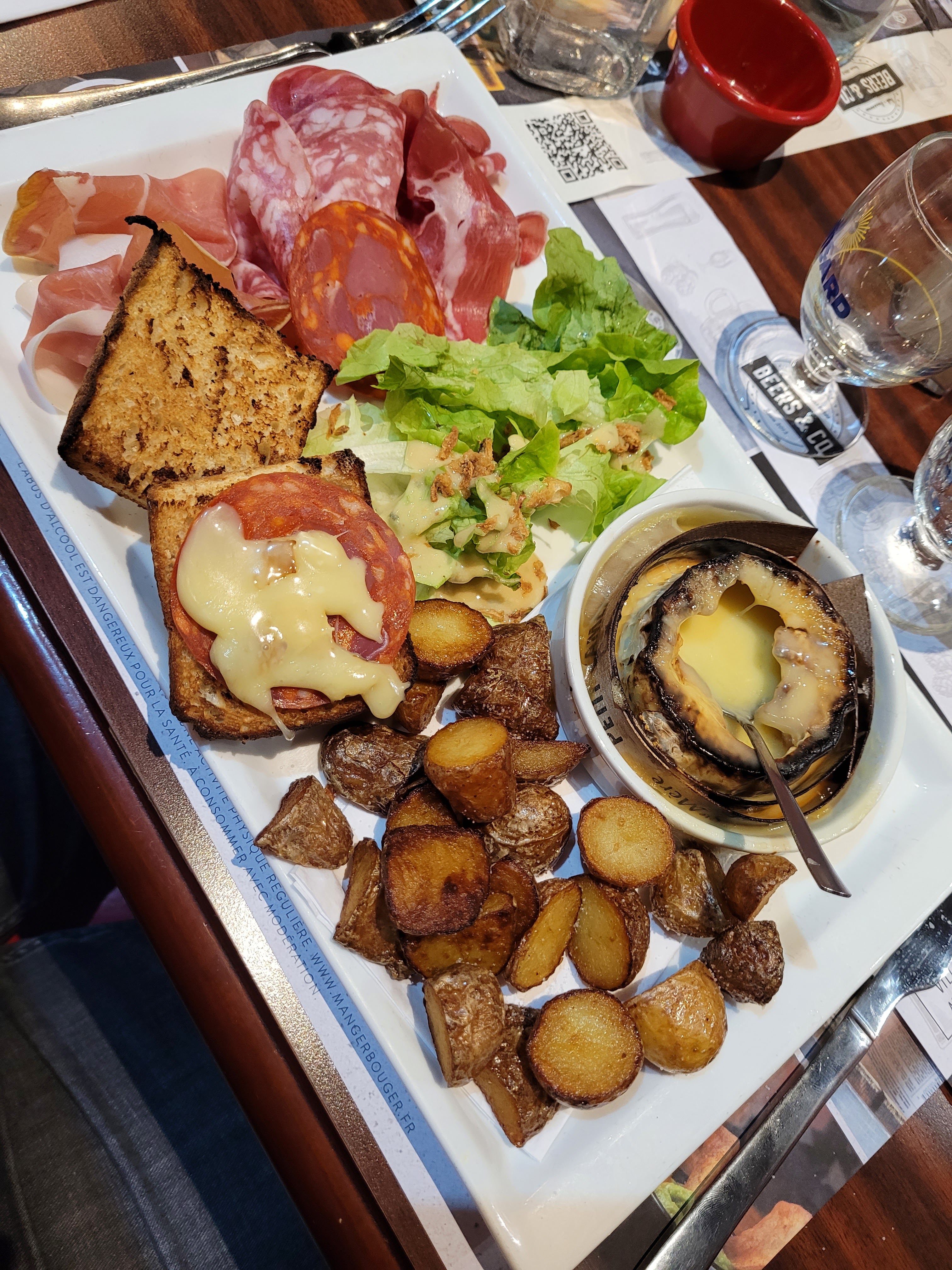 Je suis venue ici une fois pour le Camembert pané il était servie avec charcuterie et pomme de terre au four je m'étais régaler 2 mois plus tard la carte a changer résultats tu te retrouves avec un plus petit Camembert juste avec du thym et du miel sans charcuterie et des pomme de terre juste poêle et tout ça pour le même prix ! c'est un peu du se foutre du monde je suis très déçu des décisions prises par les grosses têtes de cette chaîne de restauration