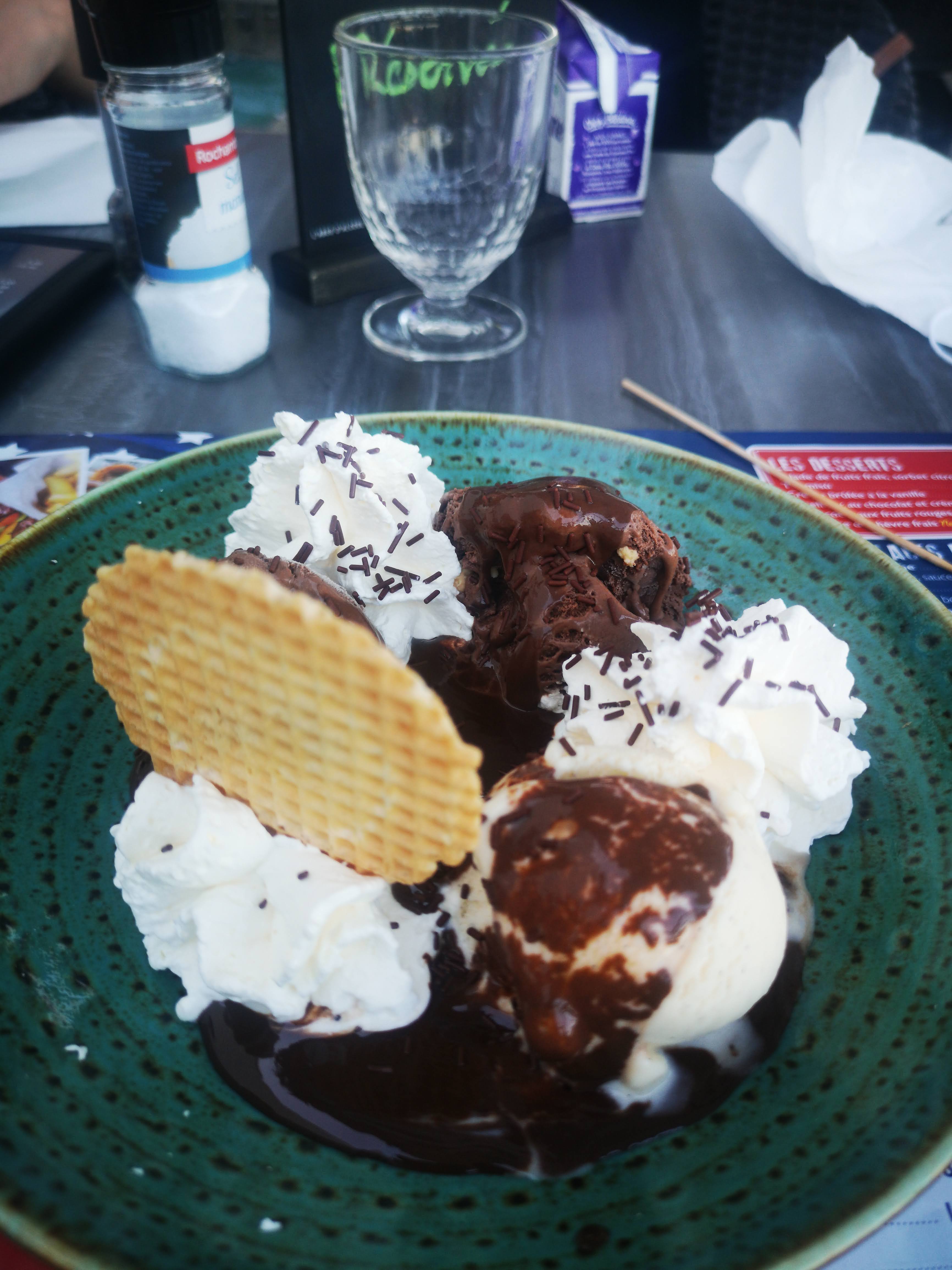 Un peu long à être servis mais très bien ! Les hamburgers de mes convives étaient très fournis. Mes moules étaient bonnes, la serveuse a été accomodante face à une demande. Super. Que dire du dessert ? Enorme ! J'ai commandé une coupe glacée, j'ai eu une assiette pleine de glace + chantilly et coulis :D Je recommande, le ventre bien vide en arrivant :D