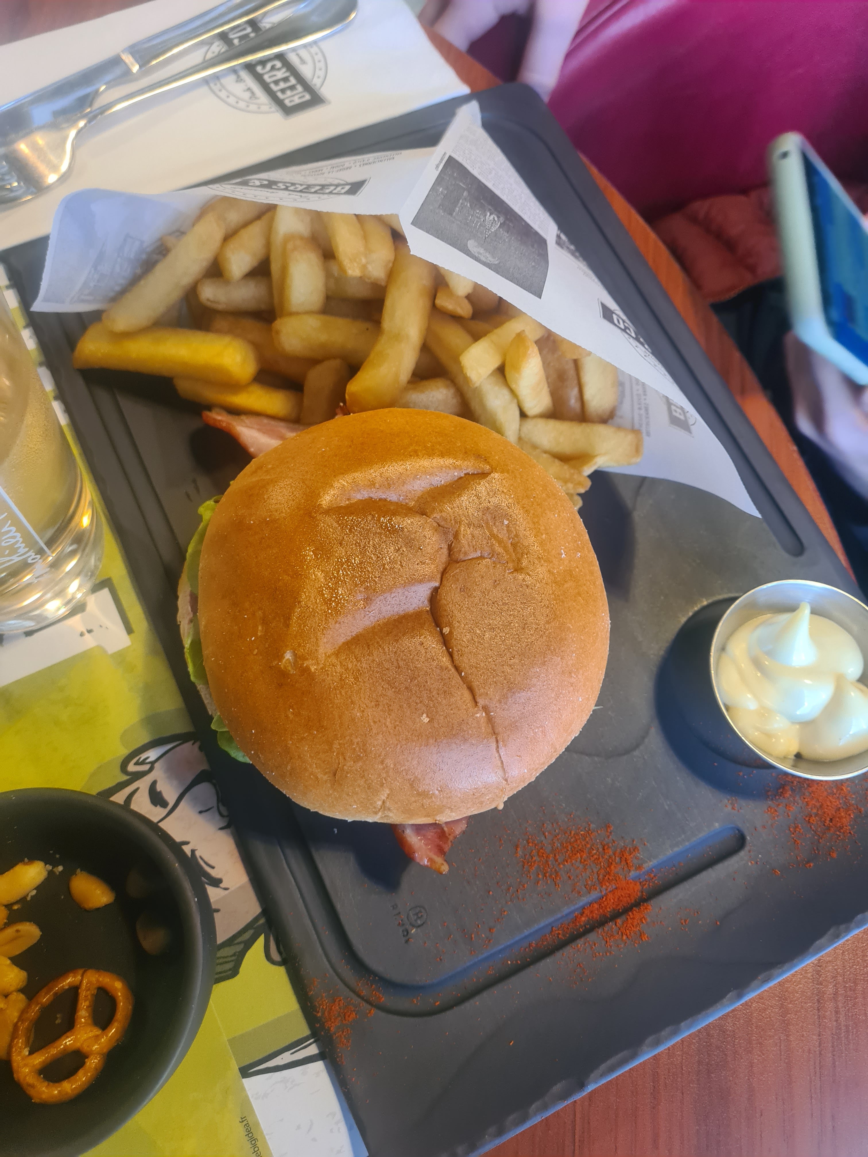 Bonne ambiance dans un cadre agréable Le Burger était bon mais les frites très bas de gamme. Service efficace et agréable