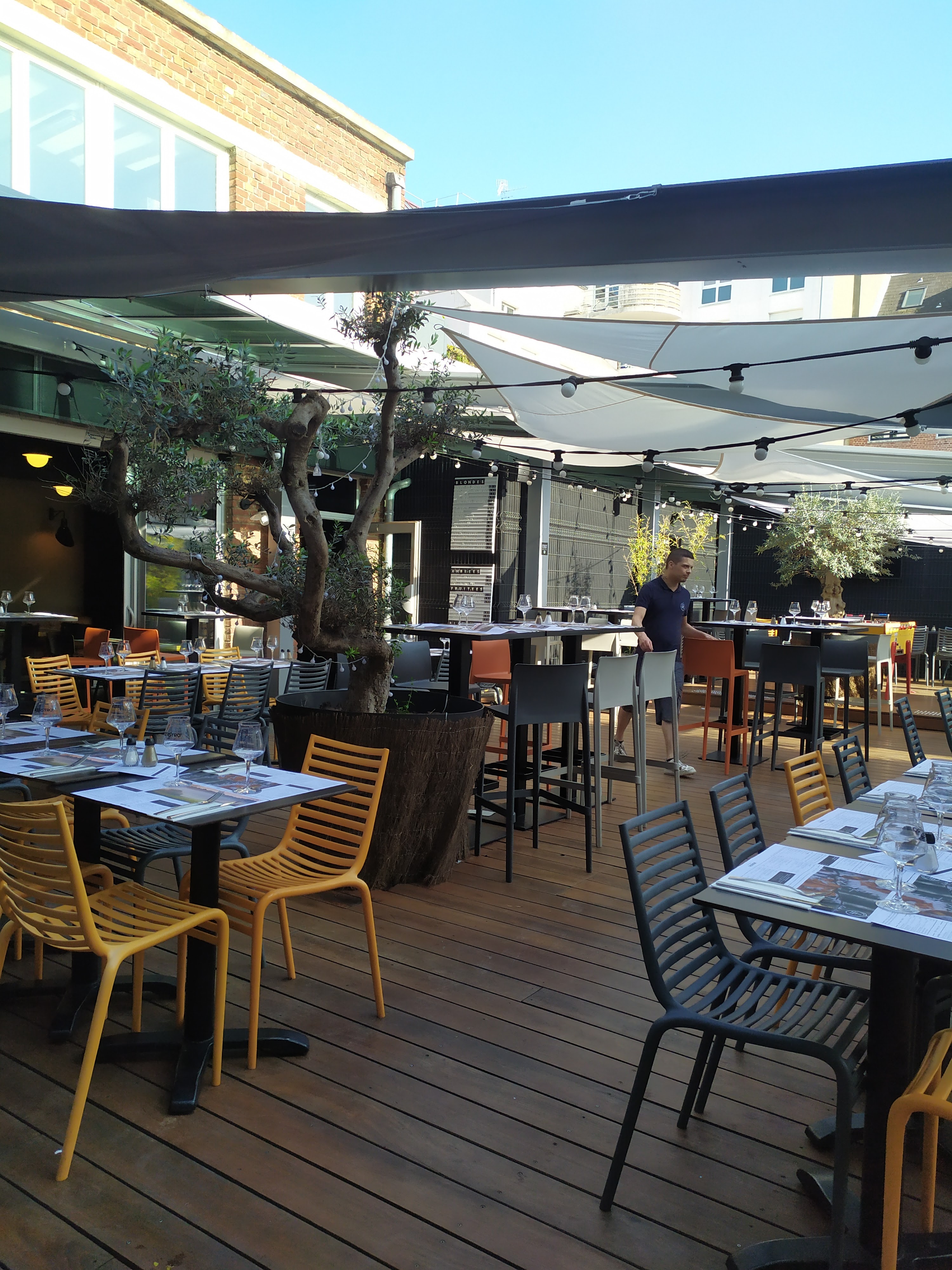 Superbe terrasse où il fait bon déjeuner. La cuisine est bonne, type bistrot. Le service extrêmement agréable.