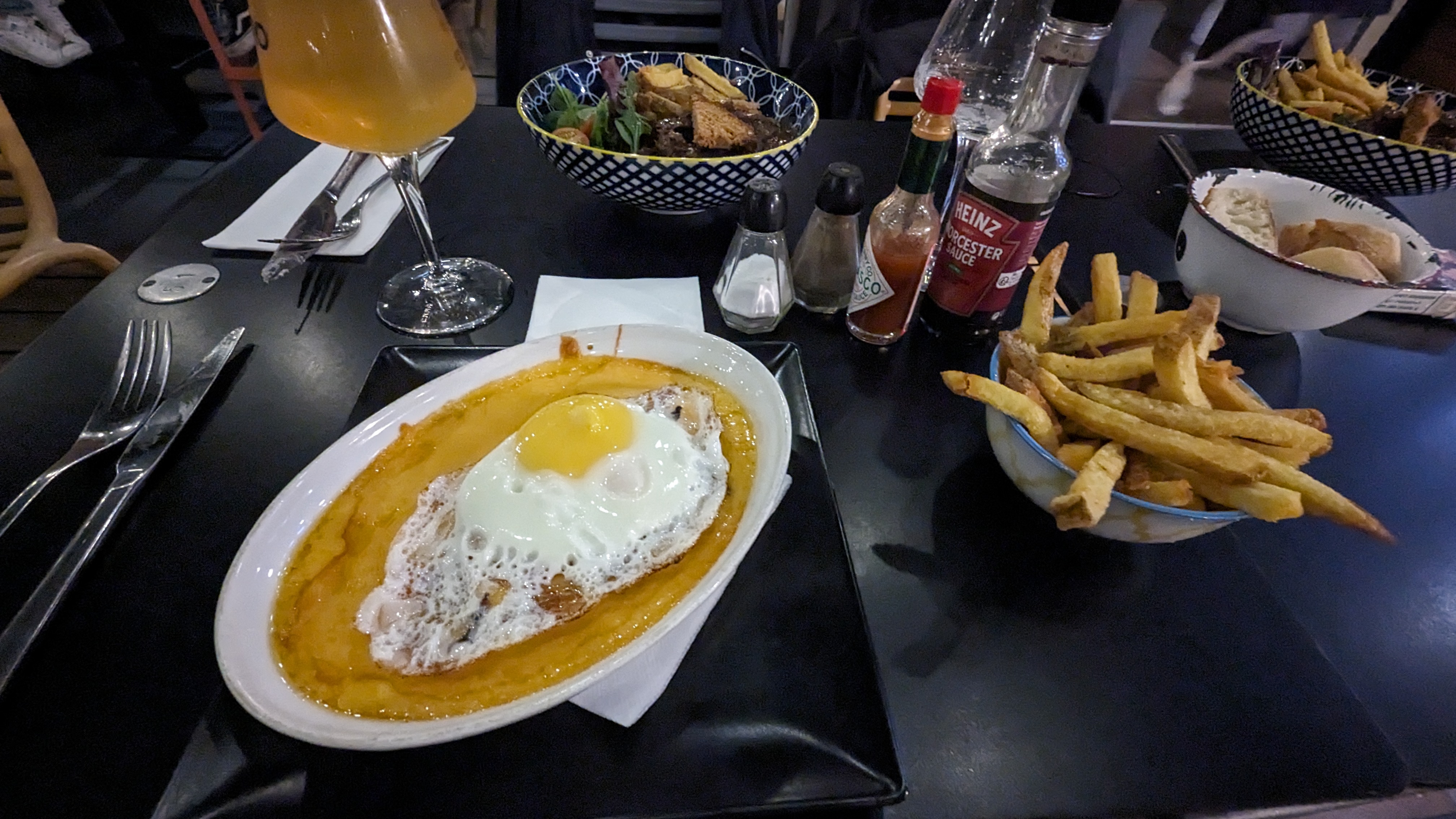 Nous avons adoré cet endroit. La nourriture était excellente, la nourriture de pub, en particulier les frites incroyables et le steak tartare... oh mon Dieu. J'ai une très belle terrasse quand il fait beau et un bel espace couvert mais à moitié dedans, à moitié dehors. Ma seule réserve est que je ne comprends tout simplement pas le concept versez votre propre bière. Verser une bonne pinte est en fait assez délicat et trop facile à foutre. Je ne peux pas m'empêcher de penser que cela fonctionnerait pour n'importe quelle autre boisson, à l'exception de la bière, mais si vous voulez du vin, ils en ont beaucoup et ils vous le serviront même.