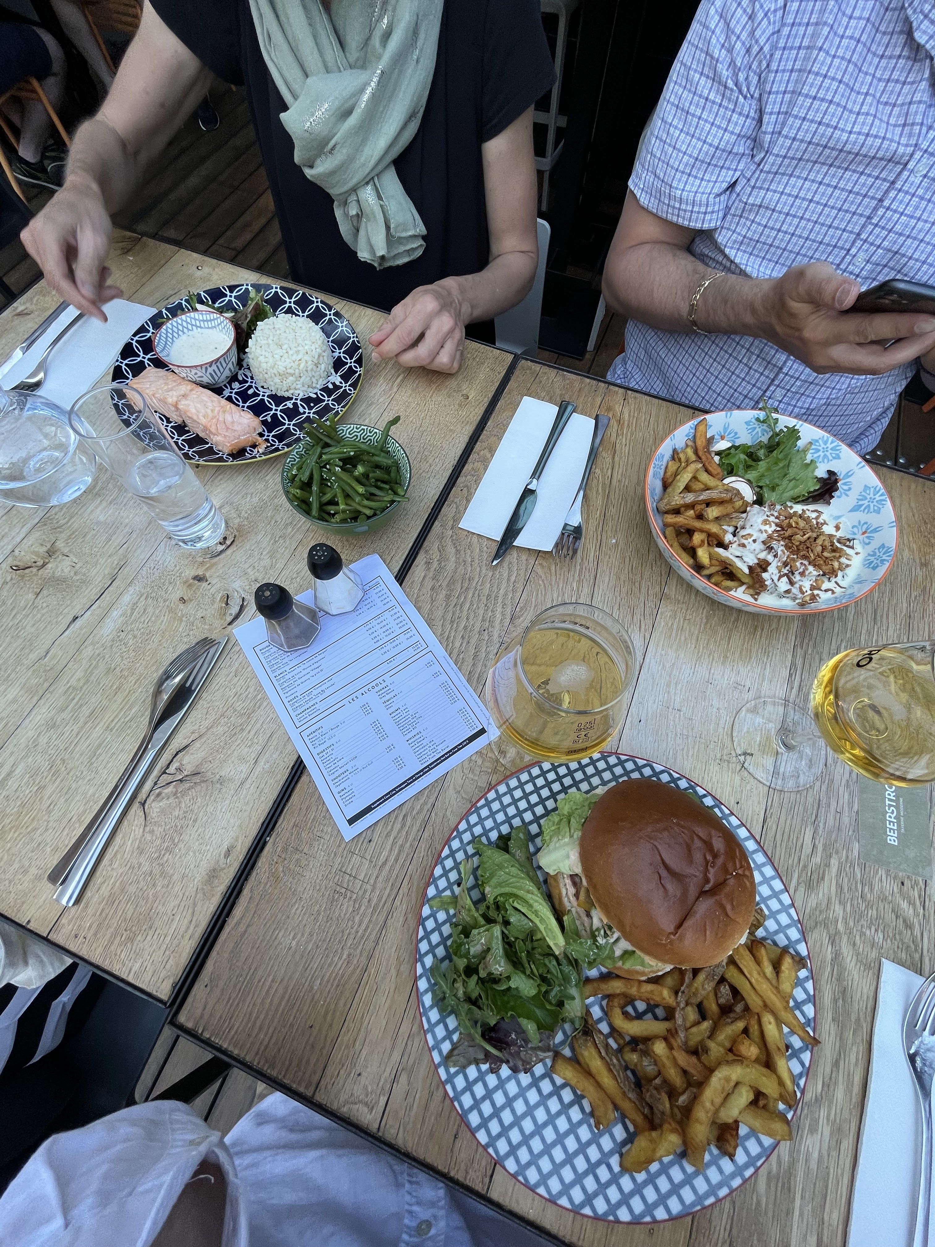 Excellent moment: soleil, terrasse, bonnes bières, frites et Burgers exceptionnels.
