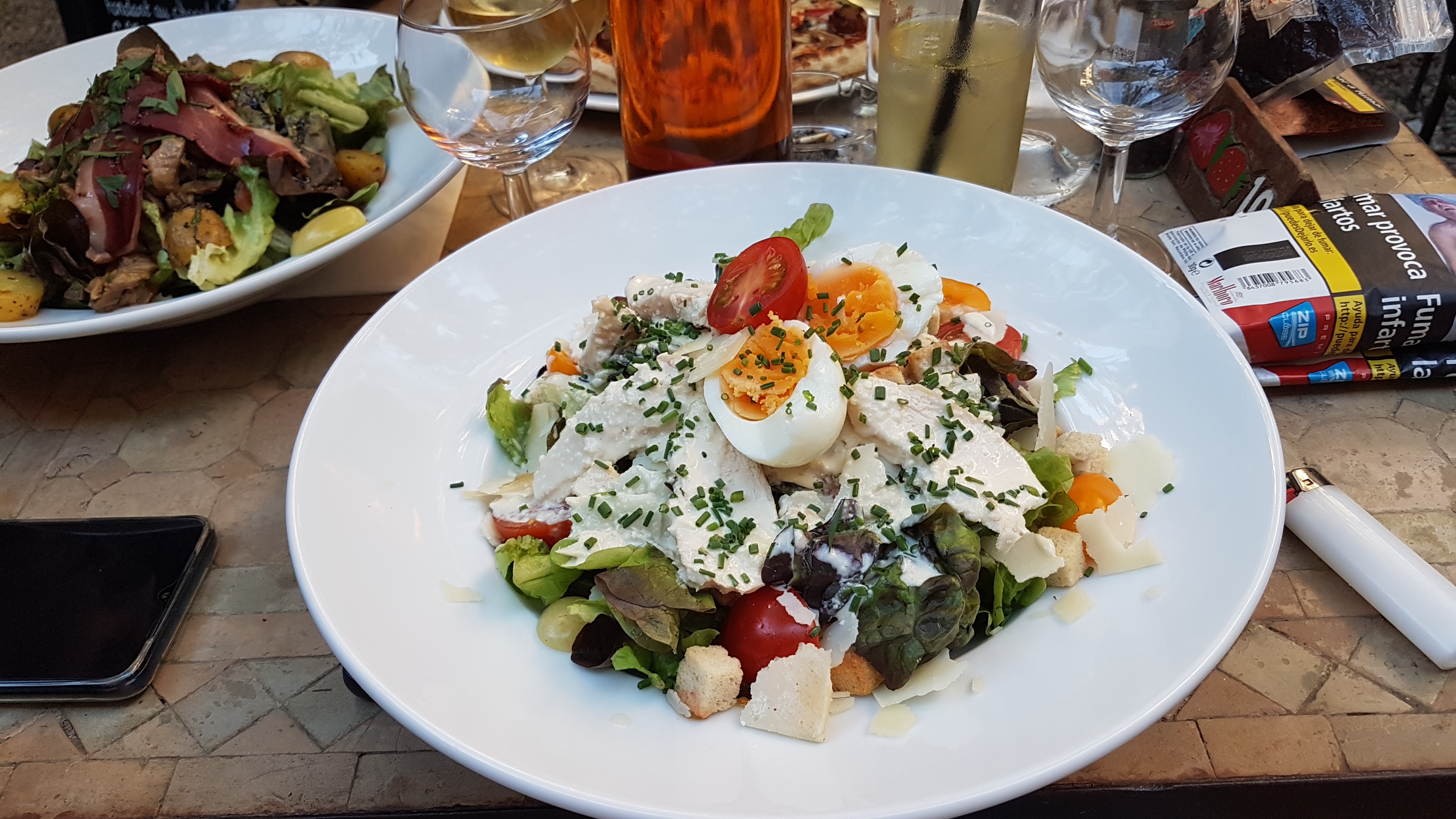 Cadre très agréable mais tables proches les une des autres (intimité) + salade Caesar moyenne, mais la côte de bœuf était bonne