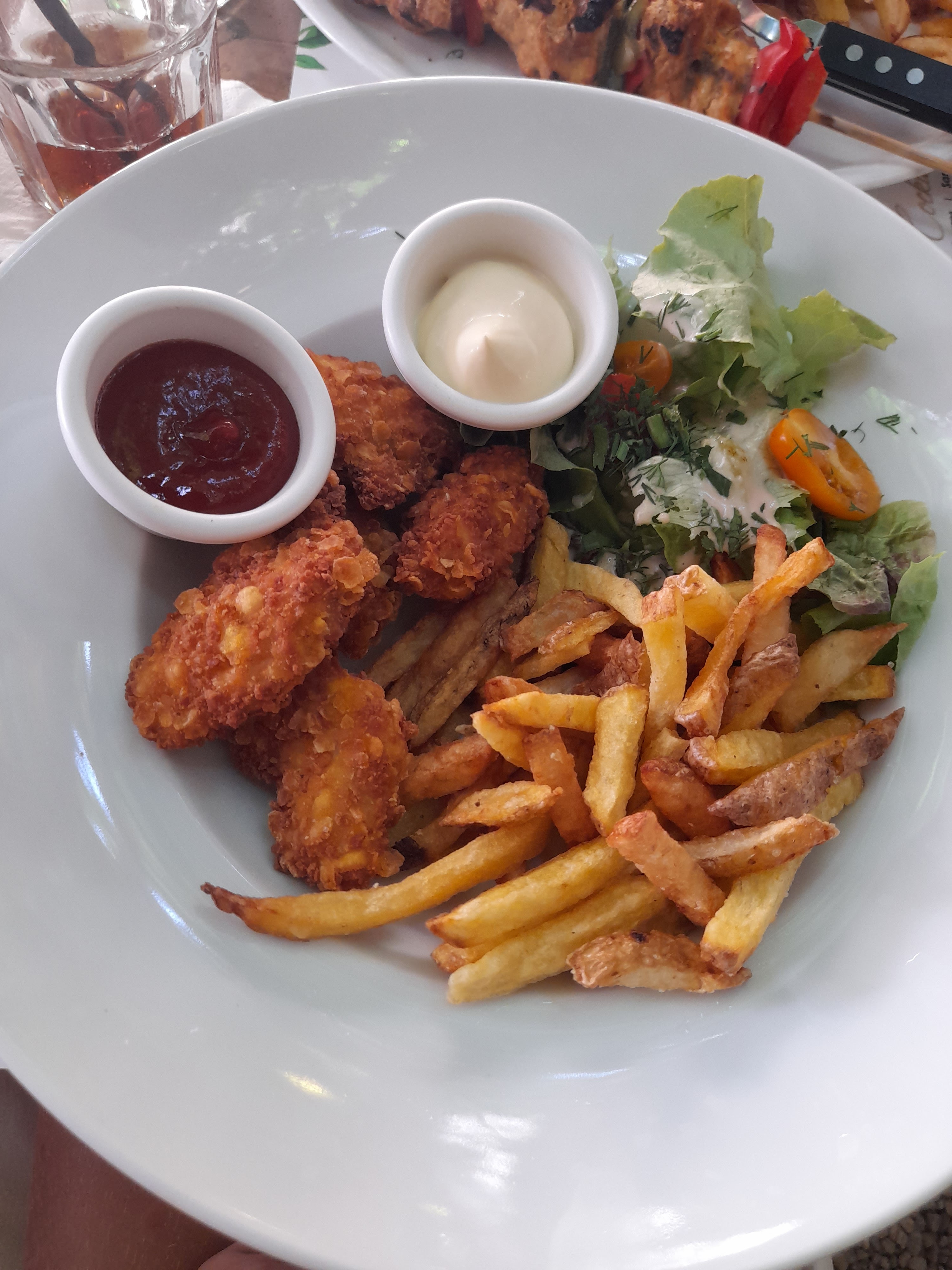 Cadre superbe ! Nous avons prit un menu enfant au top : on dirait des vrais nuggets. Nous avons prit des pizzas également : très salés et peu copieuse.