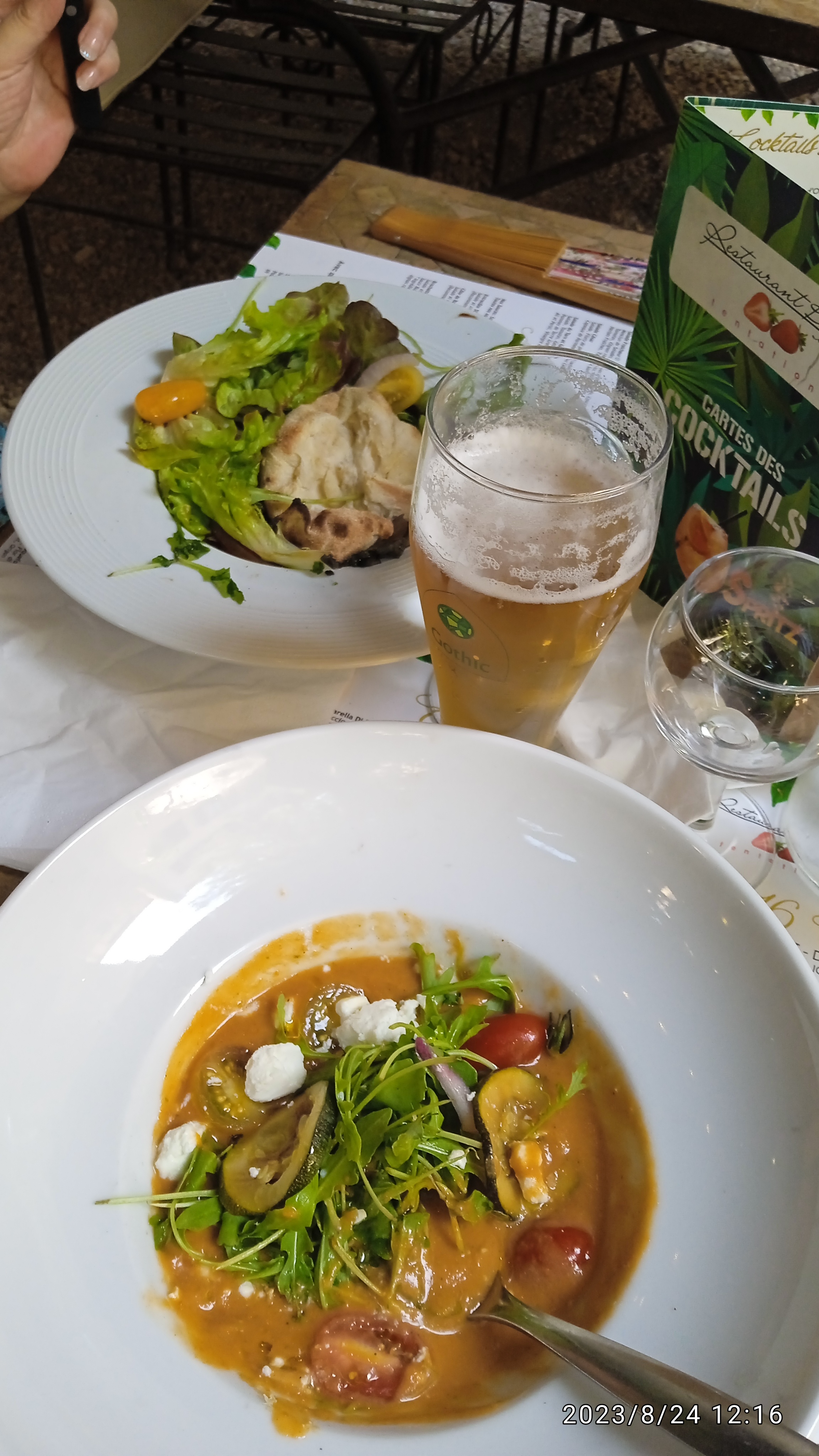 Bon restaurant, mais notre salade du tarn et garonne, très copieuse, était accompagnée de pommes de terre, certaines chaudes, d'autres tièdes et enfin certaines très froides. Dommage car autrement c'était bon. Beaucoup de monde en terrasse, trop à notre goût.