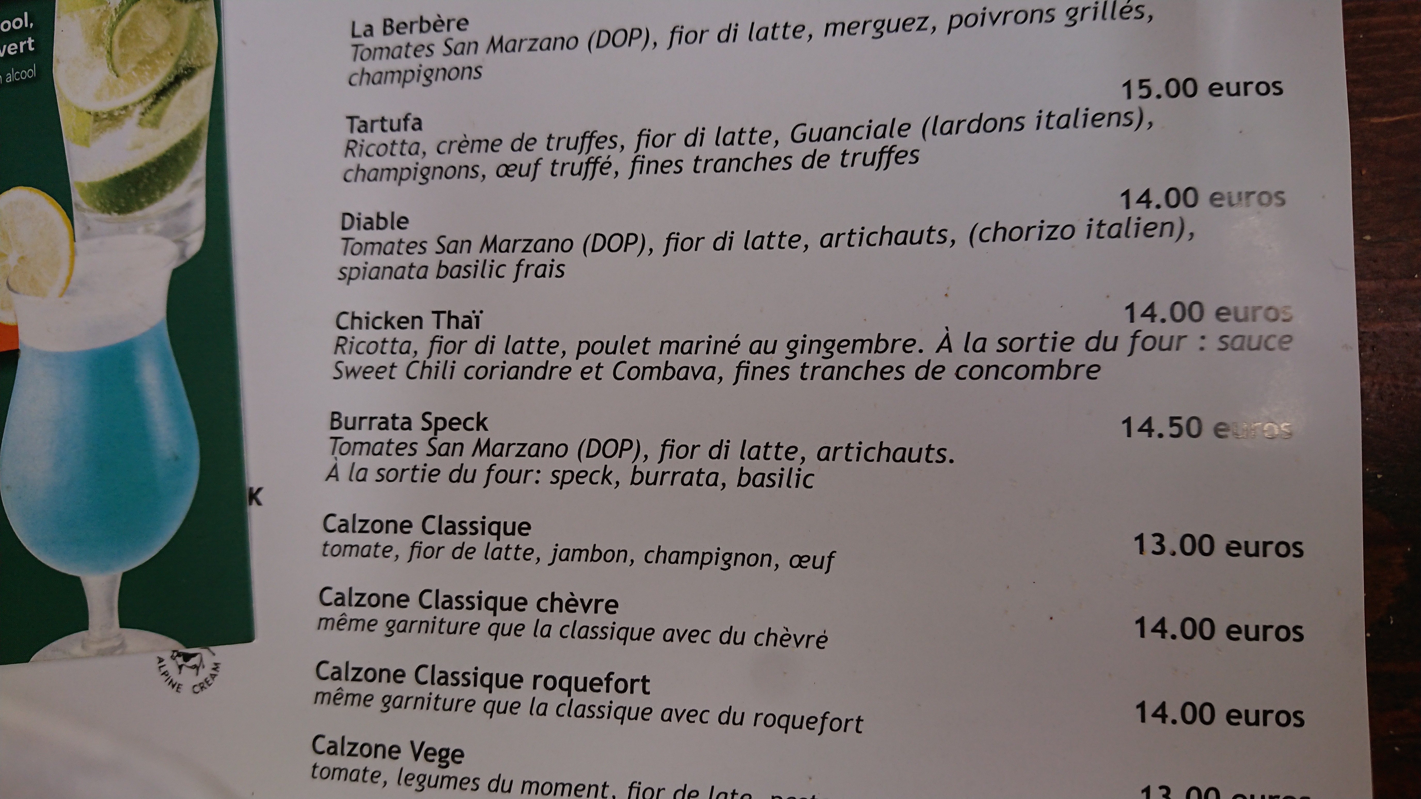 Qu on limite le nombre de plats sur la carte à cause du covid on peut comprendre mais que l on ne prévienne pas la clientèle à la réservation qu il n'y aura pas de menu mais uniquement des pizzas ce n'est pas professionnel. D autant plus que le menu est écrit sur un tableau dans la rue à la craie. On se moque de la clientèle