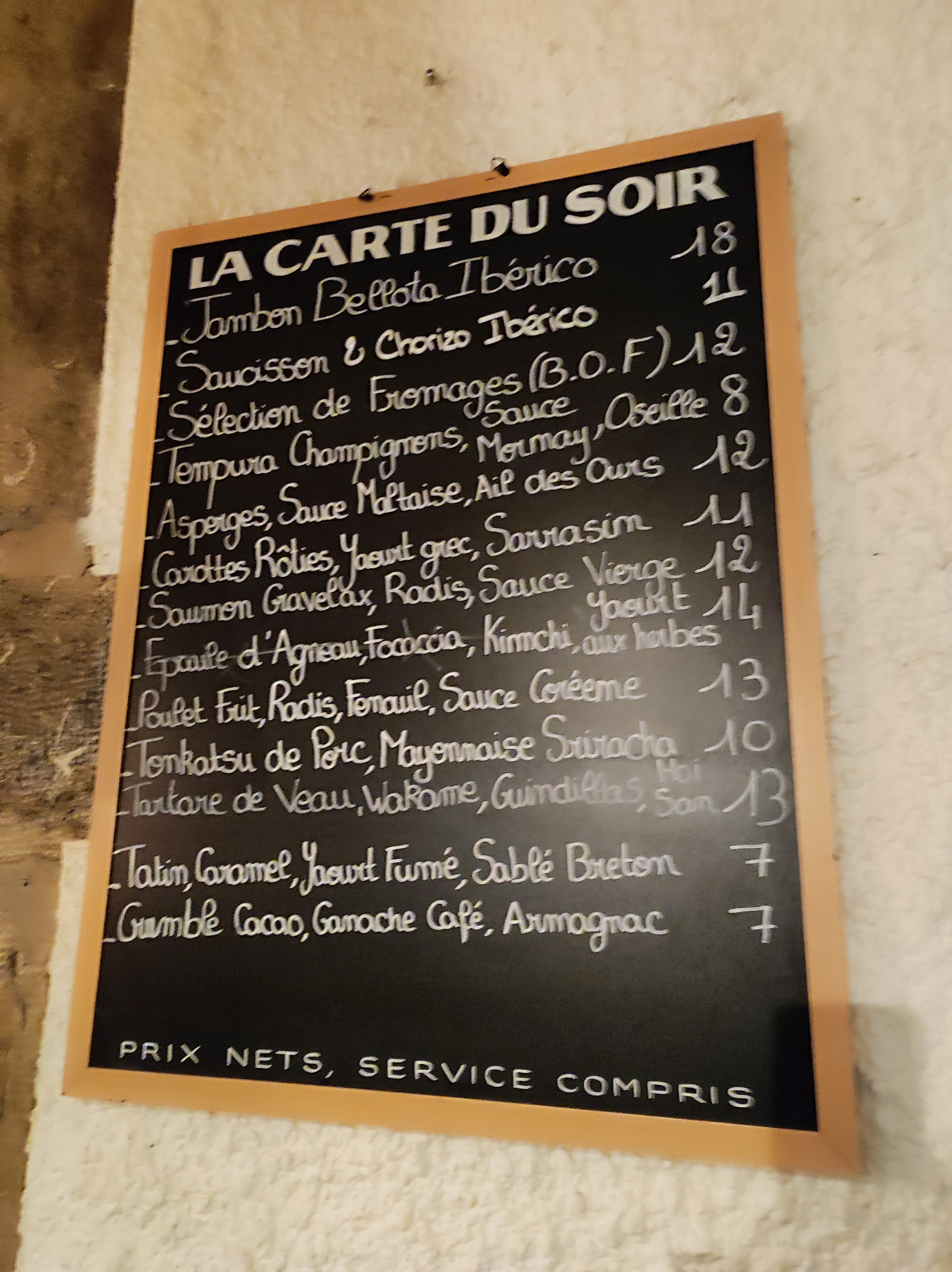 Belle adresse, jolie carte des vins, menu entrée plat dessert à 25€. À retenir !!!
